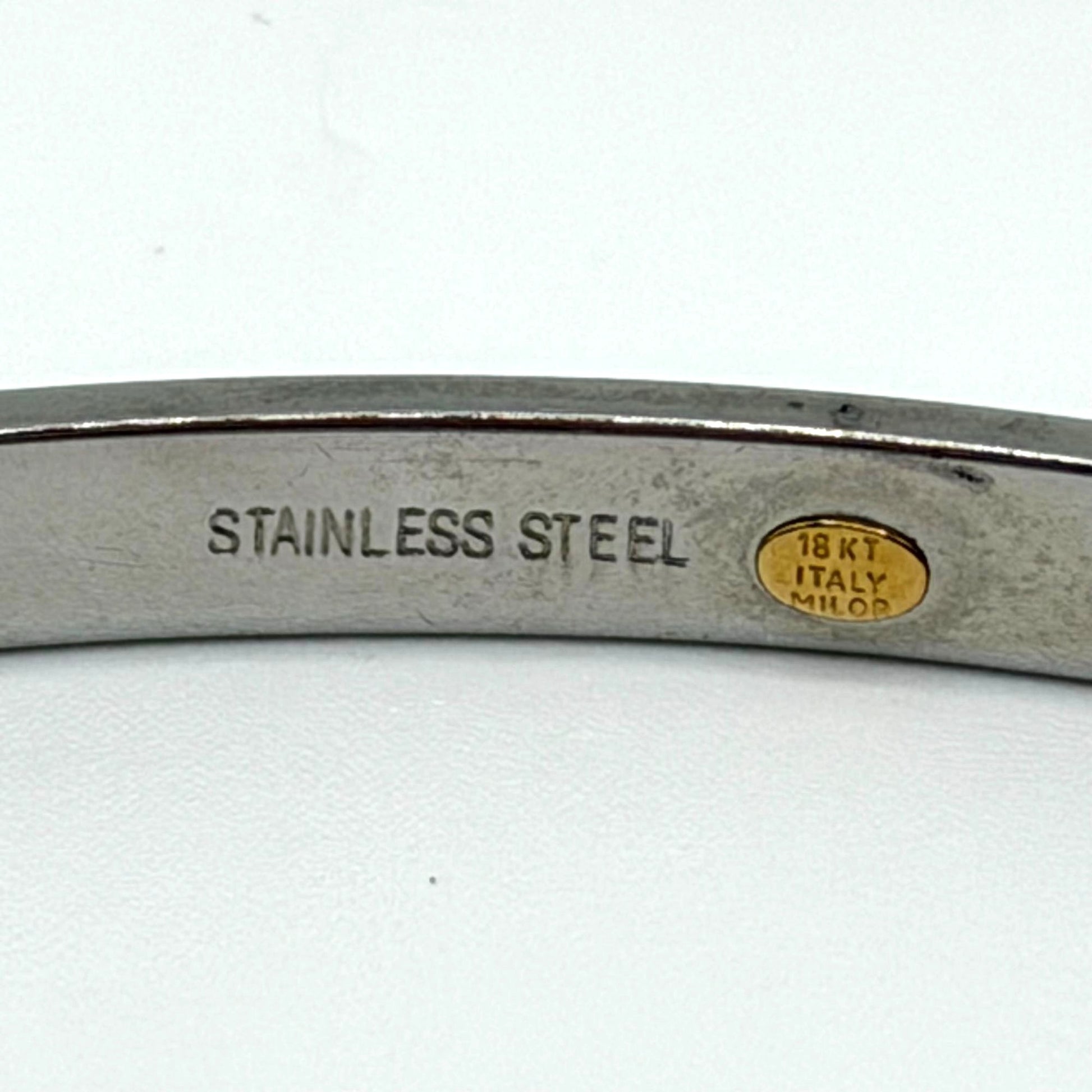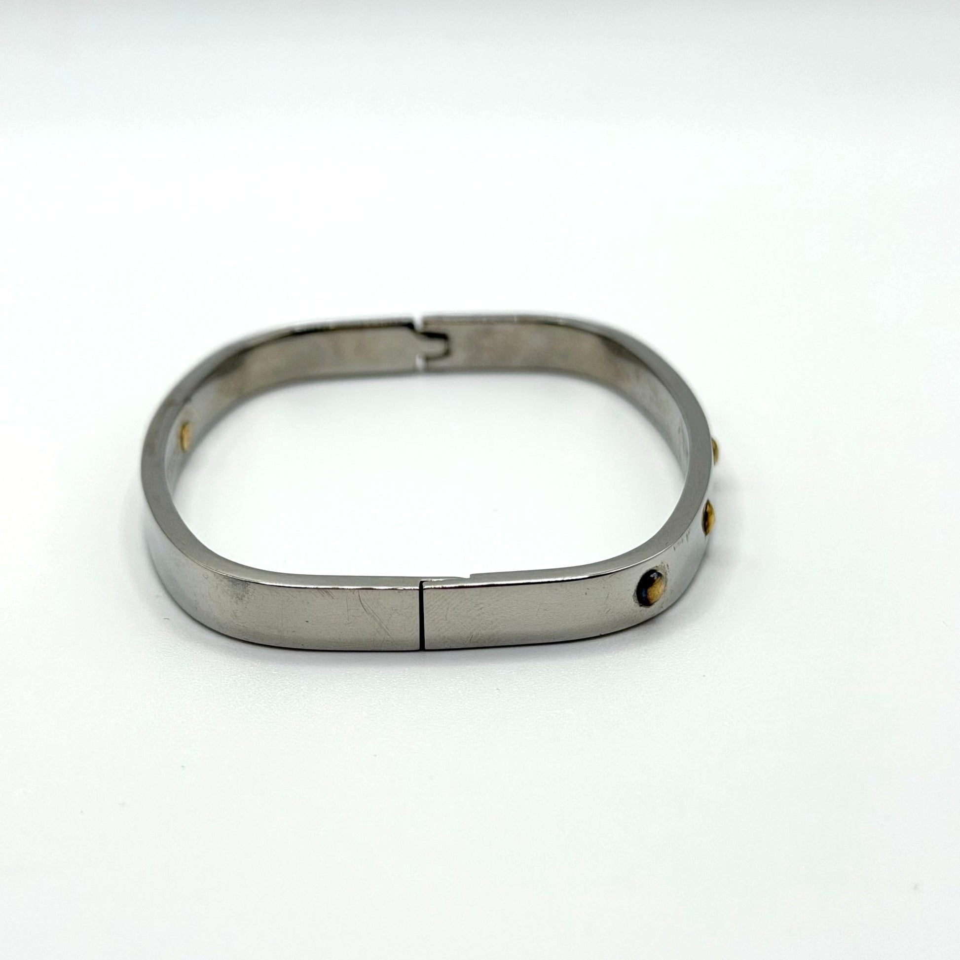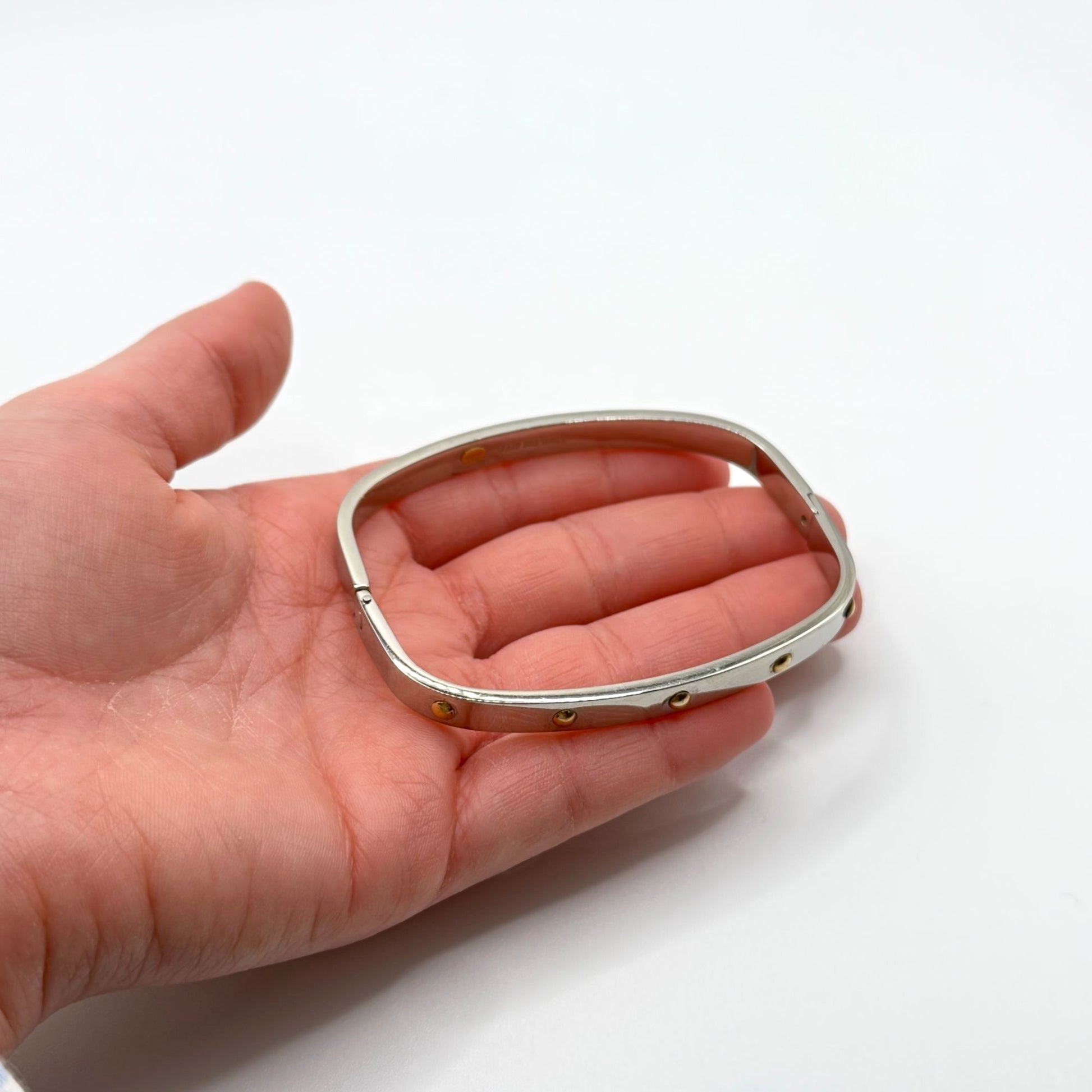 18K Yellow Gold & Stainless Steel Hinged Bangle Bracelet Gold Accents Square
