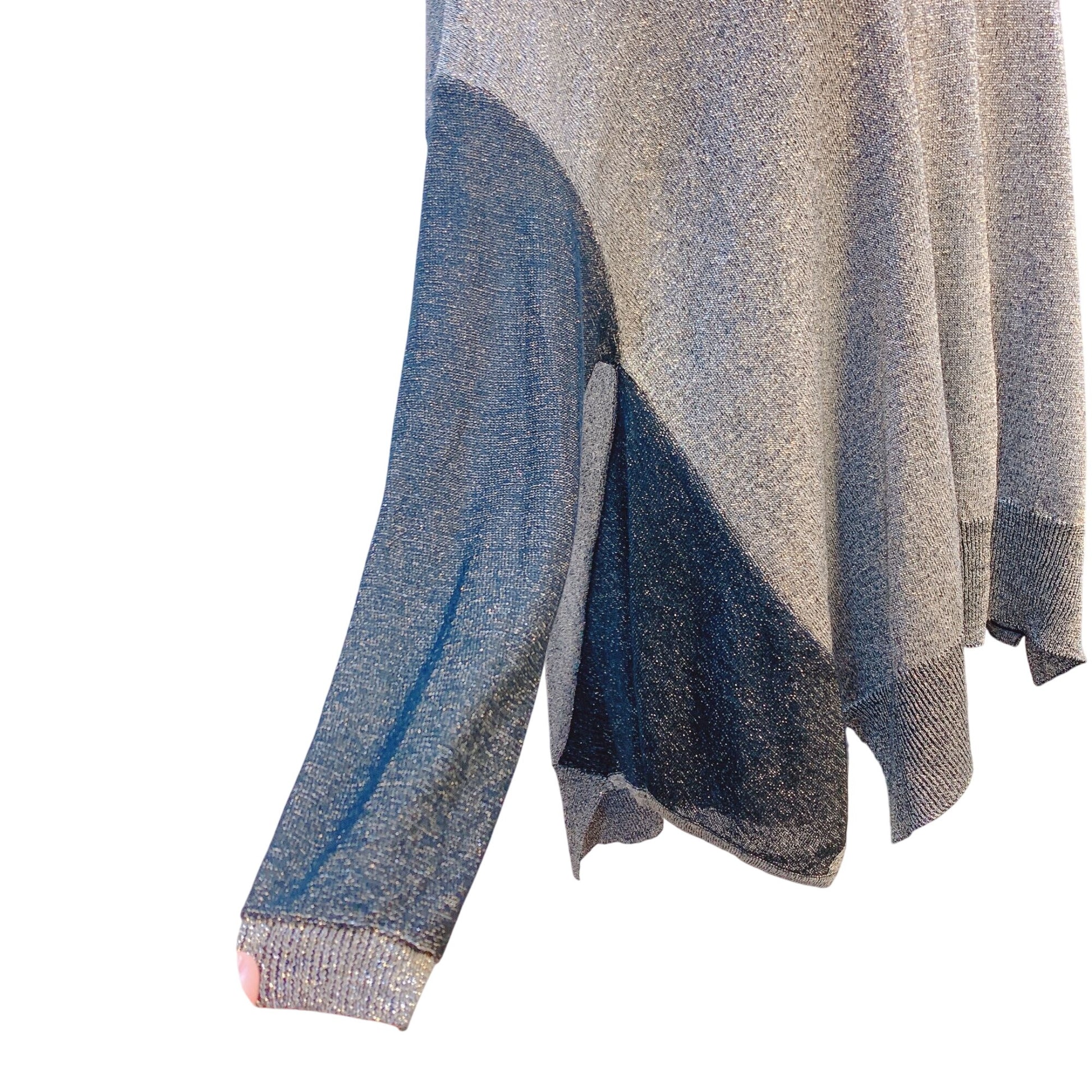 This Alembika sweater features a contemporary colorblock design with a metallic sheen, enhancing both style and sophistication. The relaxed fit ensures comfort, while the knit fabric offers warmth. Ideal for professional settings where a touch of elegance is desired.