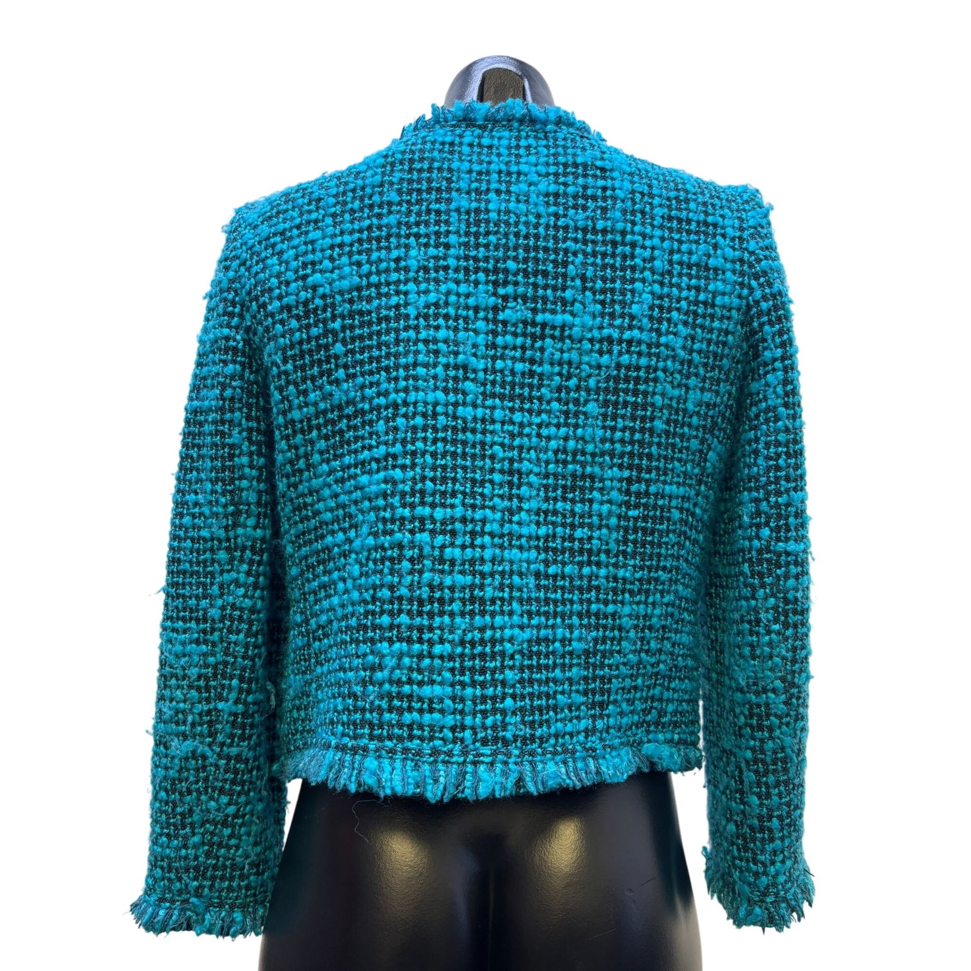 Alice+Olivia Womens Tweed Jacket Turquoise Size S