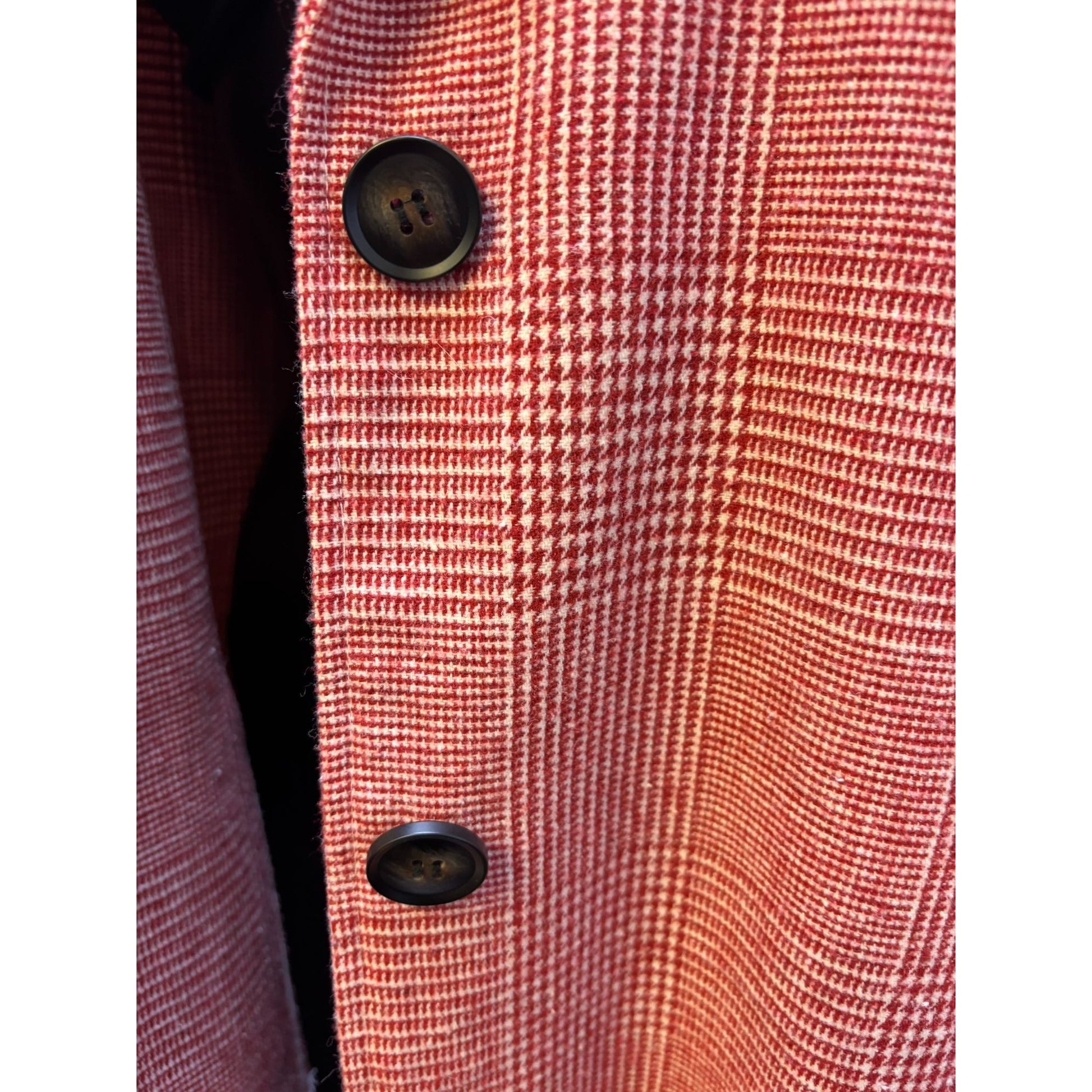 This red plaid coat from Avec Les Filles offers a classic design with a modern edge. The wool blend ensures warmth while maintaining a sophisticated look. Its structured silhouette and button closures provide both style and functionality. Ideal for elevating a professional wardrobe or enhancing a casual ensemble.