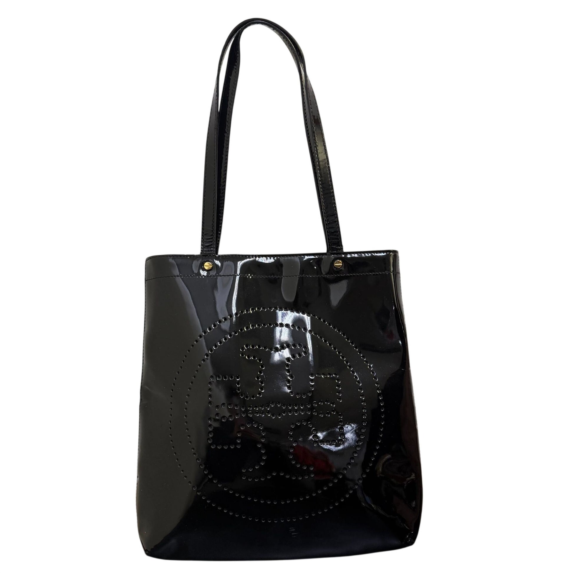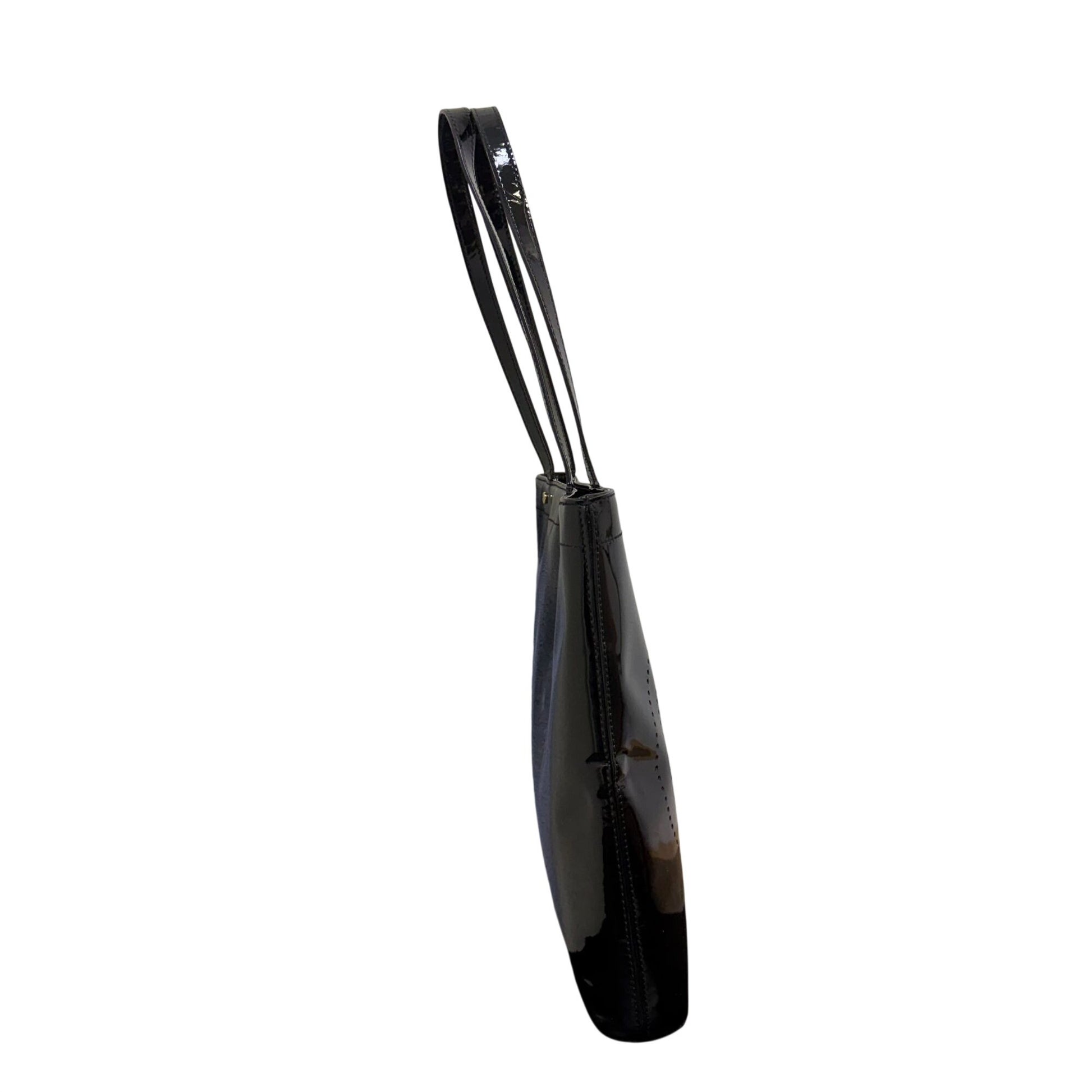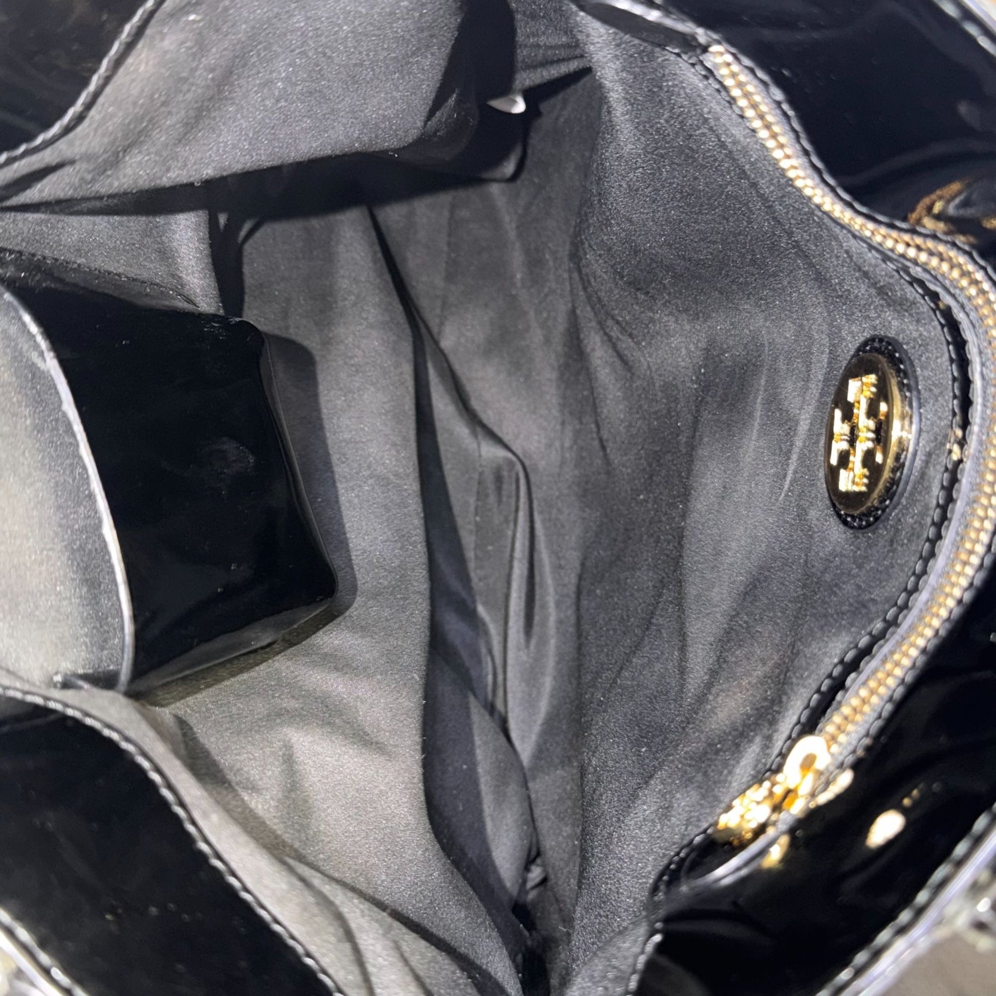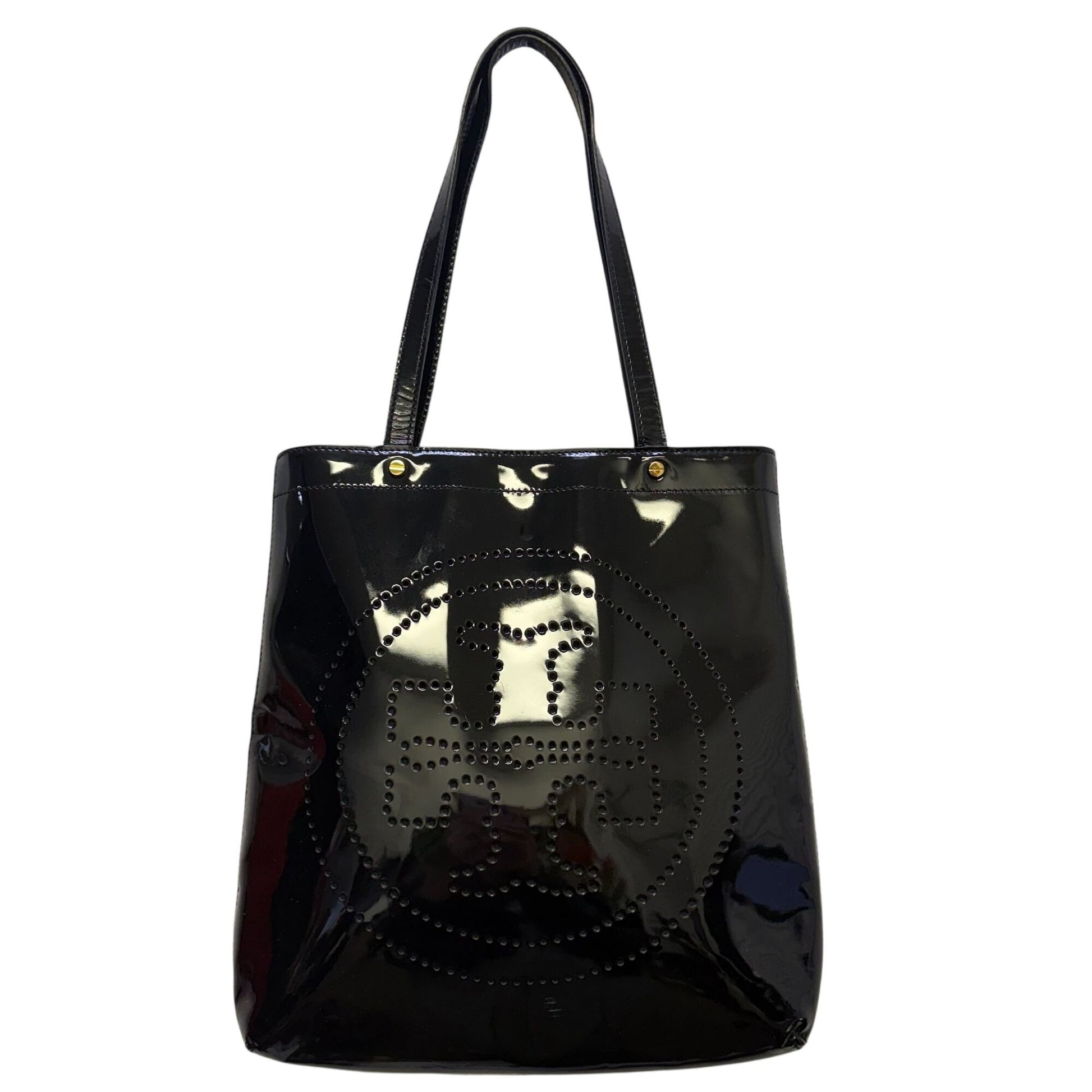 Black Patent Leather Tory Burch Perforated Logo Tote Shoulder Bag