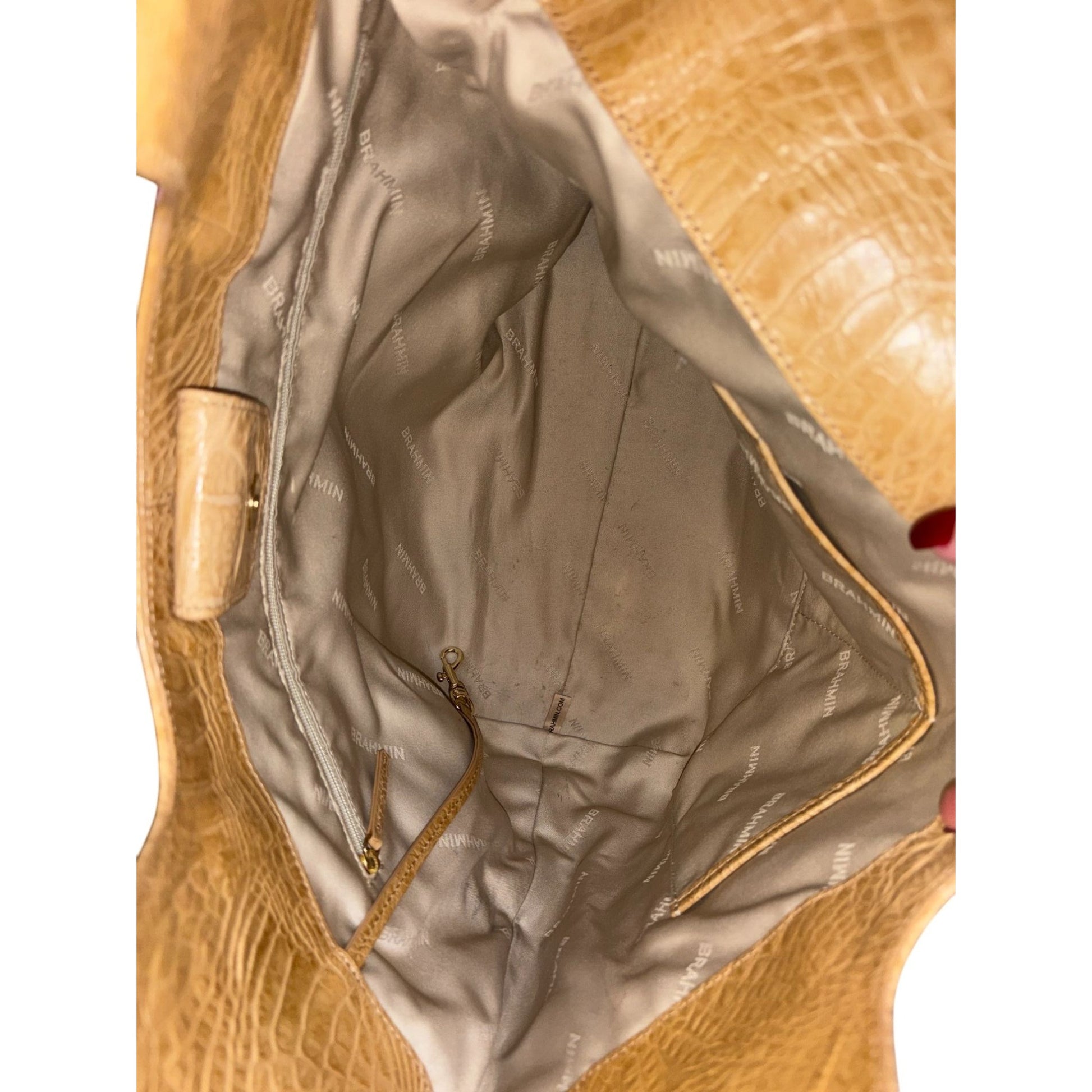 Brahmin Large Tan Tote Bag With Croc Embossed Leather