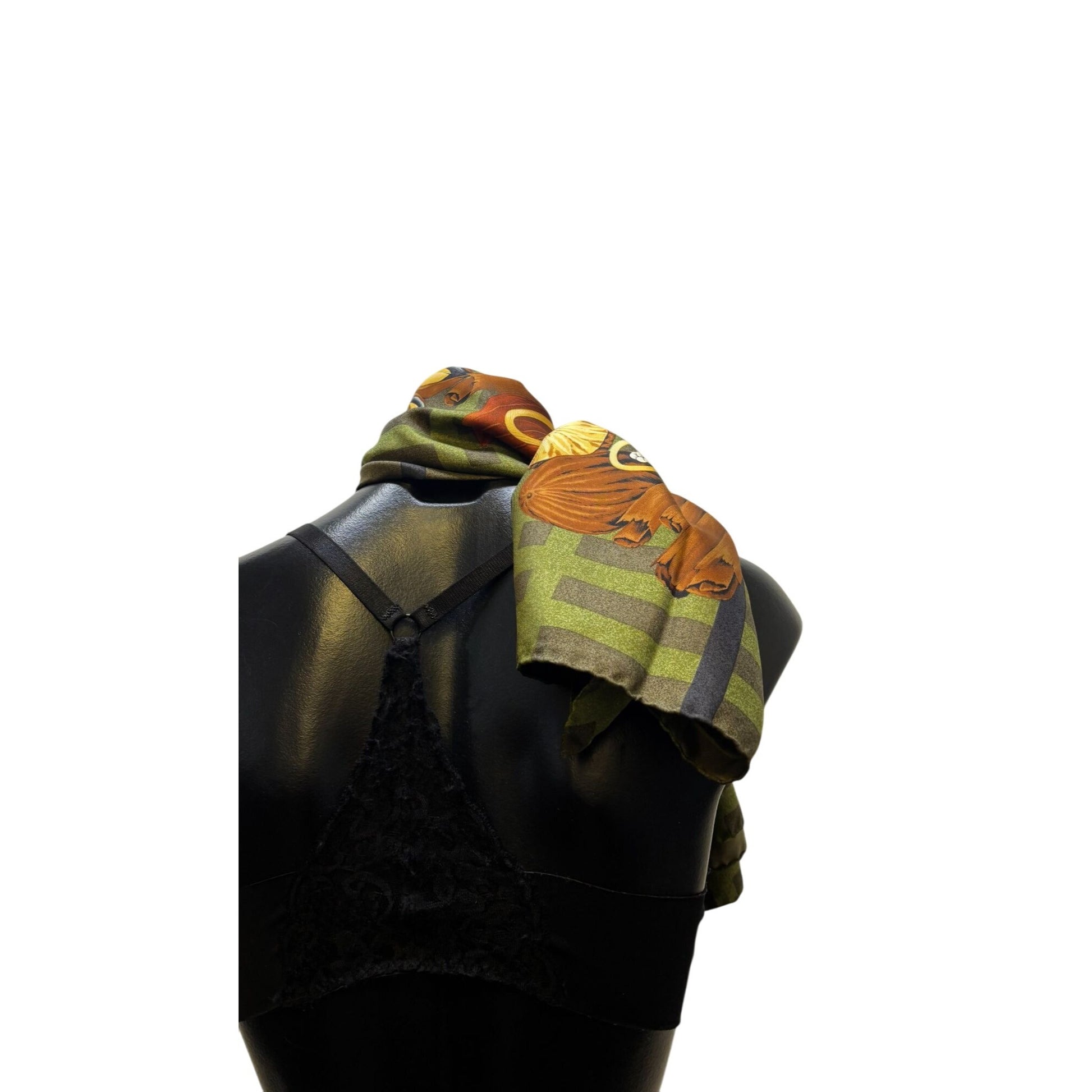 Burberry Floral & Geometric Green Multicolor Silk Scarf