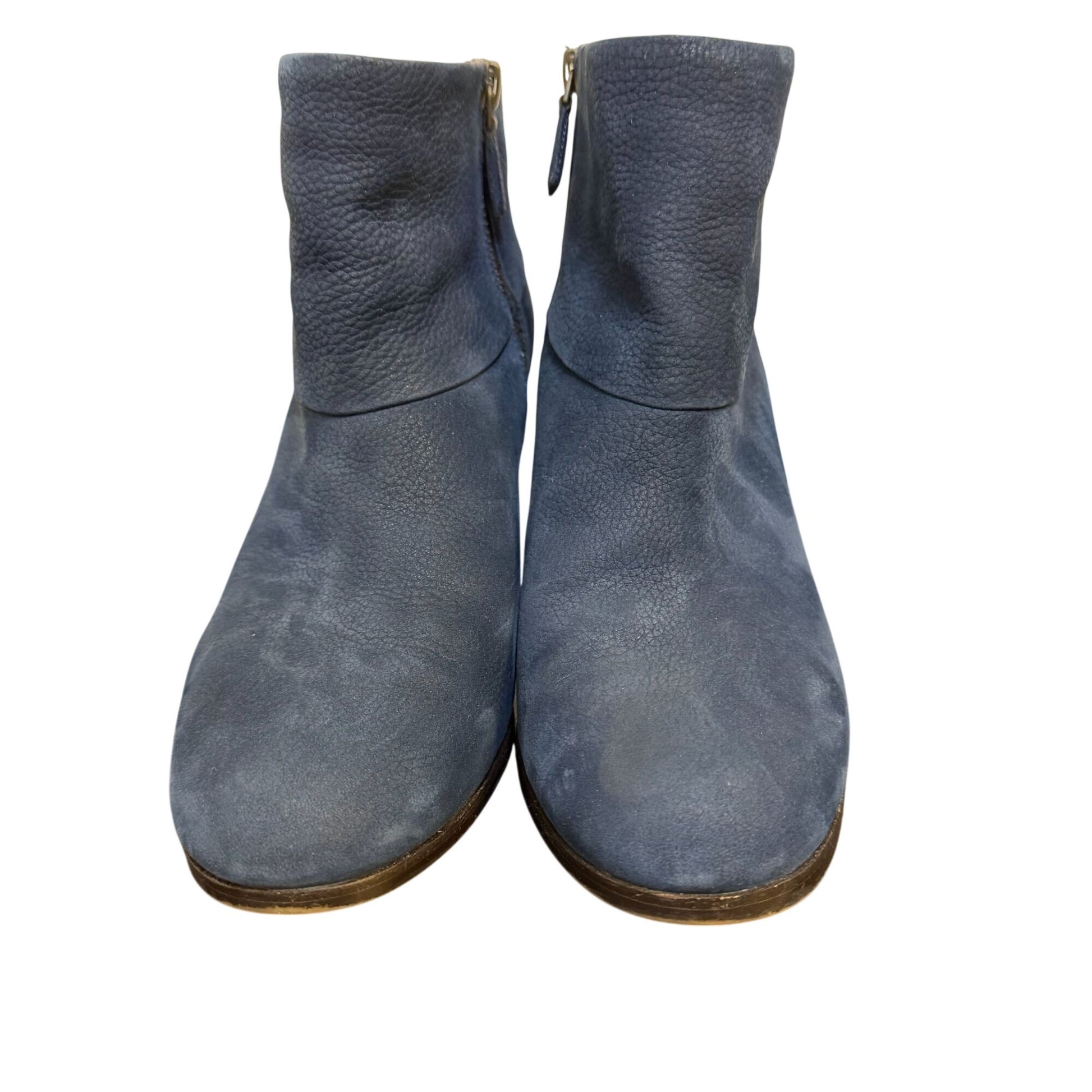Cole Haan Navy Leather Ankle Boots With Wooden Block Heel Size 7