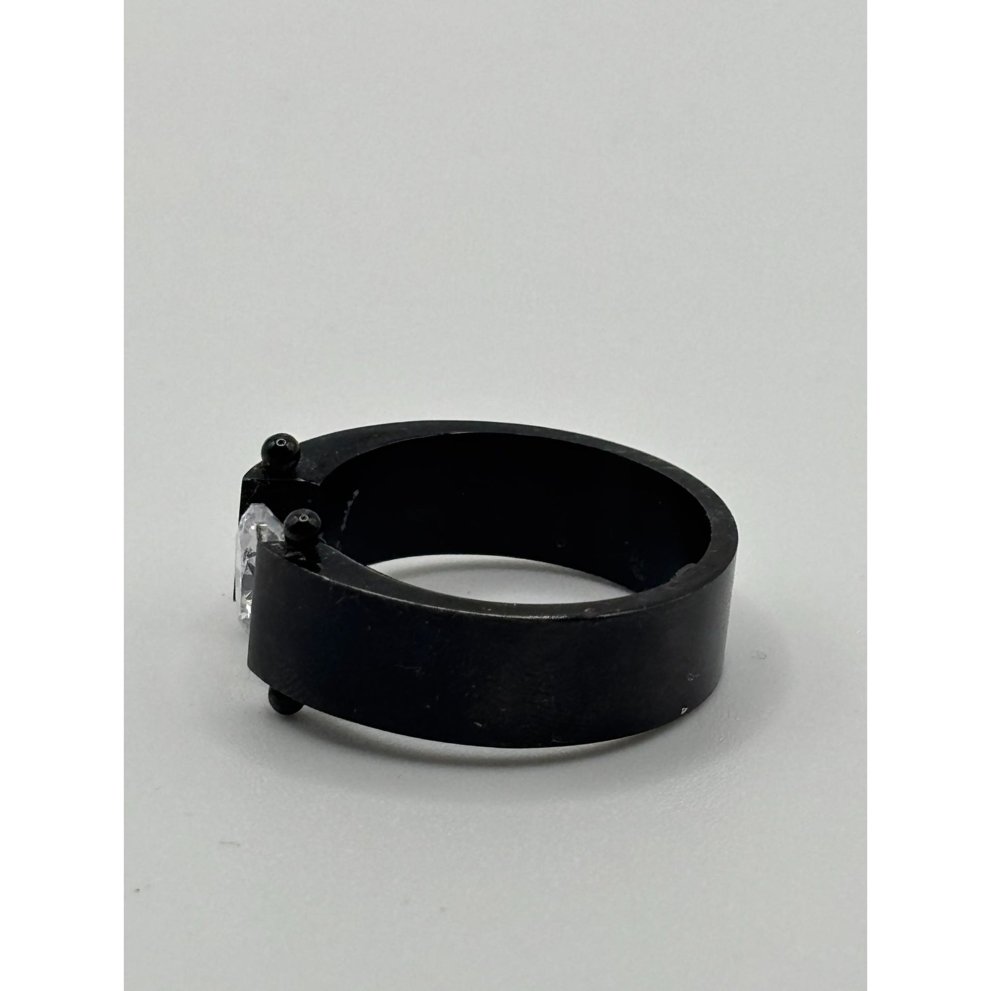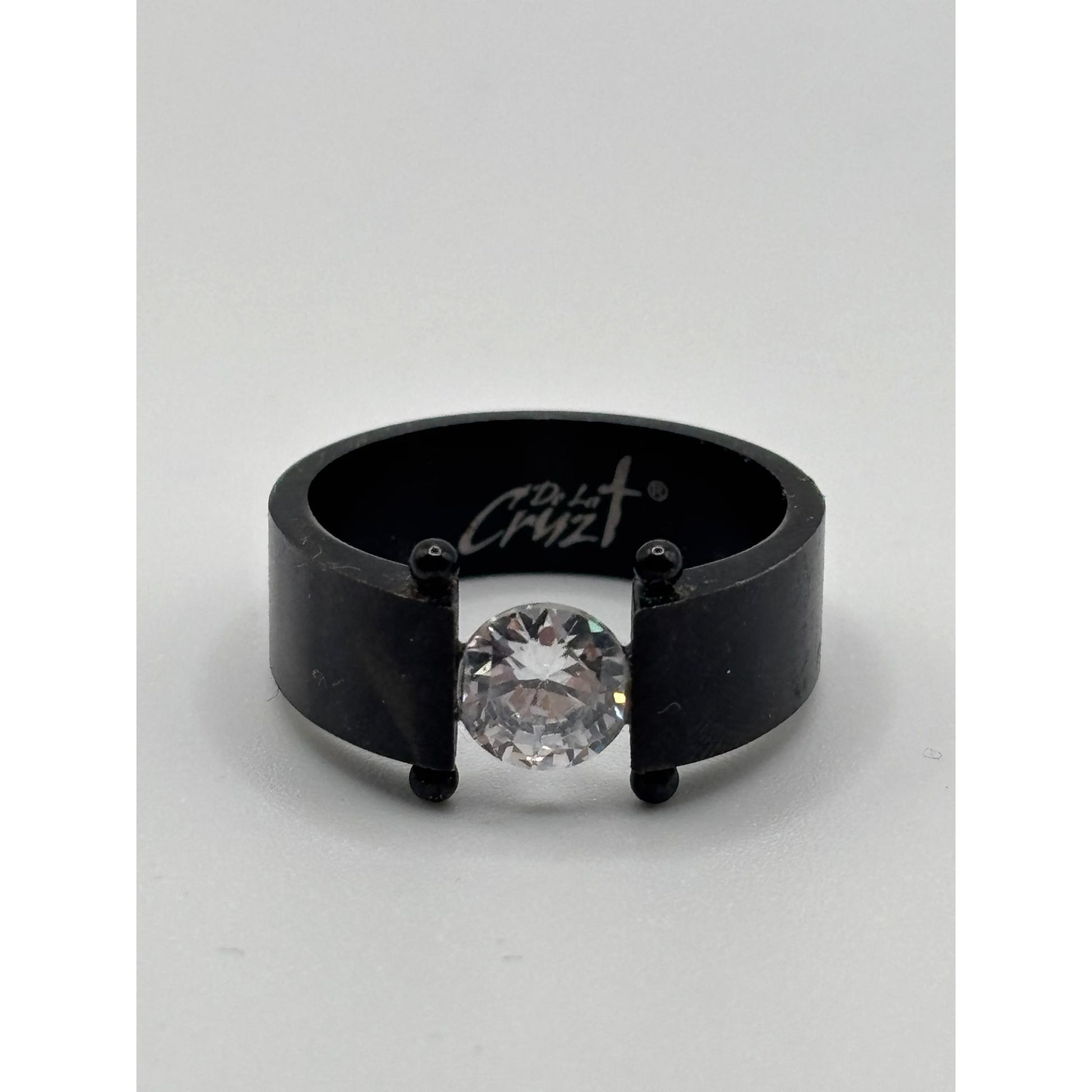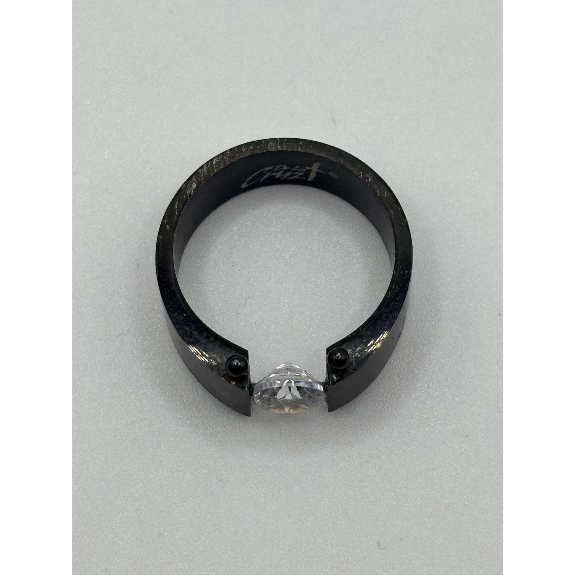 De La Cruz Black Titanium Ring With Free-Floating Clear Stone Size 9.75