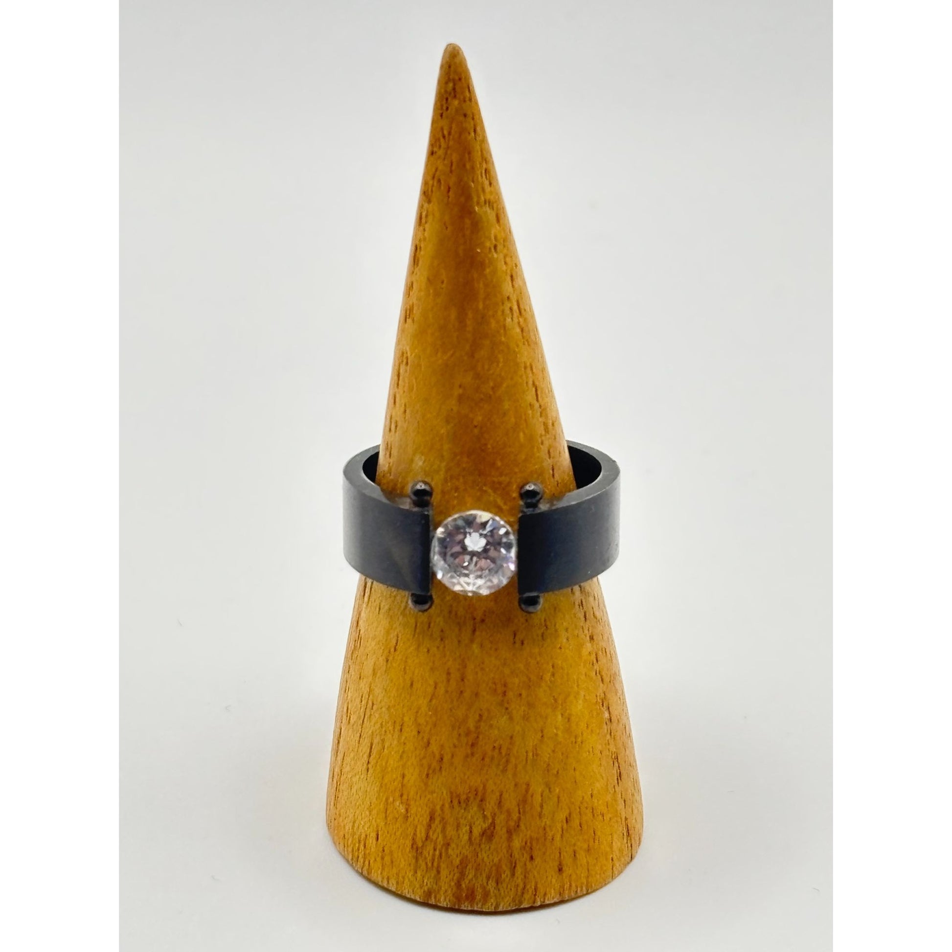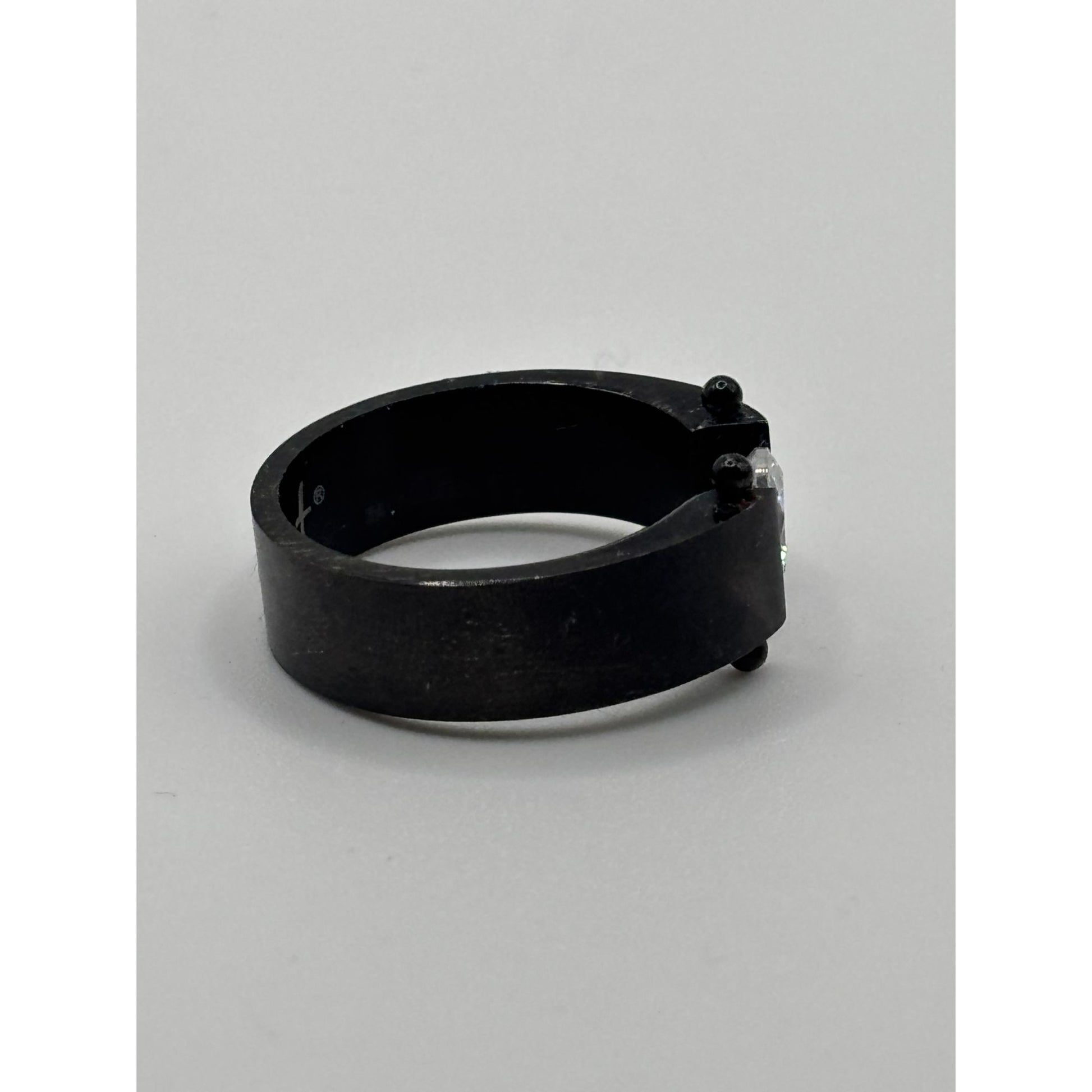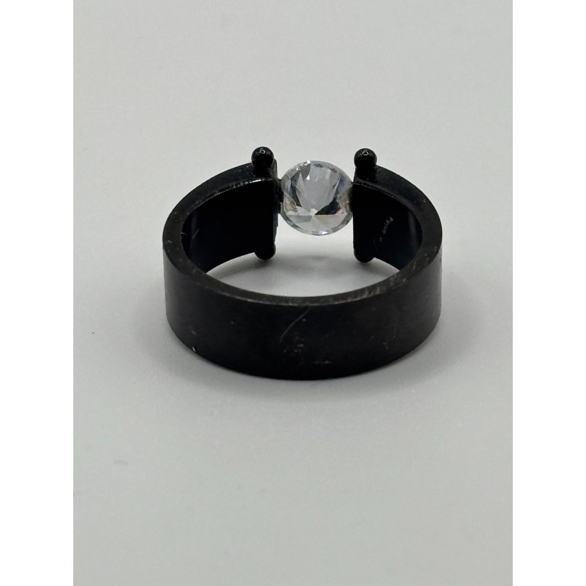 A sleek and modern black titanium ring featuring a unique free-floating clear stone design. Ideal for showcasing contemporary elegance and minimalist style.
