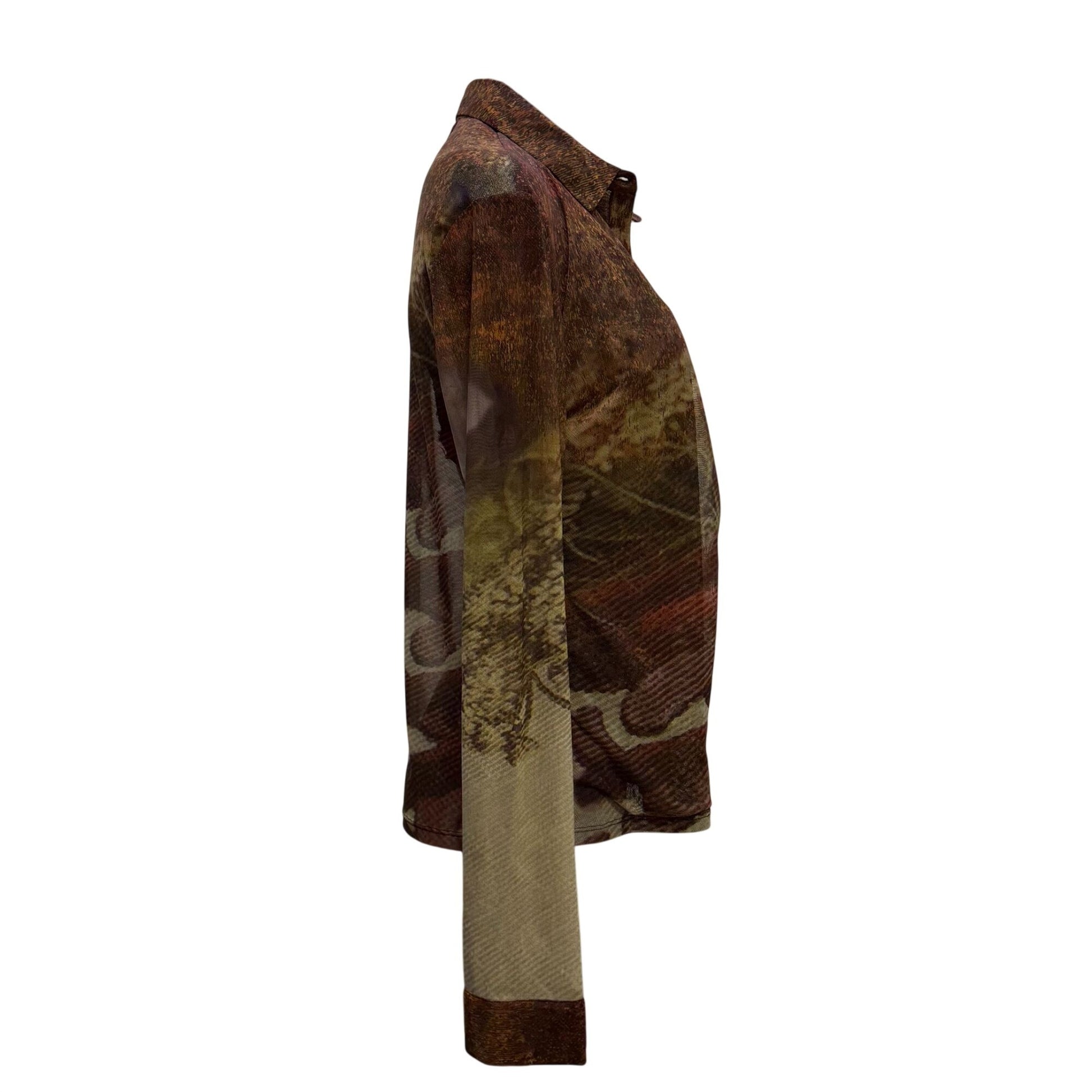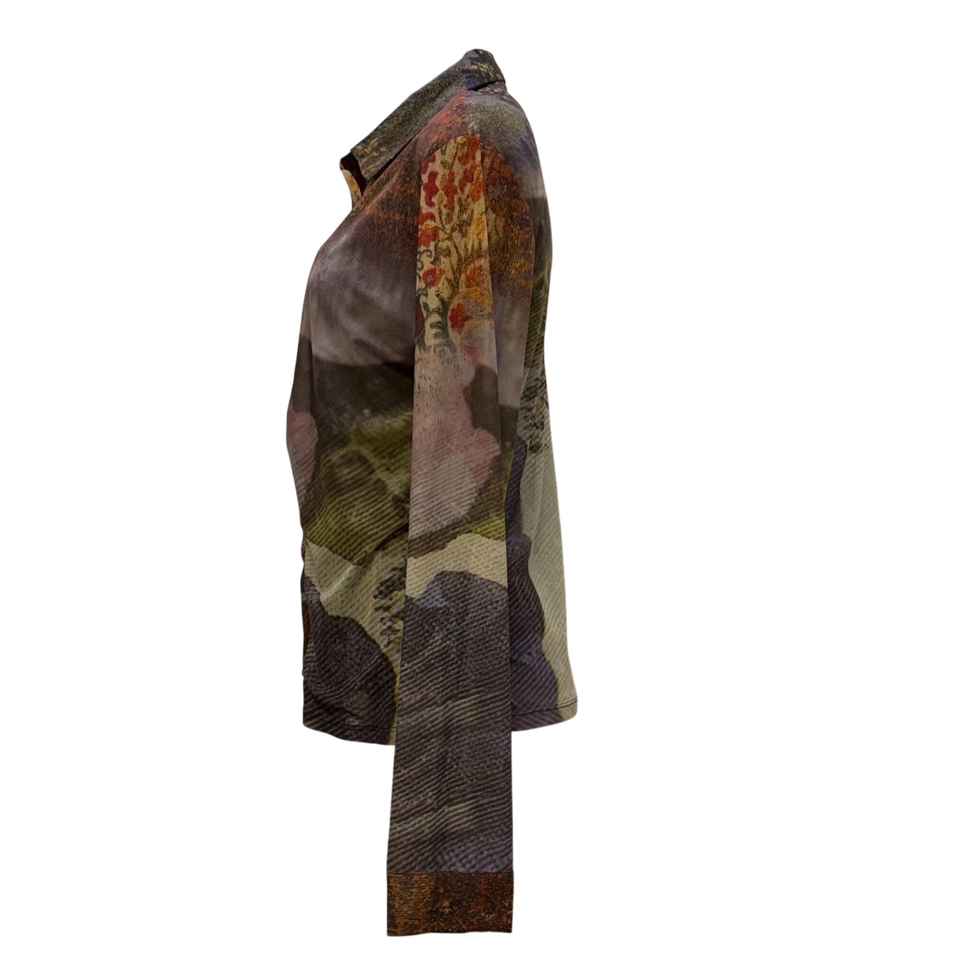 Desigual NWT Button-Up Blouse With Abstract Rustic Print In Brown & Purple XXL