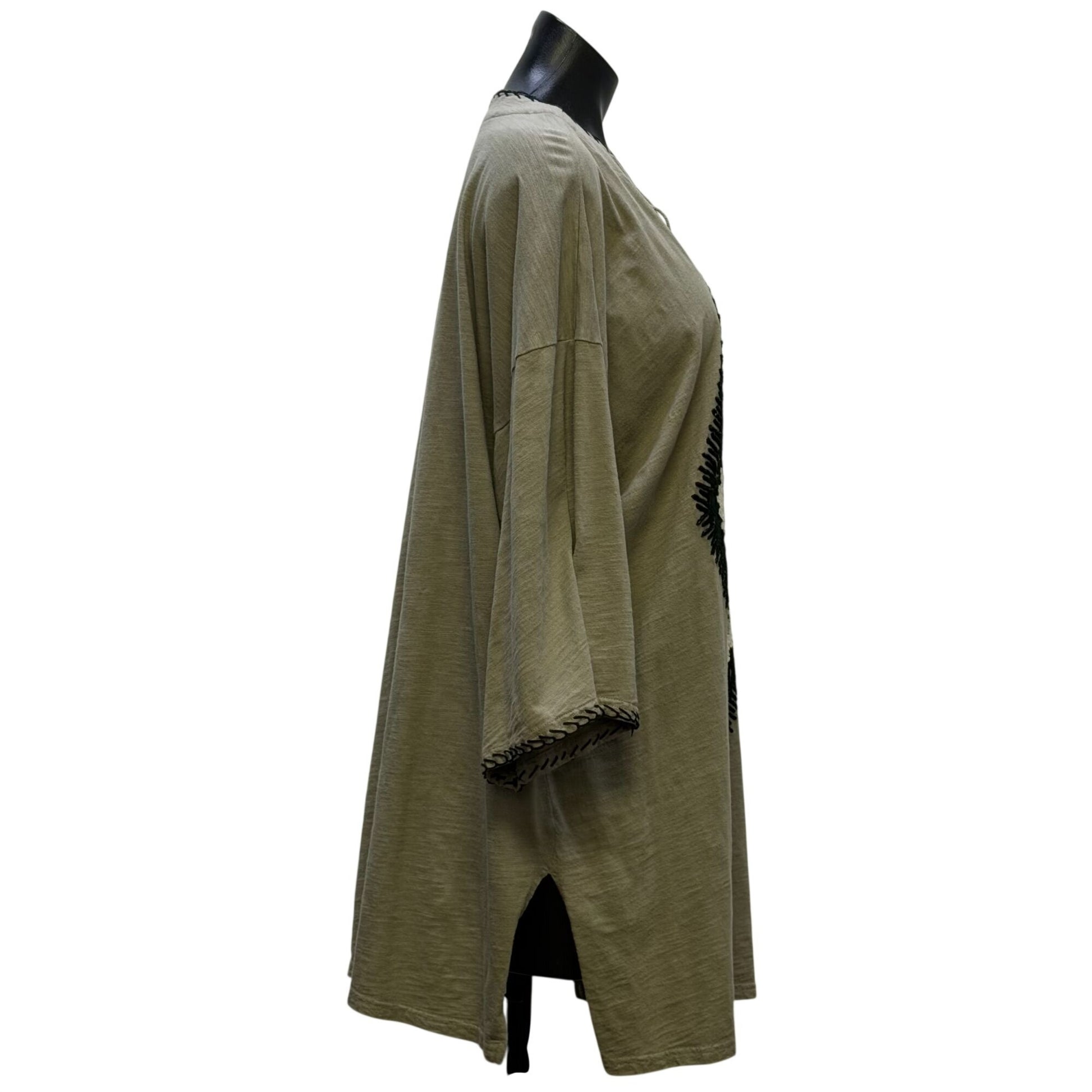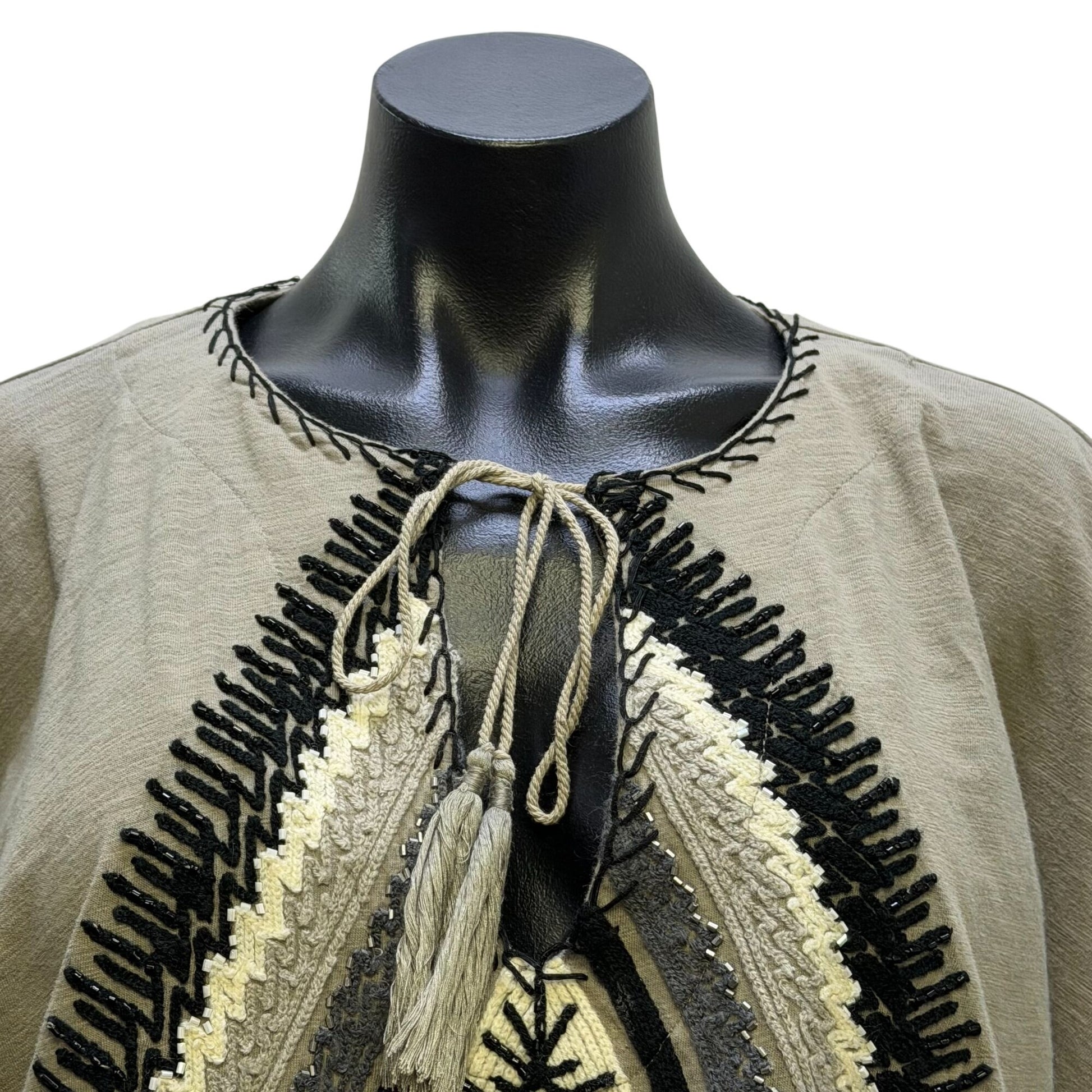 This tunic features bohemian-inspired embroidery with intricate details, offering a stylish yet comfortable fit. Ideal for a refined casual wardrobe.