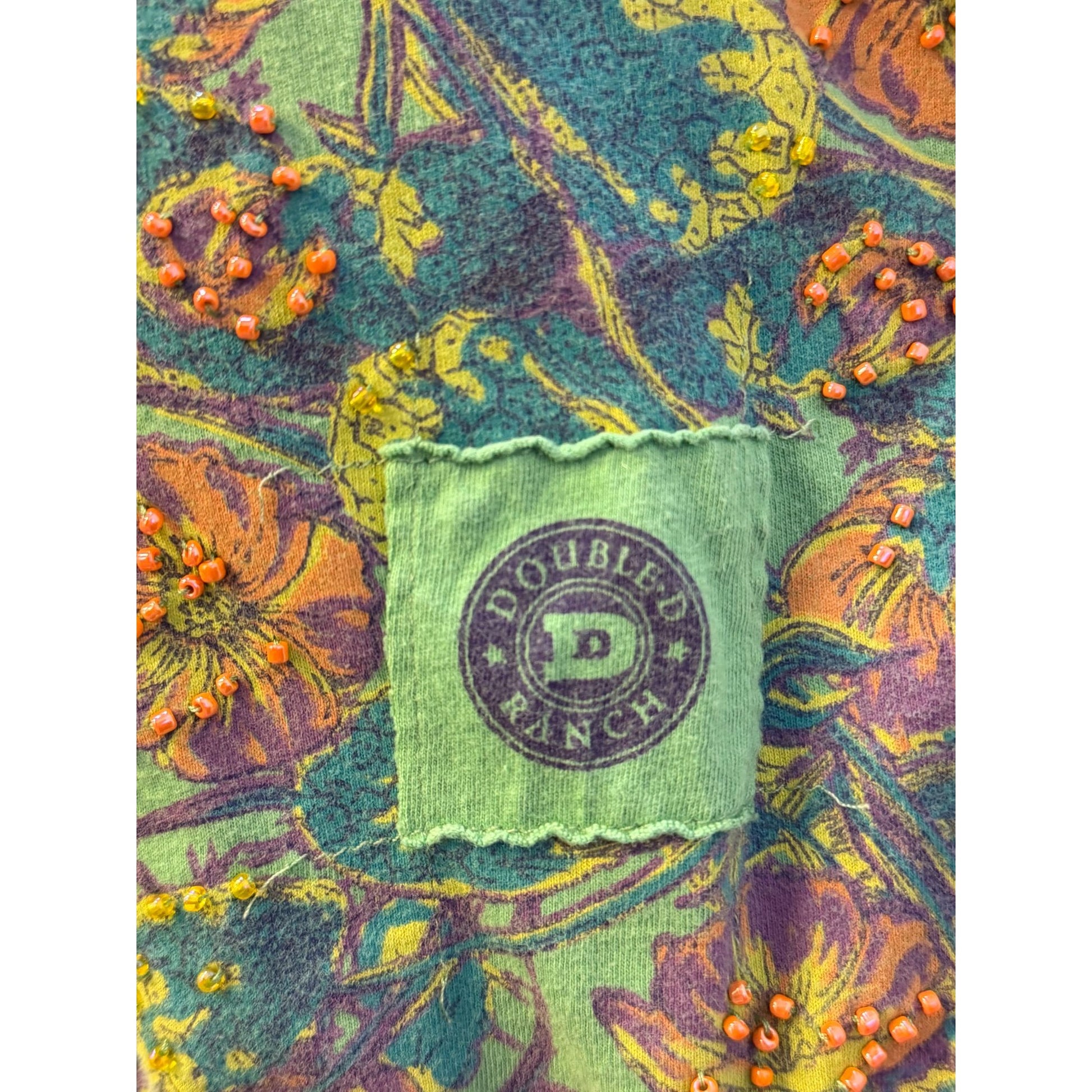 Double D Ranch Green Beaded Blouse Sz M 3/4 Sleeves