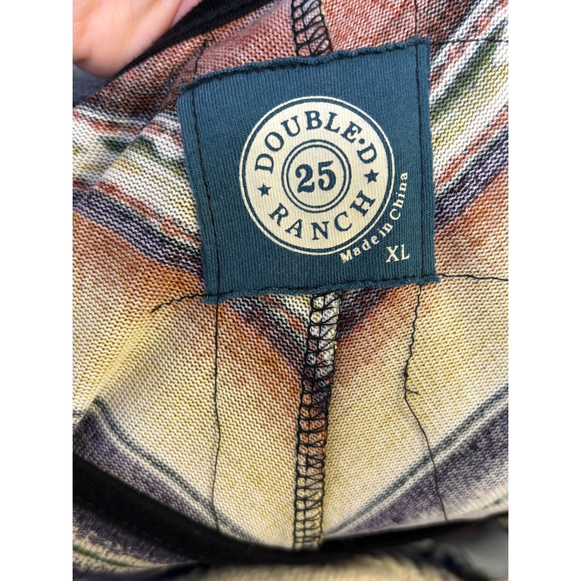 Double D Ranch Striped Poncho With Fringe Teal Yellow Purple XL