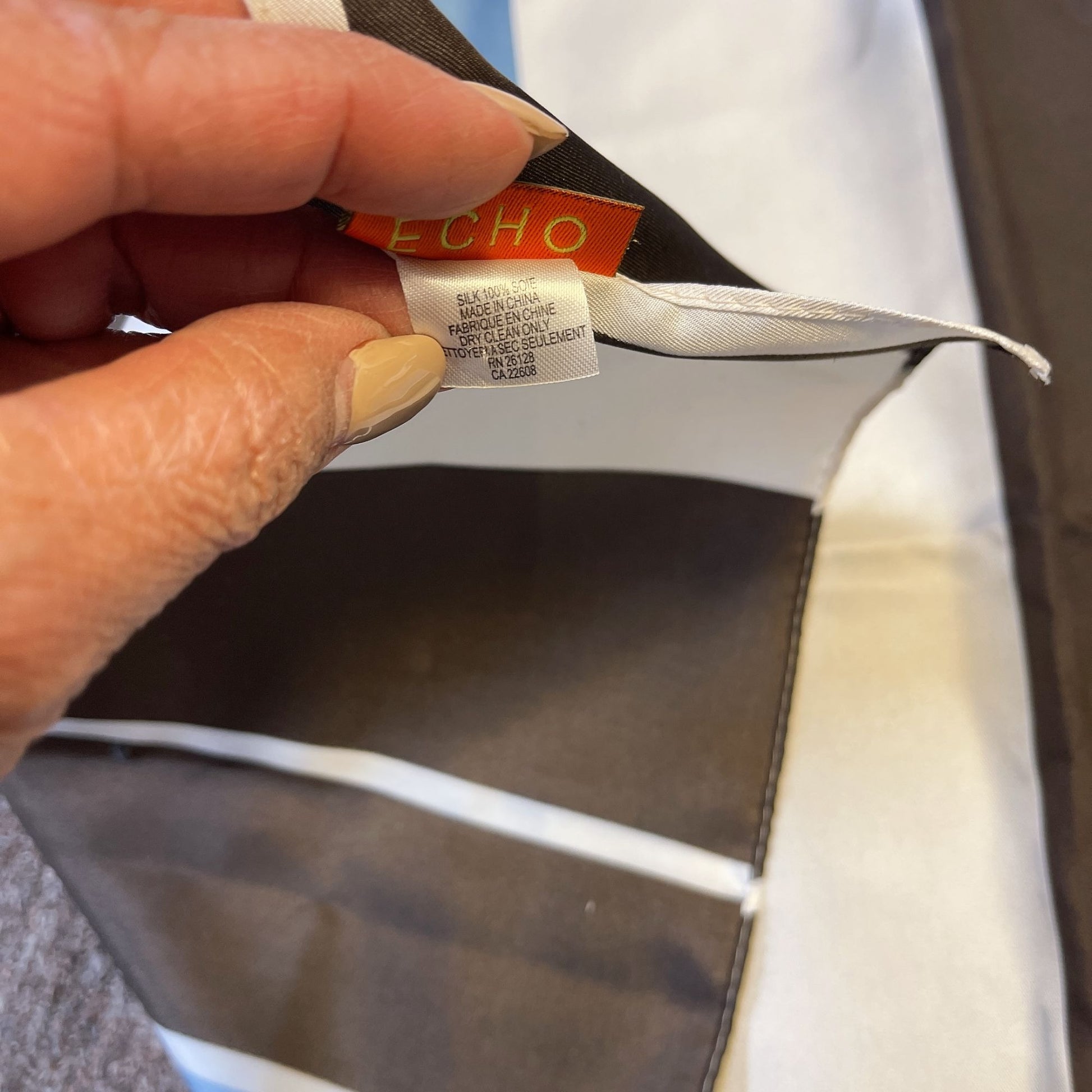 Echo Labyrinthe Geometric Print Blue Brown Silk Scarf