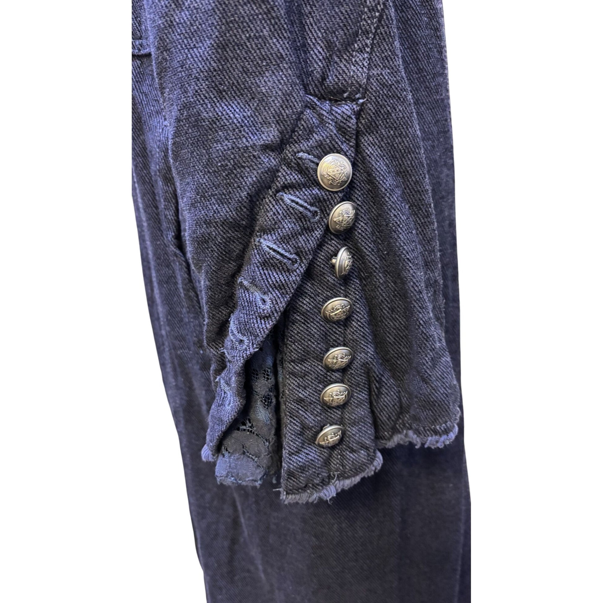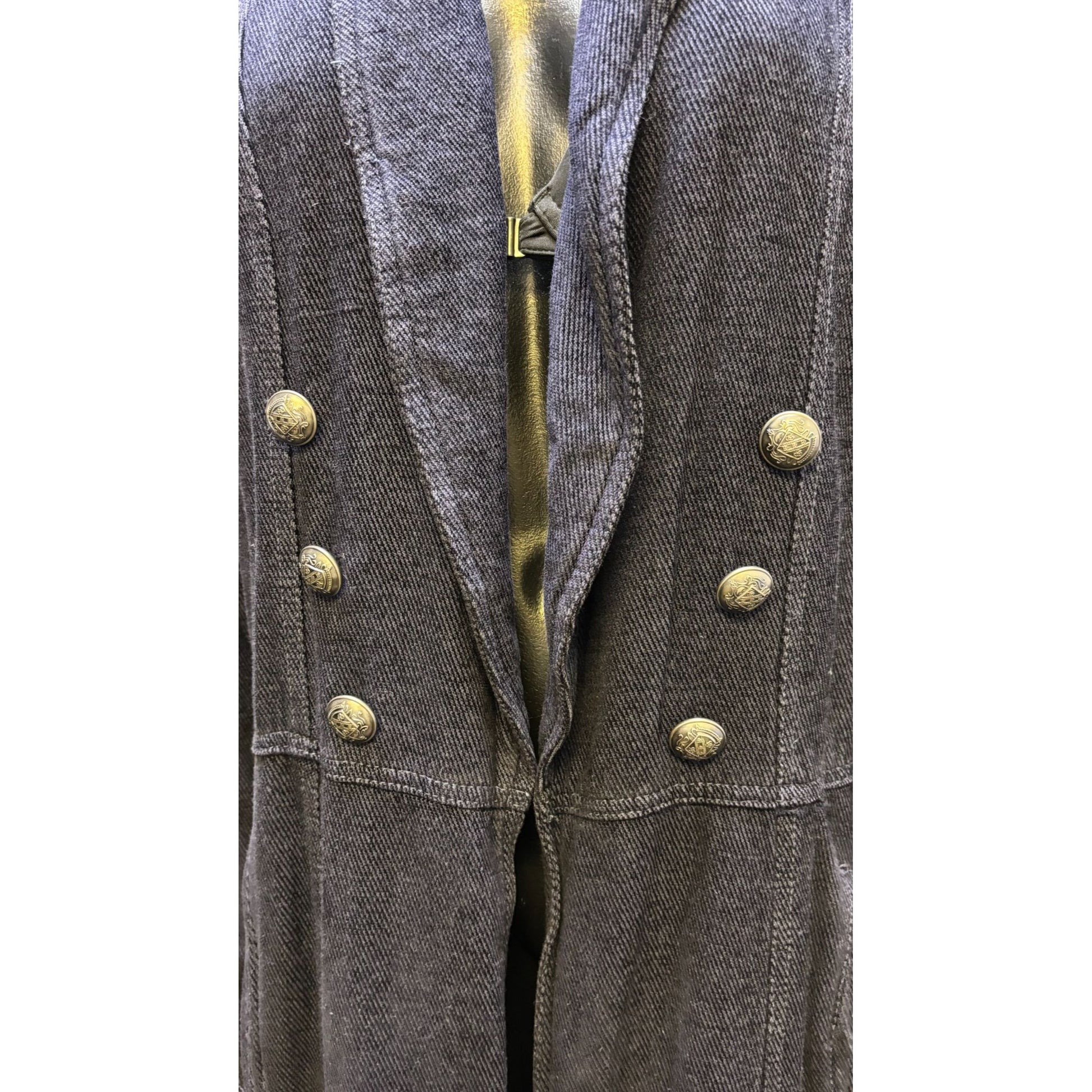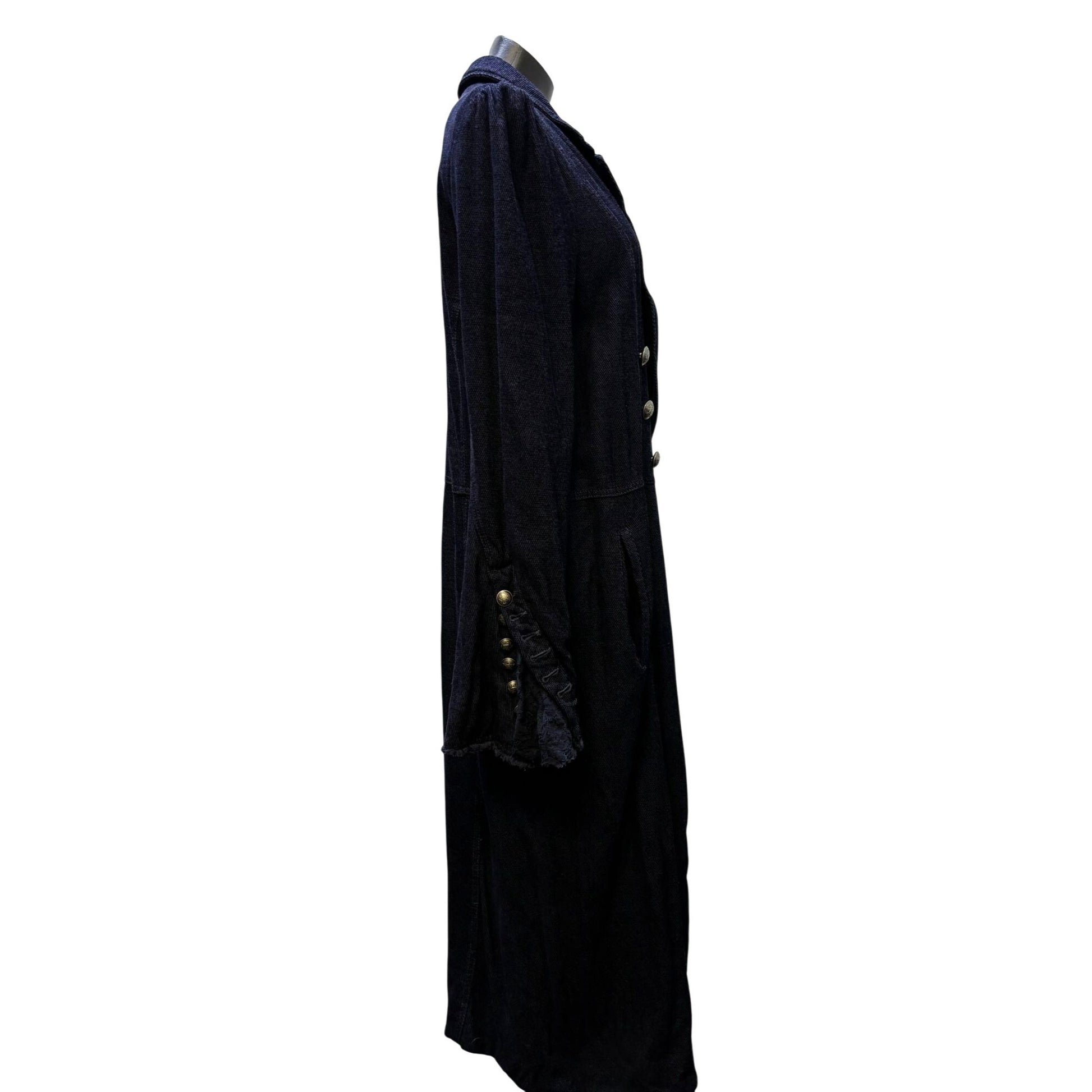 Free People Navy Long Double-Breasted Coat With Gold Buttons Size L