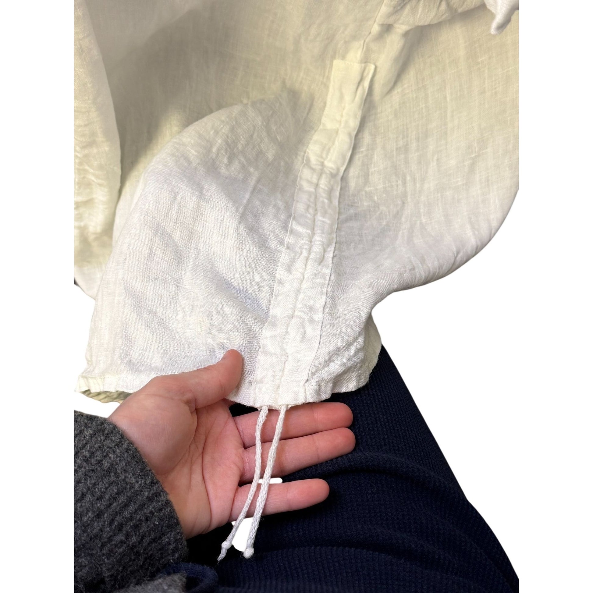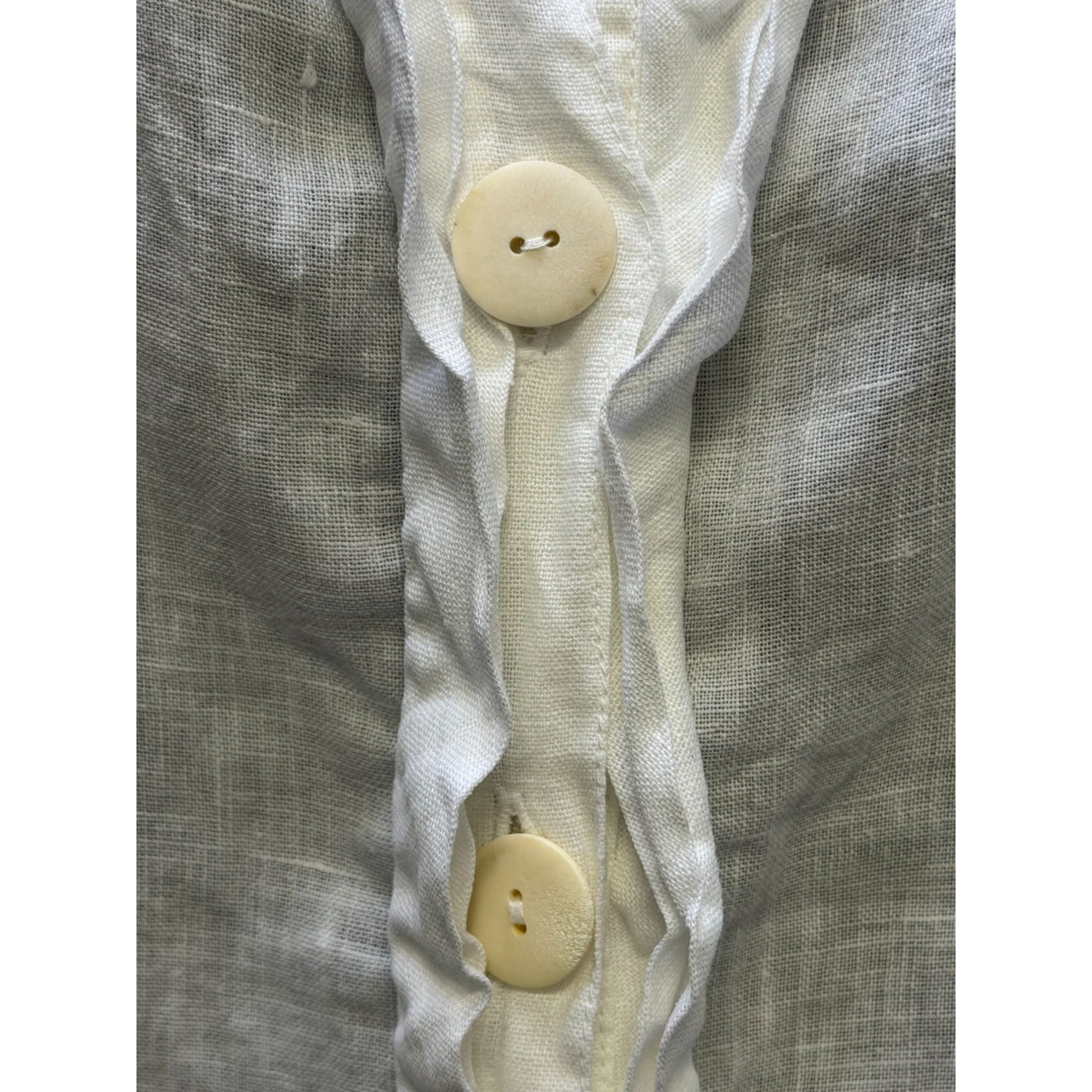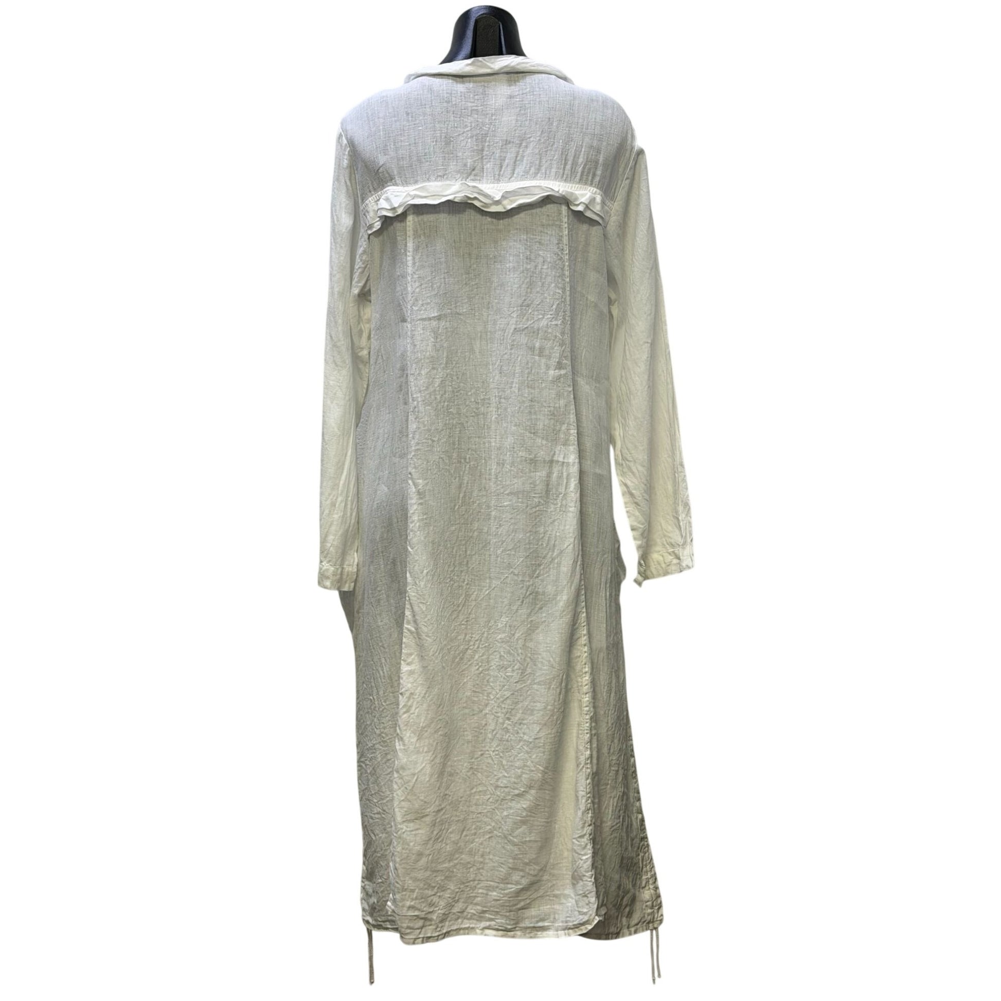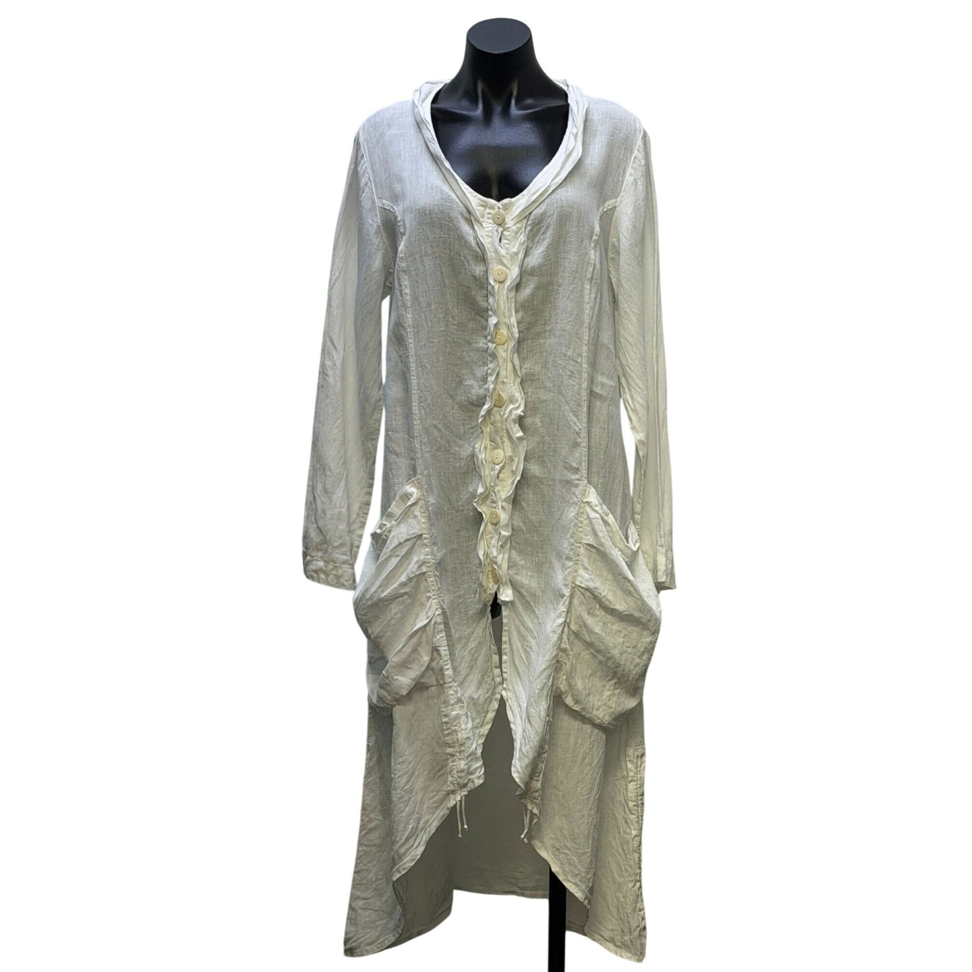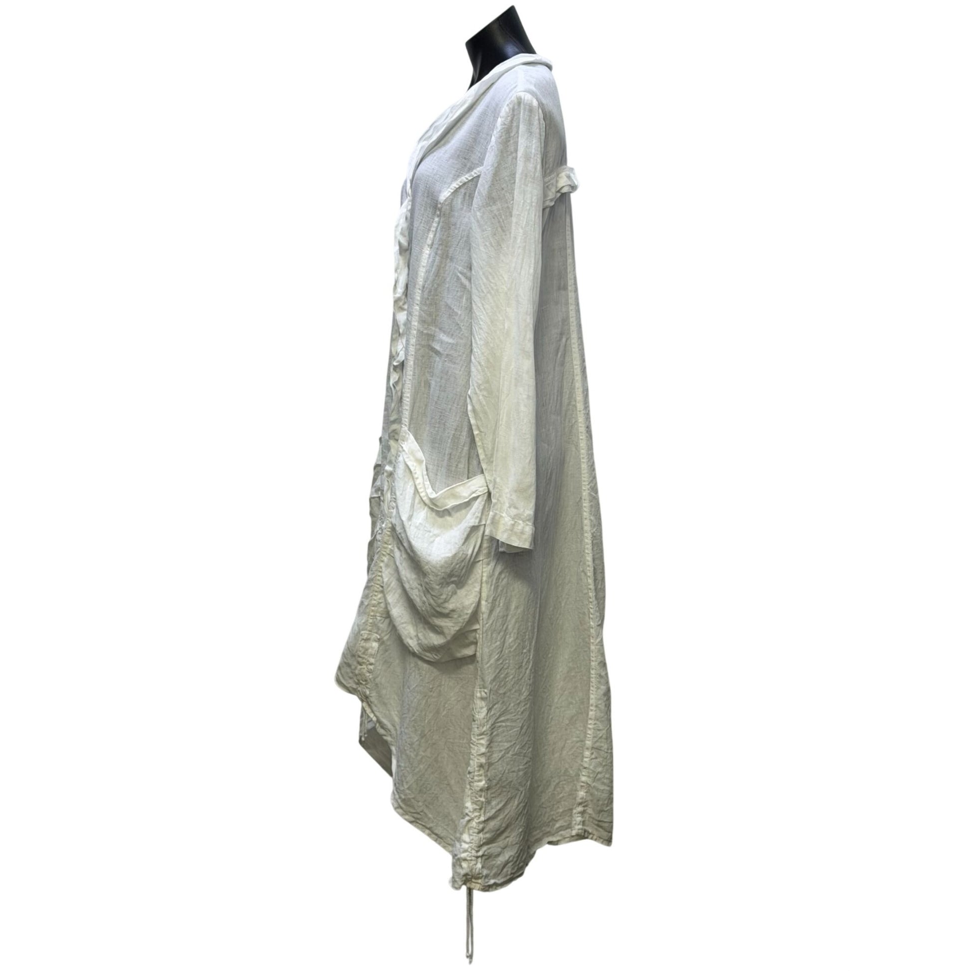 Grizas Linen Button-Front Longline Dress White Asymmetrical Hem Pockets XL