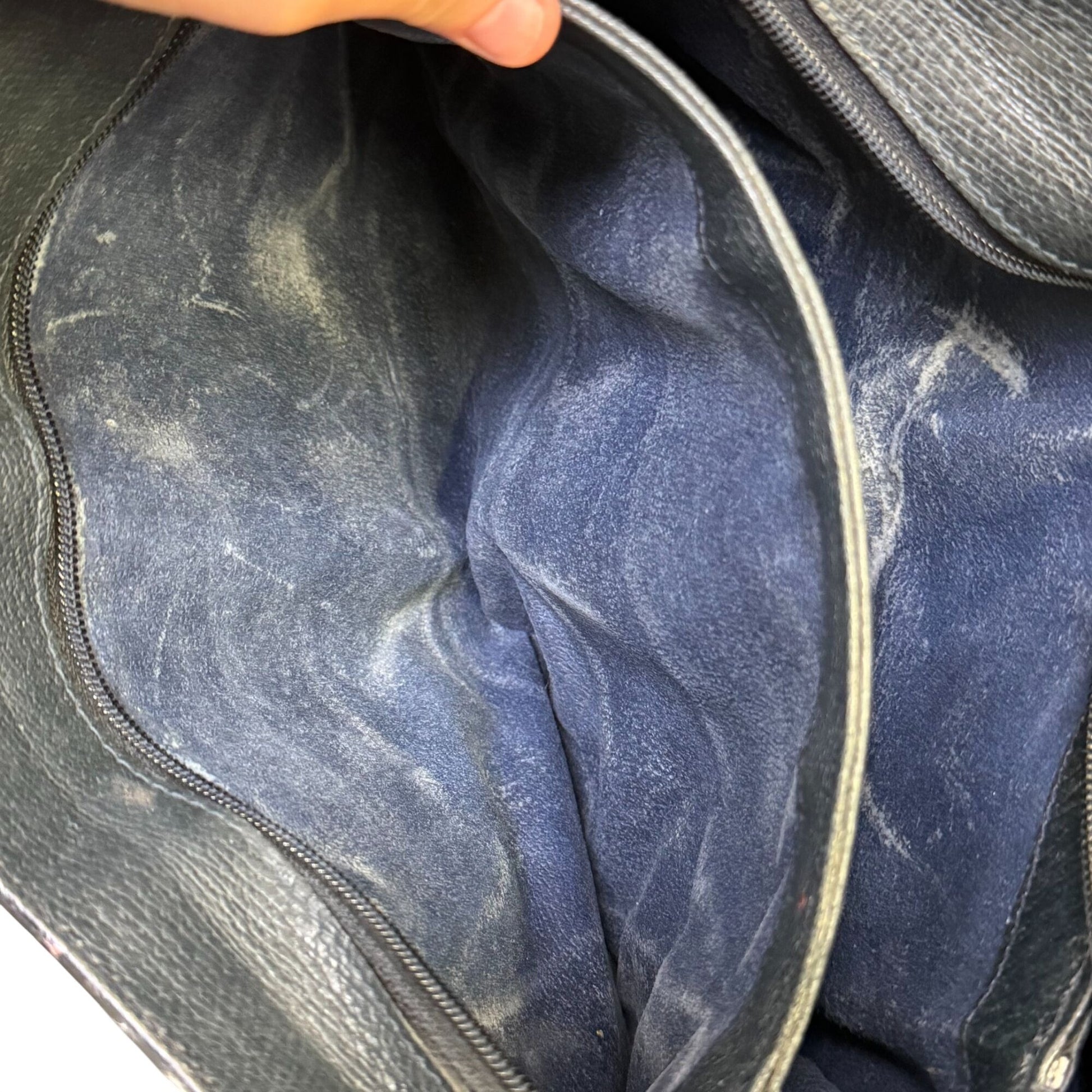 Minor scuffs on leather edges. Top to bottom = 8 inches, Width = 11 inches, Depth = 1.5 inches.
