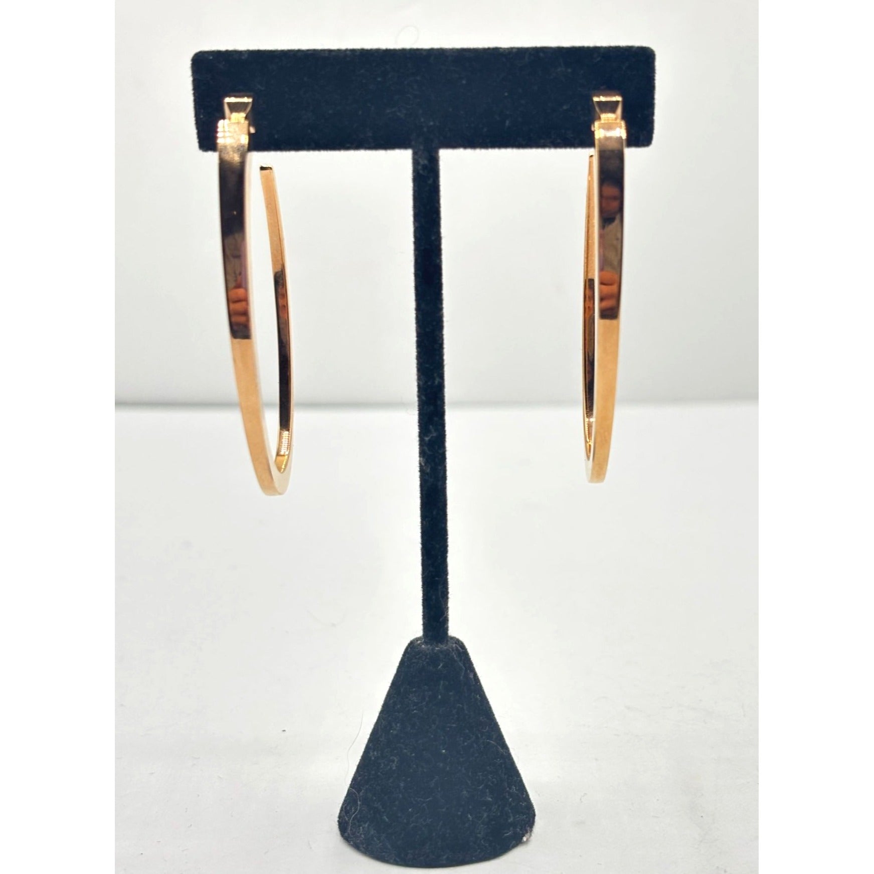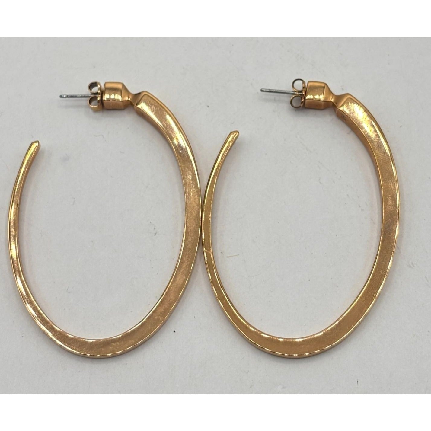 These gold-tone curved oval hoop earrings offer a modern twist on a classic style. Their sleek, elongated design adds an elegant touch to any ensemble, making them suitable for both day and evening wear. Crafted with care, they provide a polished look that caters to contemporary fashion tastes.