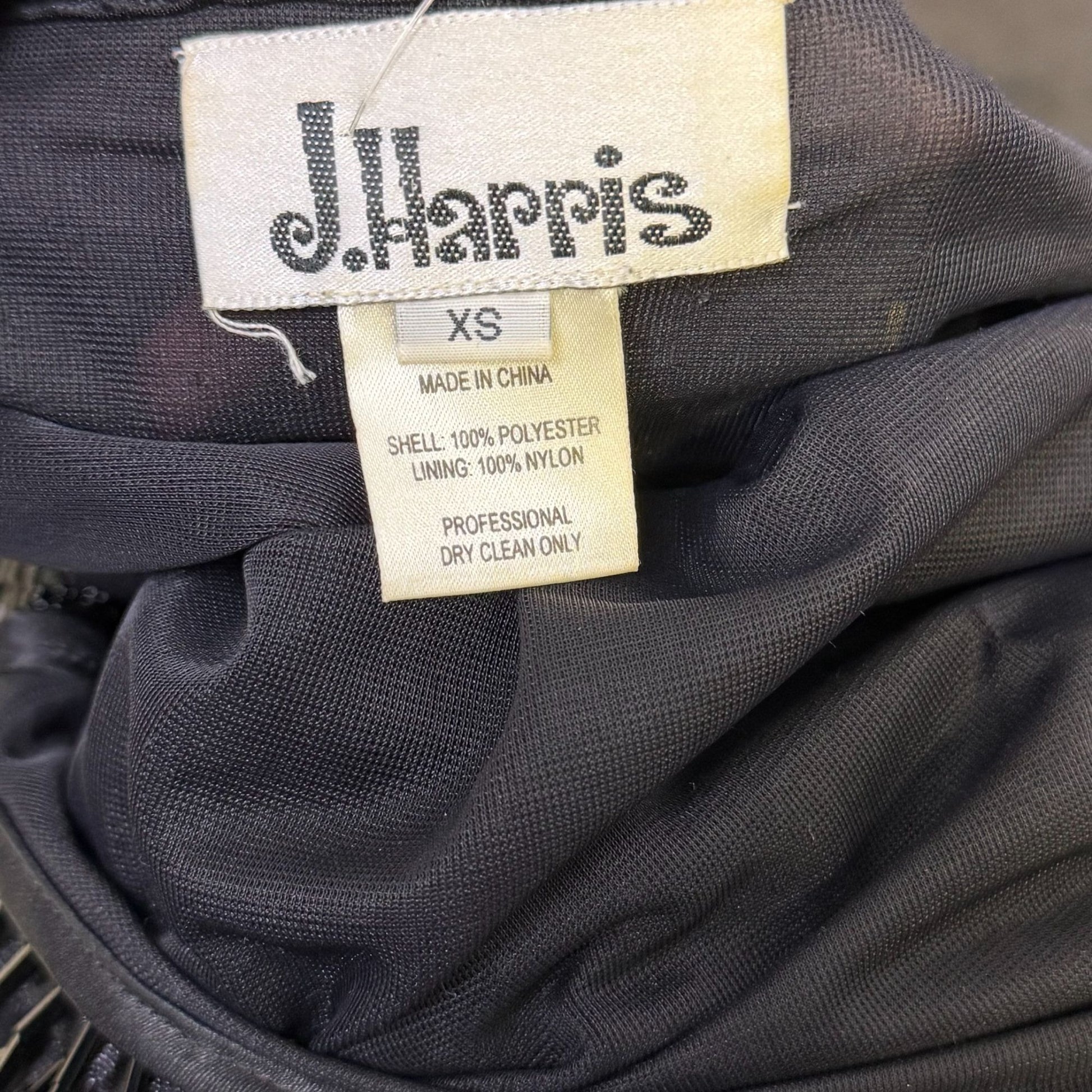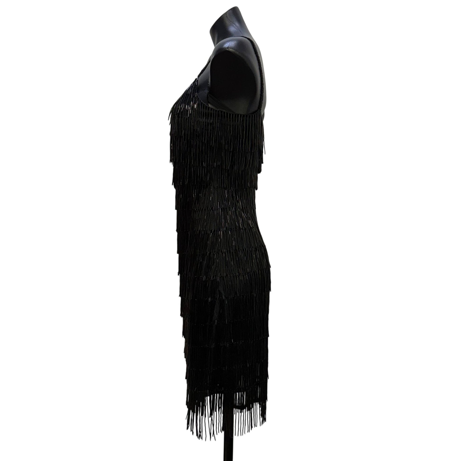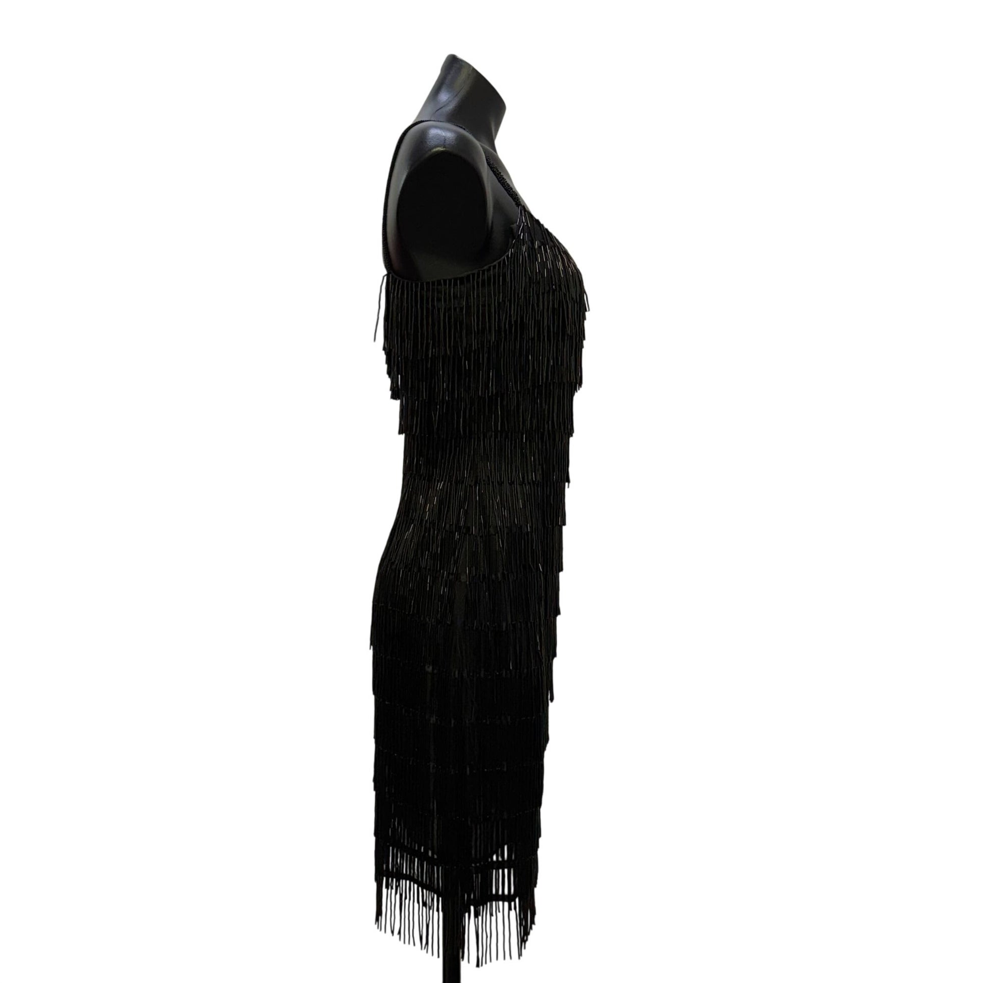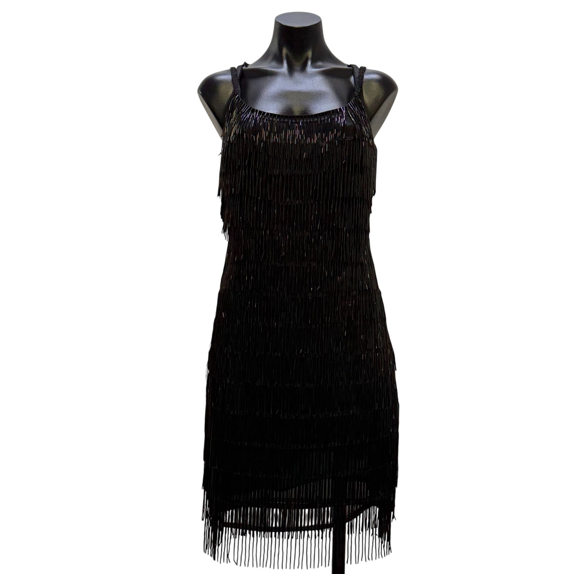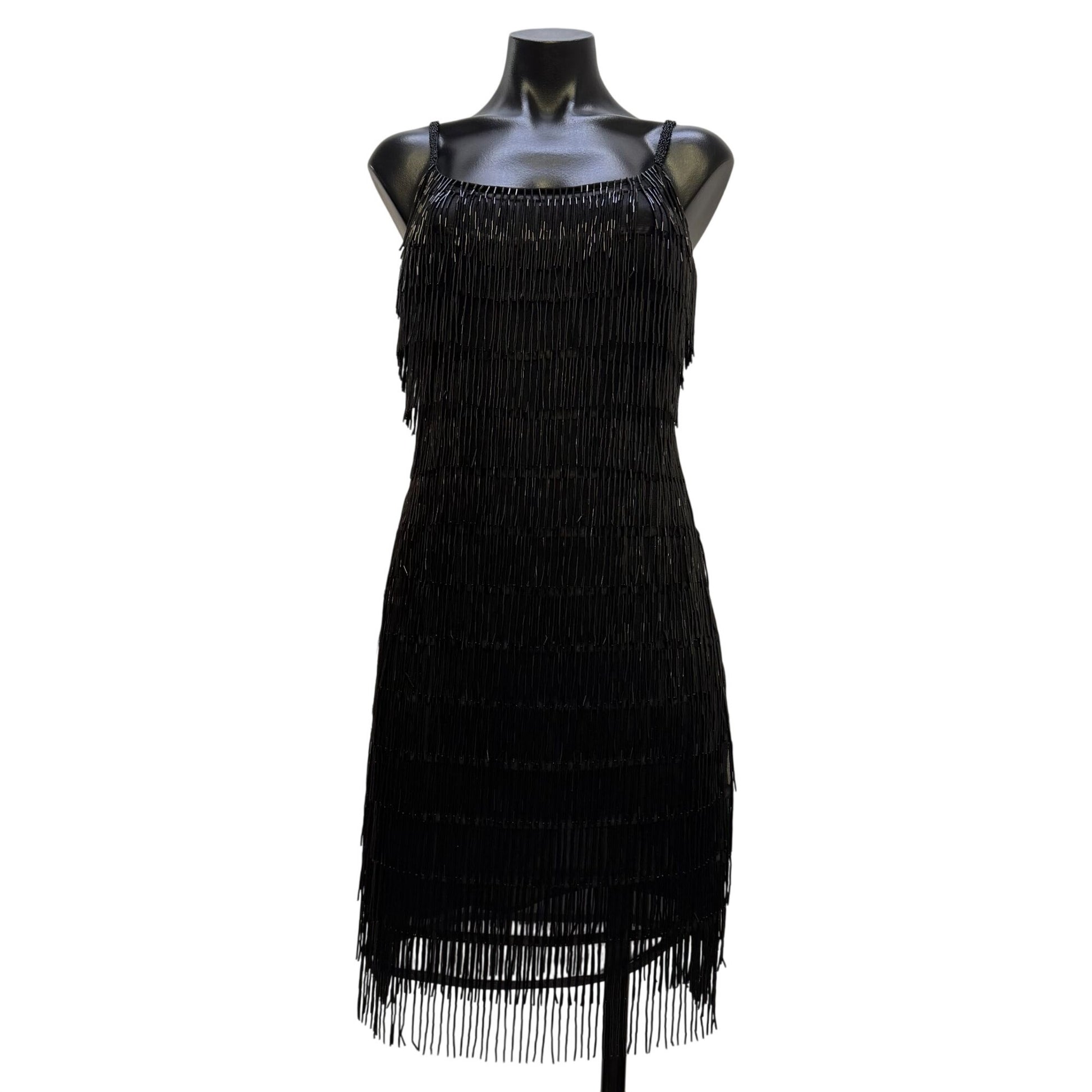 J Harris Black Beaded Fringe Cocktail Dress Vintage Design XS