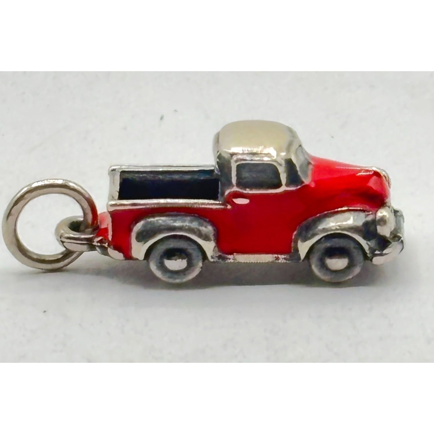 This sterling silver charm features a miniature vintage red pickup truck design, ideal for collectors or as a unique addition to your jewelry collection. Crafted with attention to detail, it offers a distinctive style, perfect for adding a touch of nostalgia to any charm bracelet or necklace.