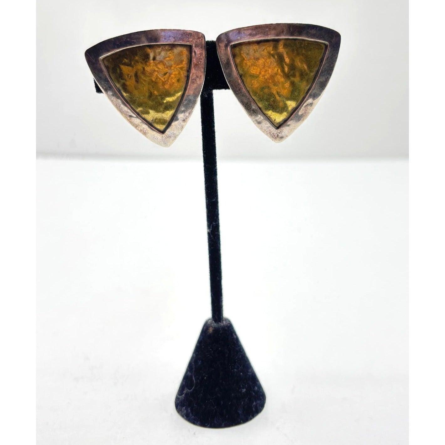 Jeep Collins Retired Hammered 925 Brass Clip-On Earrings Triangle Shape