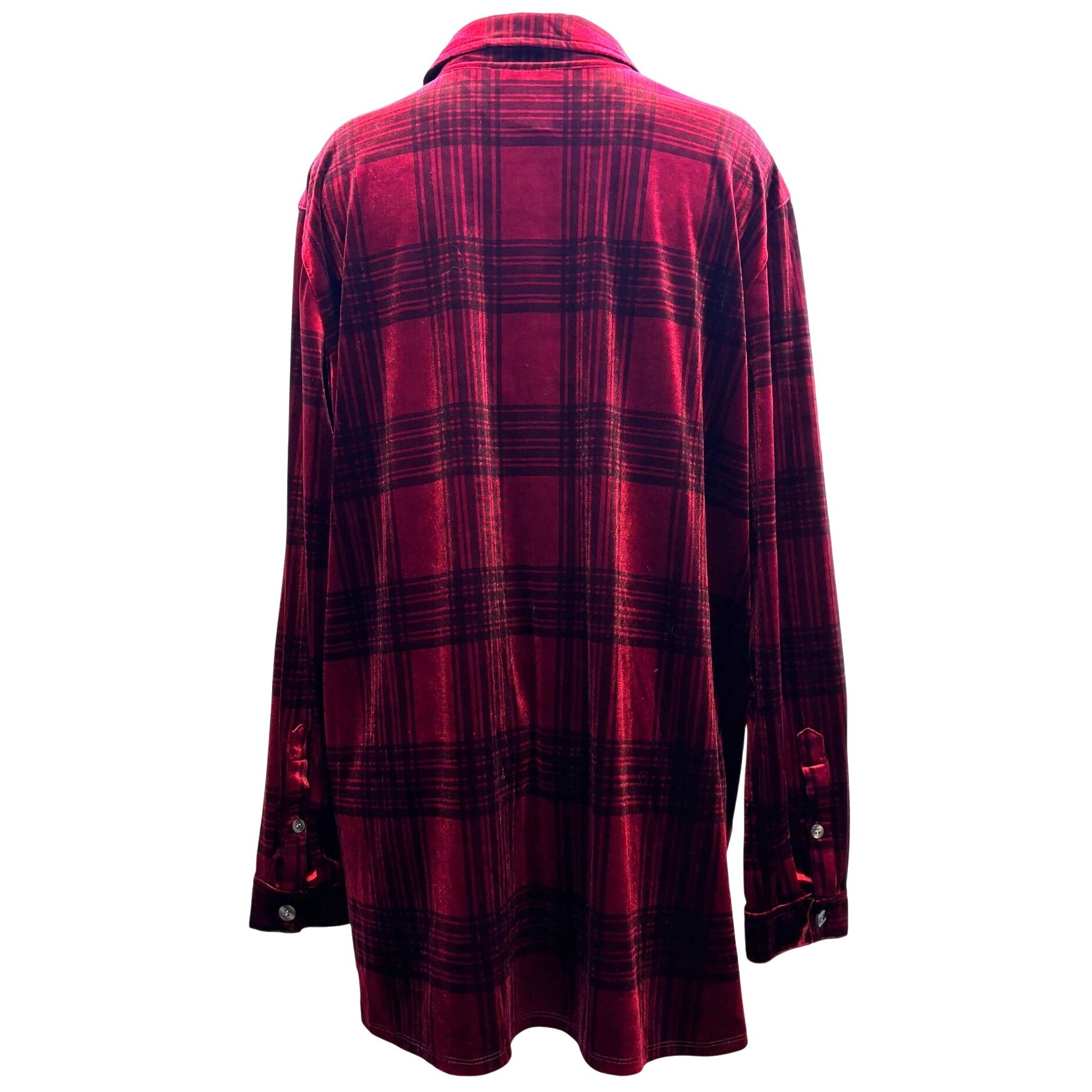 This John Mark tunic shirt offers a sophisticated style with its velour texture and rich red plaid design. Designed with a comfortable fit, it is perfect for those seeking a blend of elegance and comfort in their wardrobe. Ideal for layering or standalone wear, enhancing any professional ensemble.