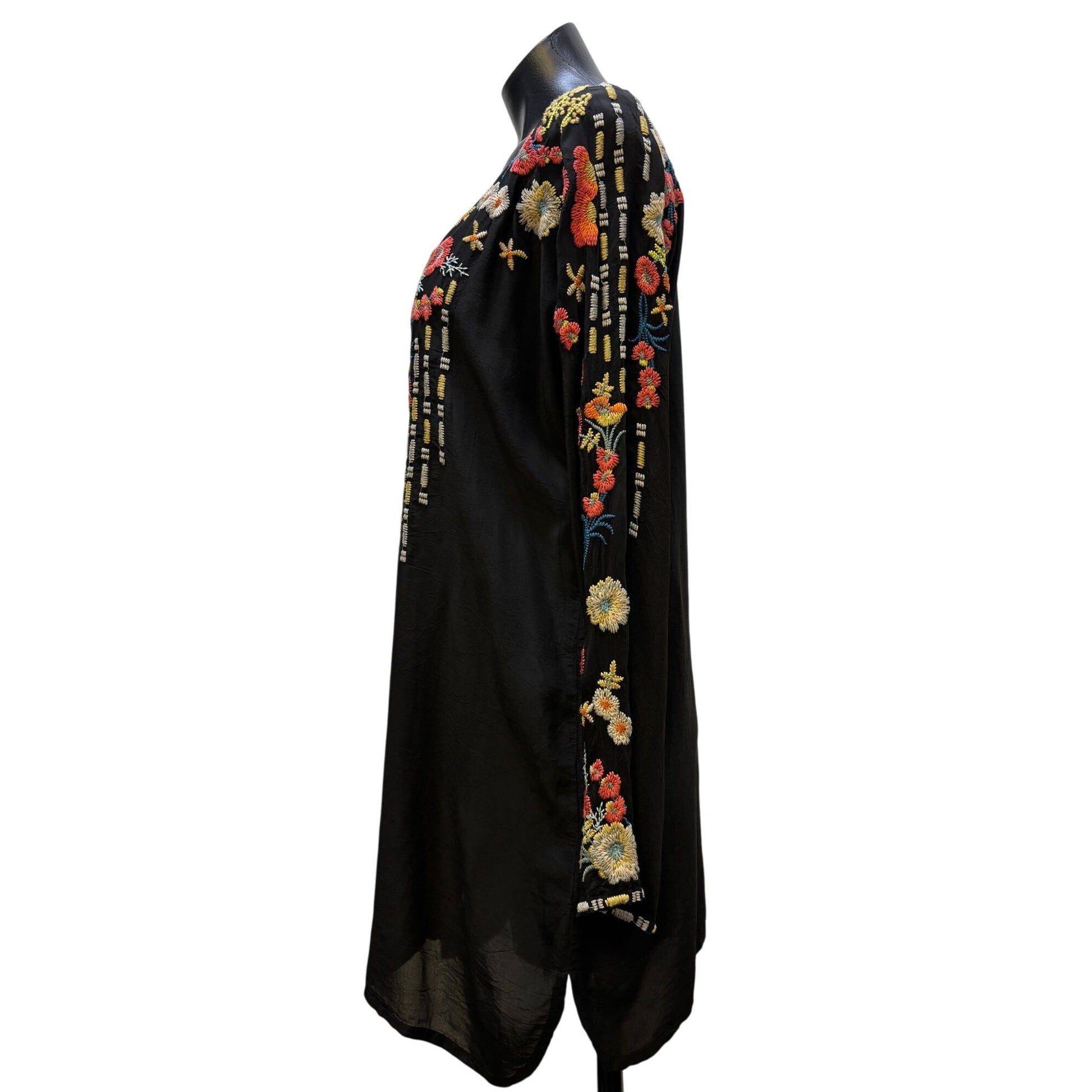 Johnny Was Black Silk Embroidered Blouse With Floral Details M