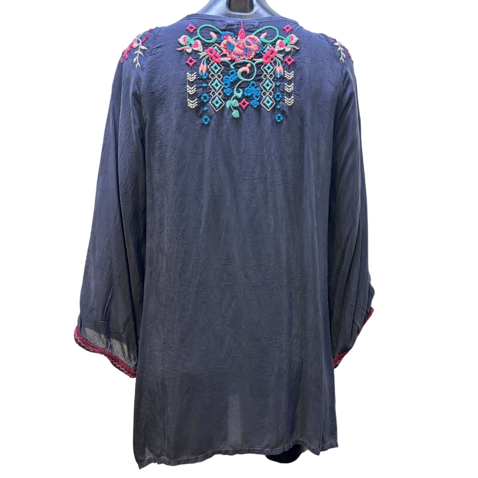 Johnny Was Embroidered Blouse Gray Multicolor L
