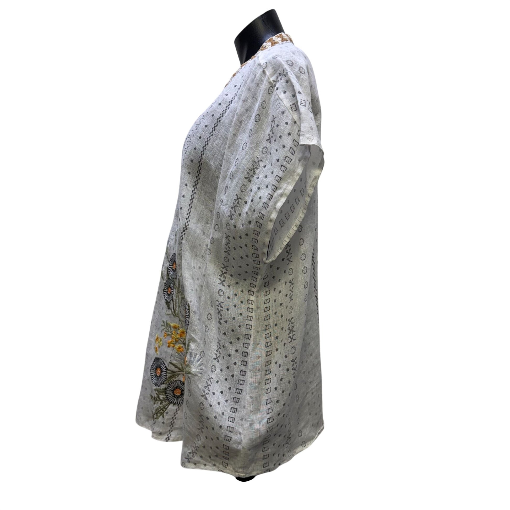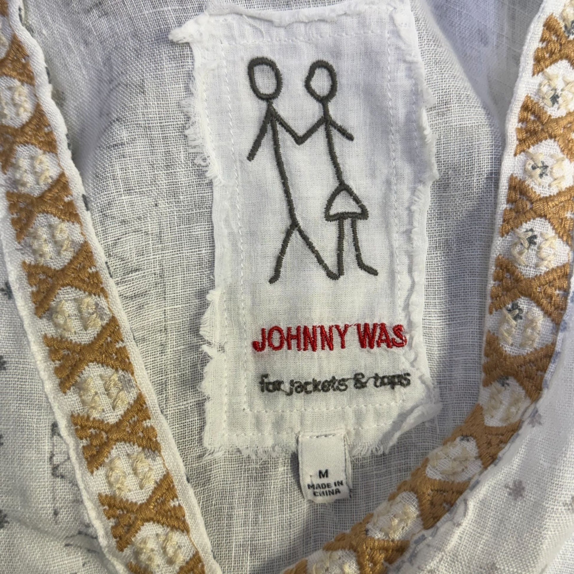 Johnny Was Linen Floral Embroidered Blouse White Multi M