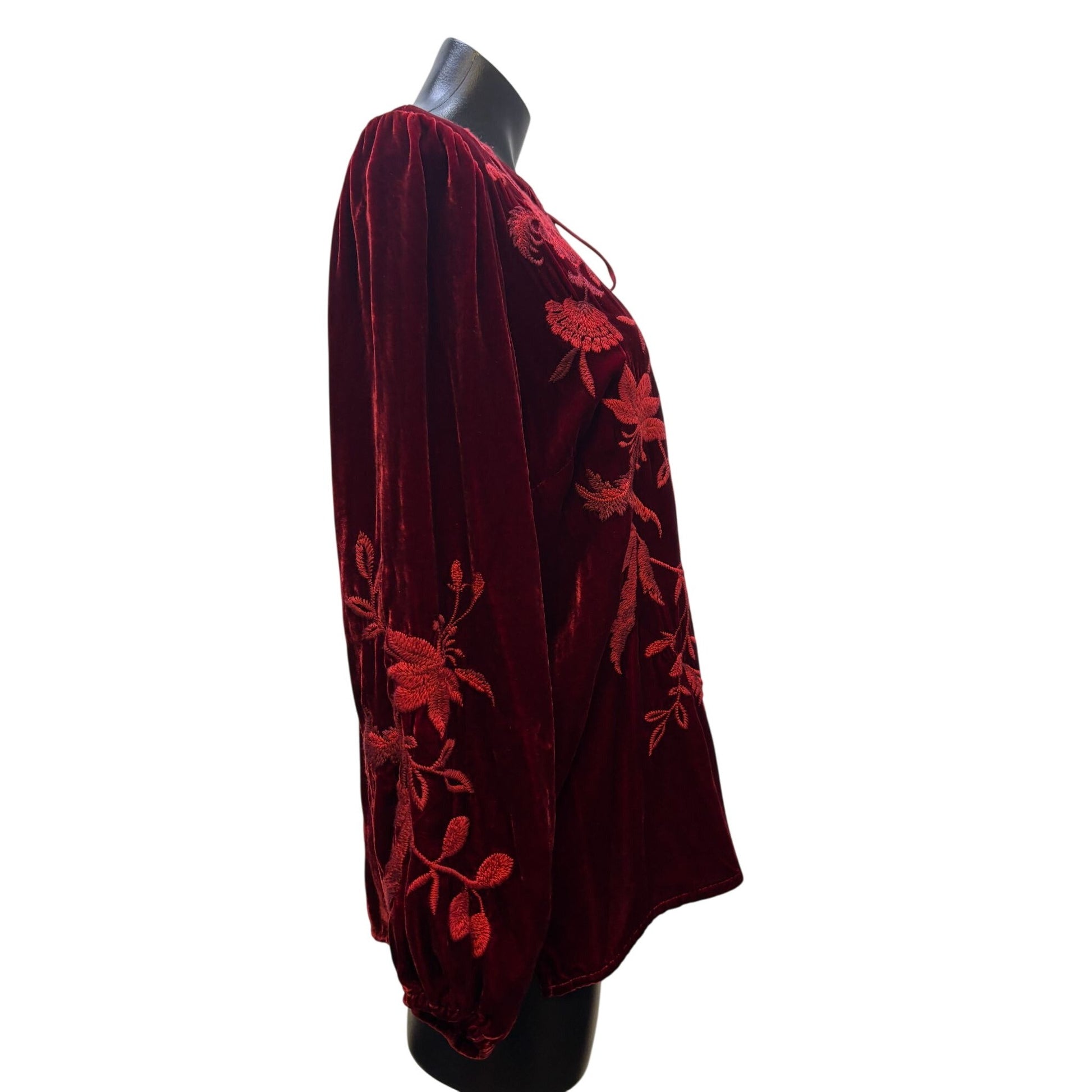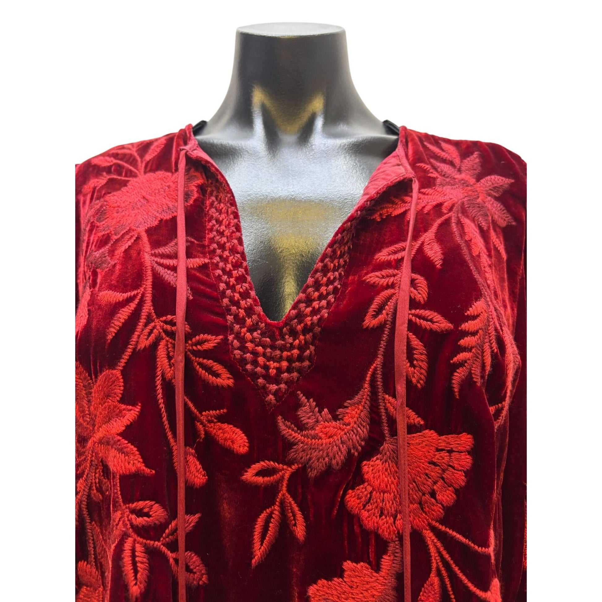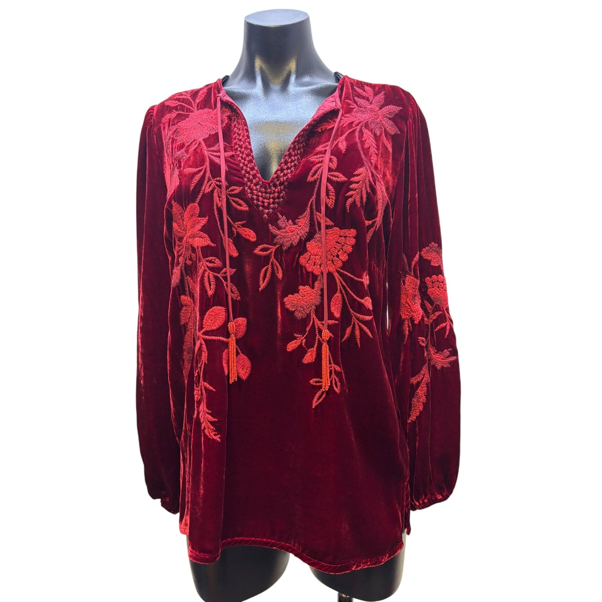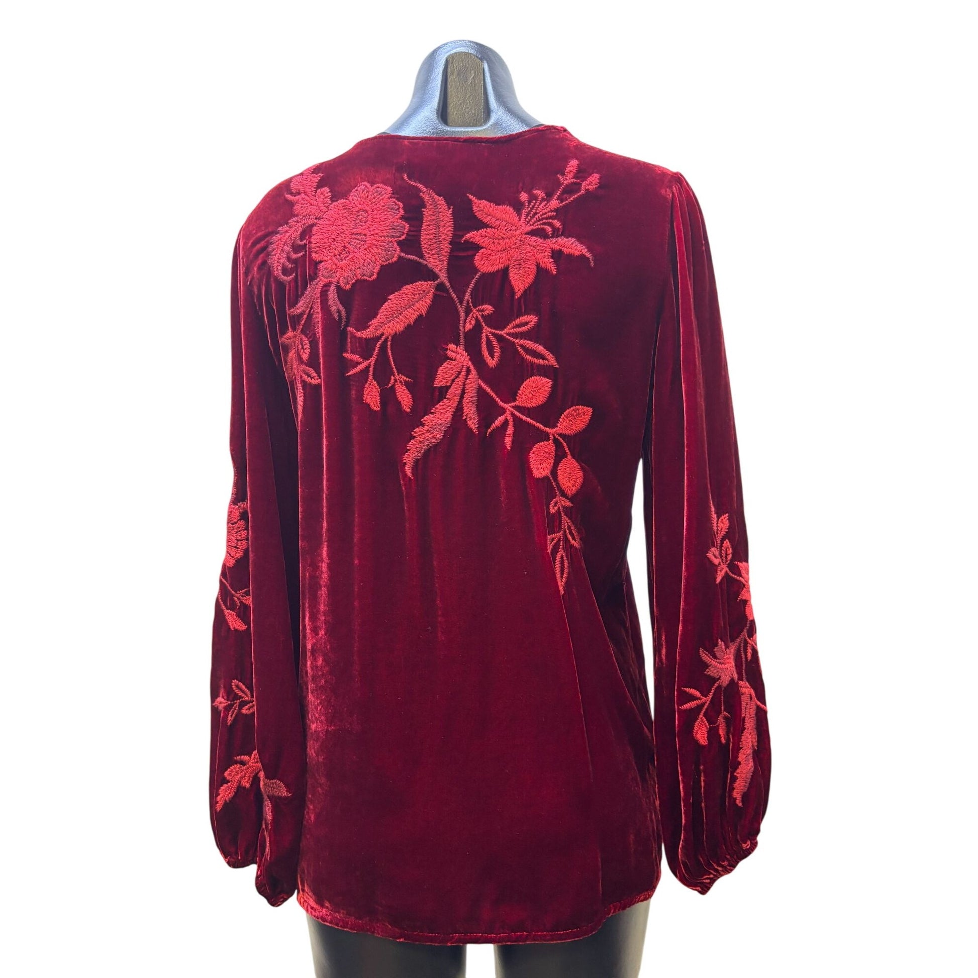 Johnny Was Red Velvet Embroidered Blouse Size S