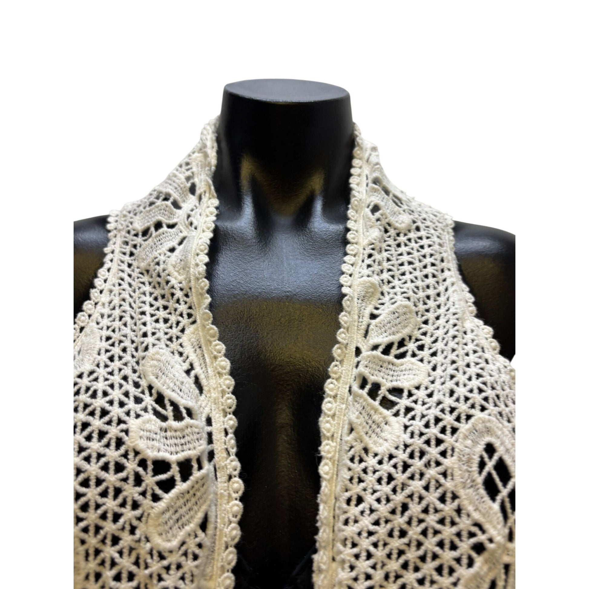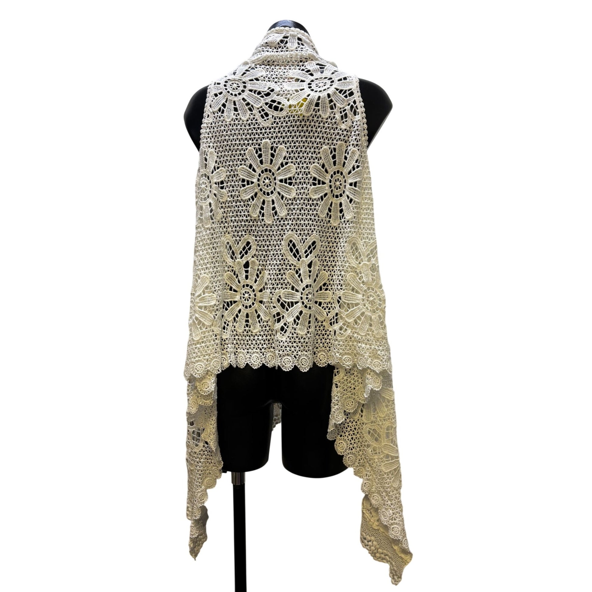 Johnny Was White Crochet Lace Open Cardigan Vest Boho Chic S
