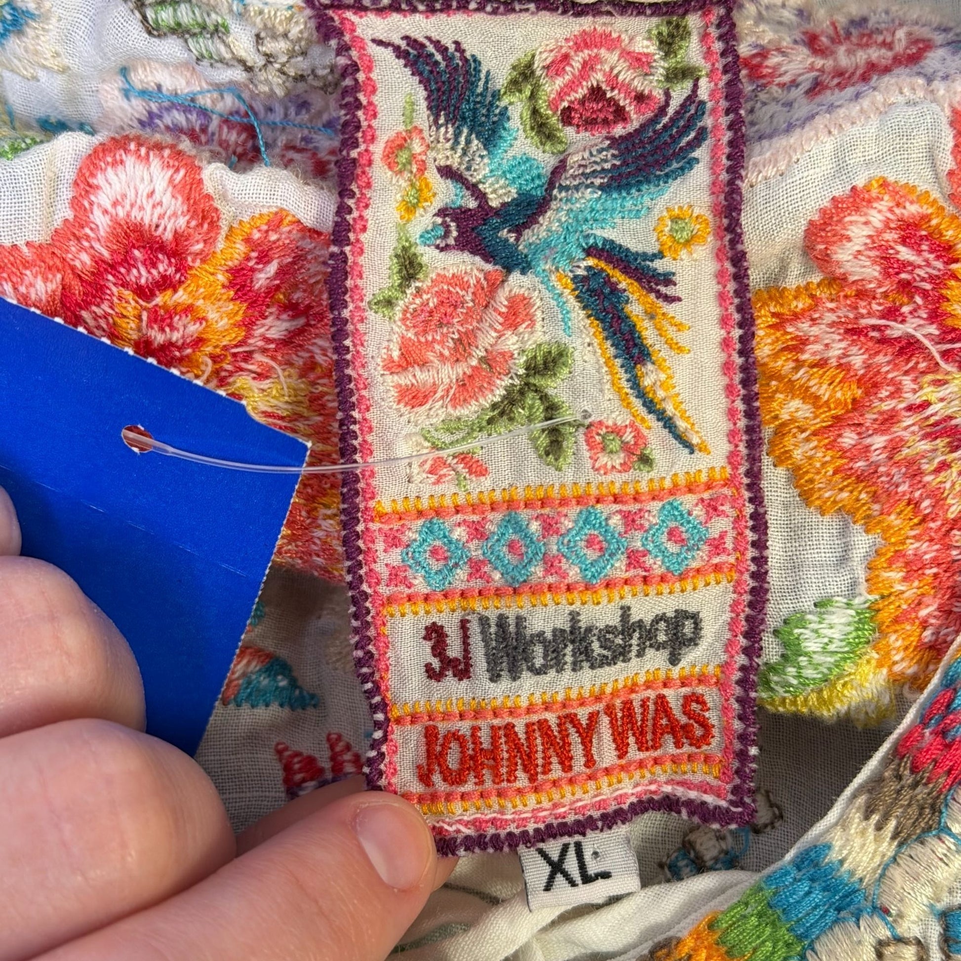 Johnny Was White Embroidered Floral Kaftan Dress XL