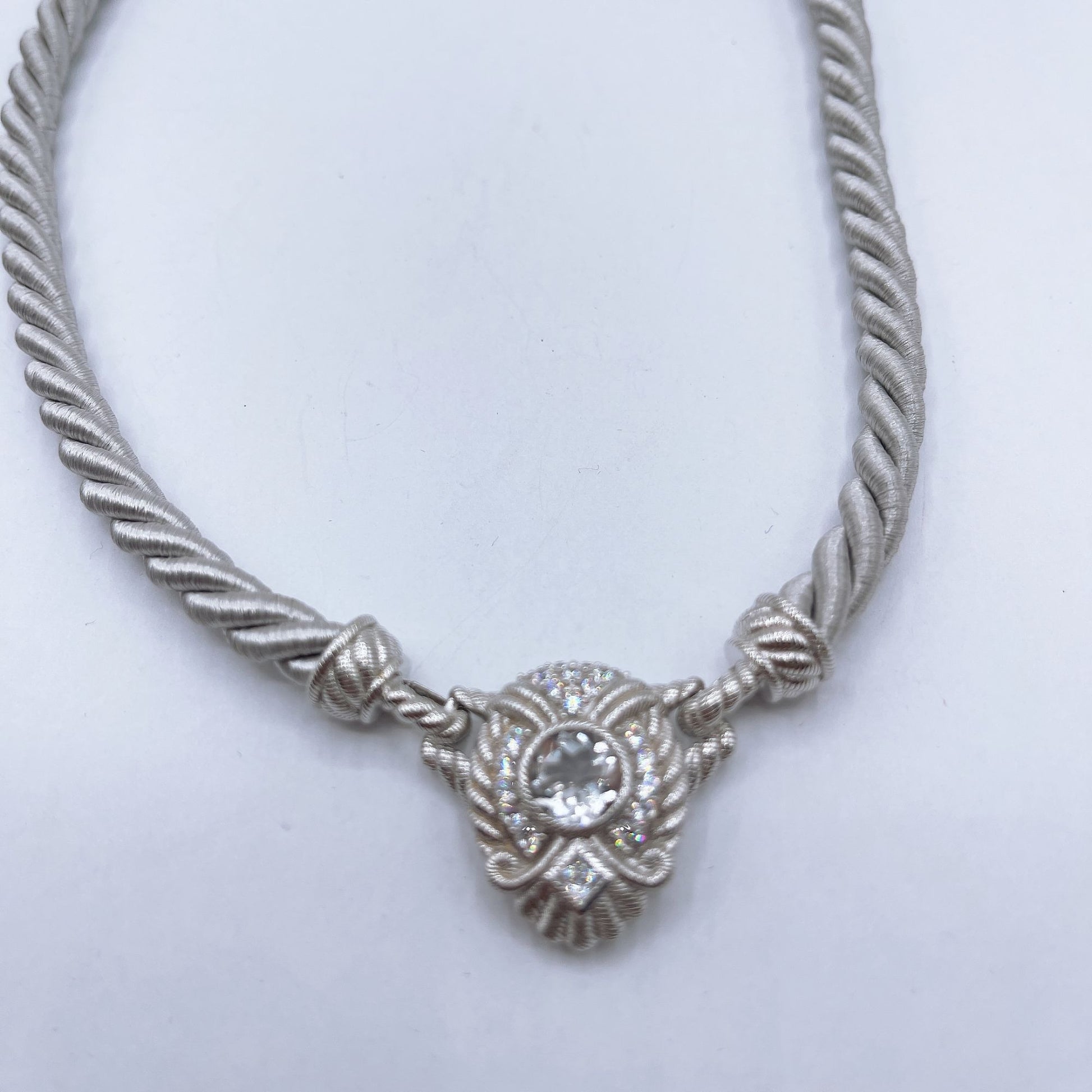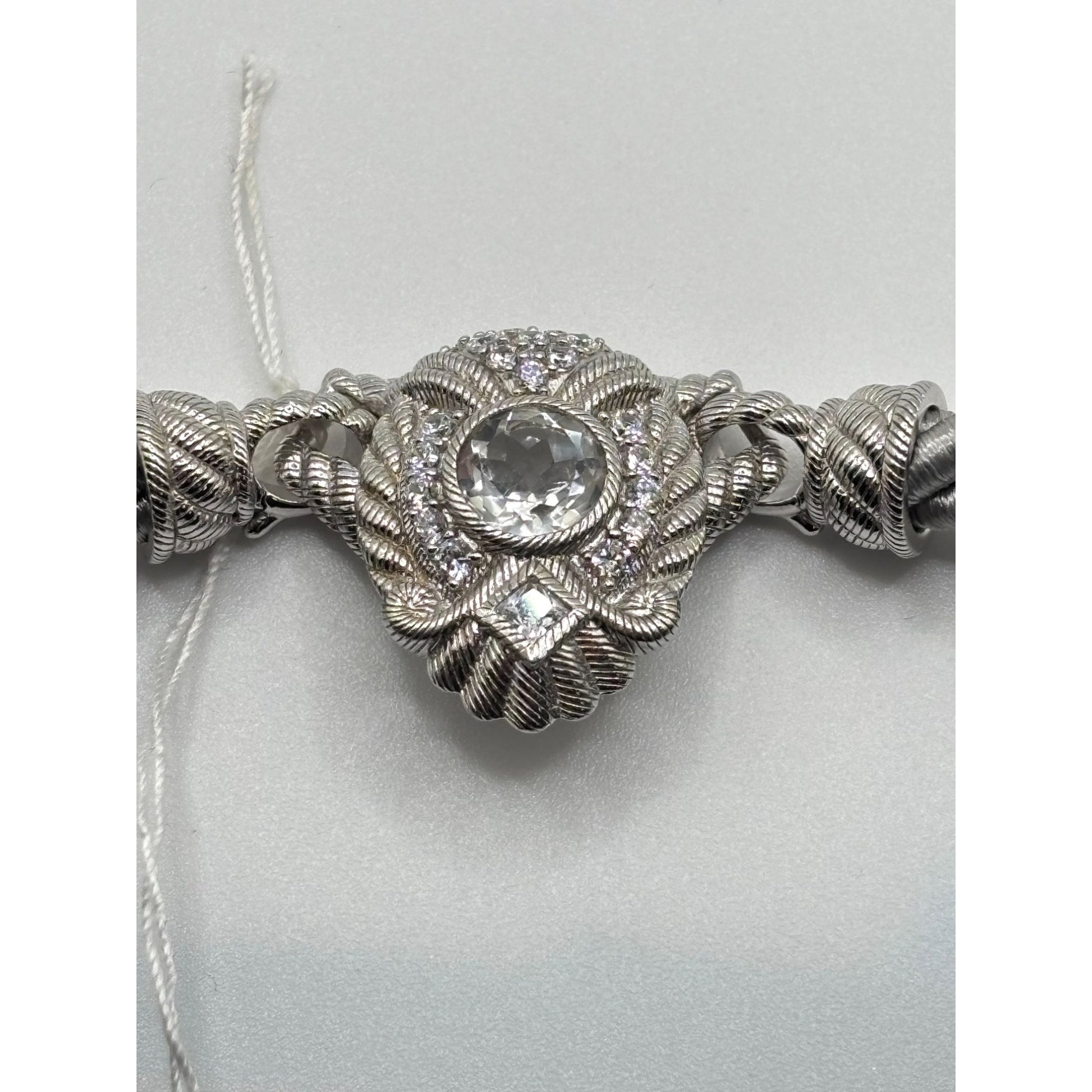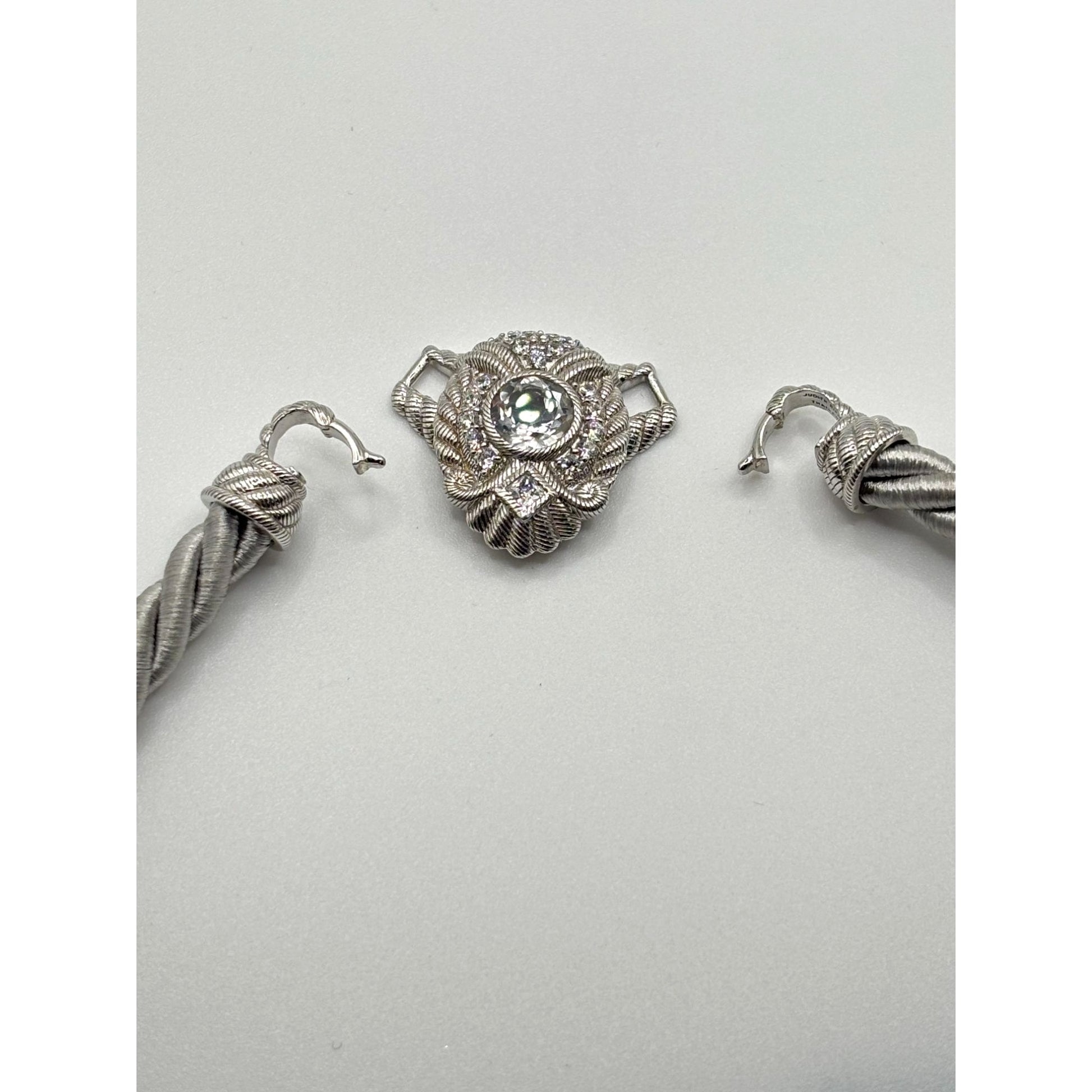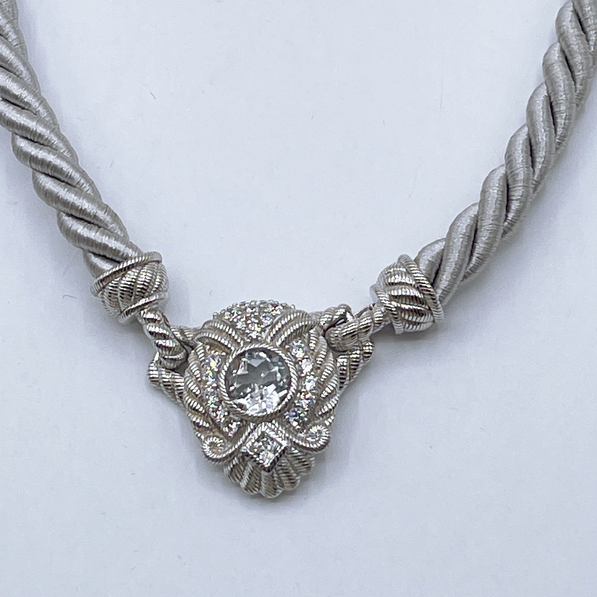 Judith Ripka 925 Sterling Silver Twisted Rope Necklace W/Convertible Cubic Zirconia Pendant