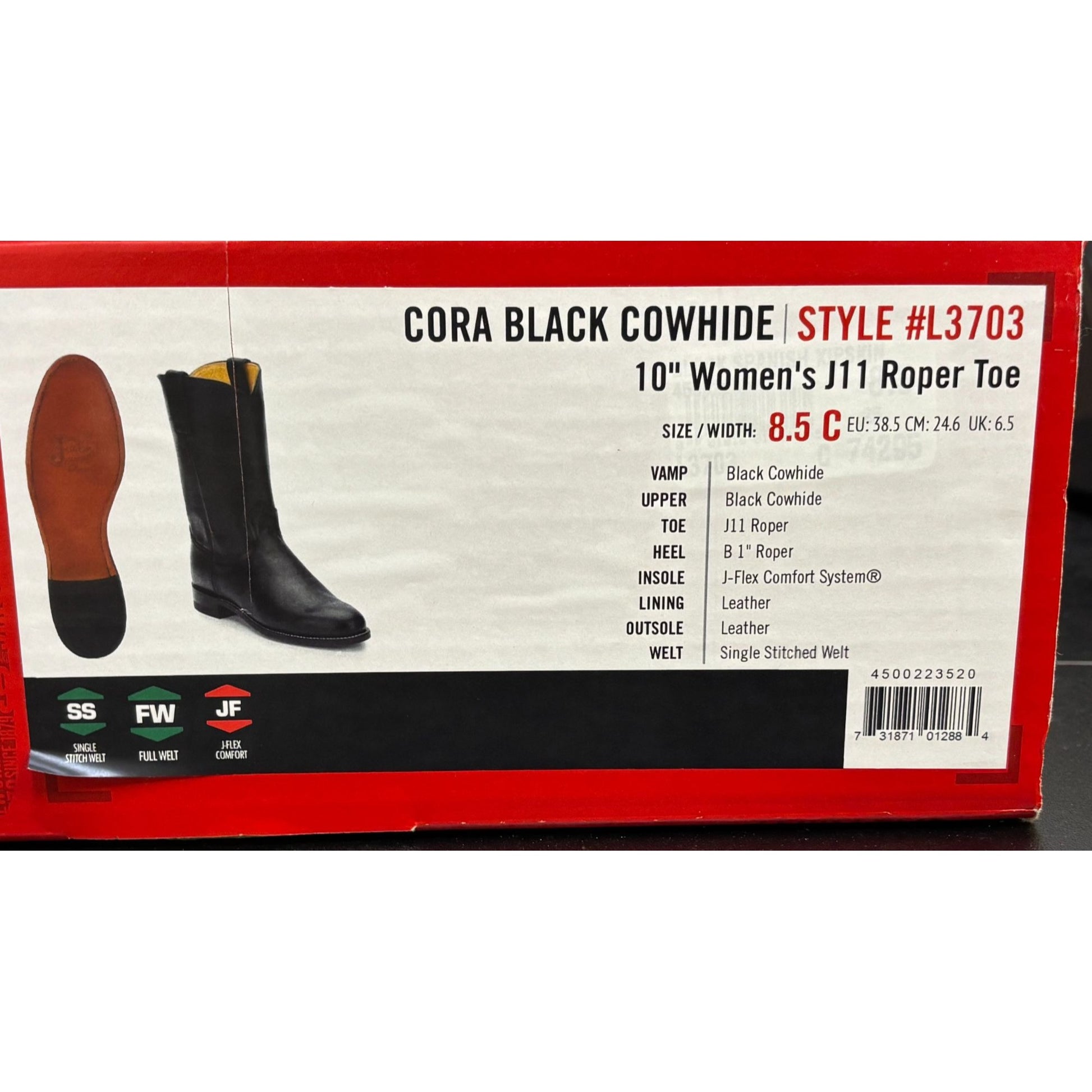 Crafted from quality leather, these Justin Western boots combine style and functionality. Their classic design ensures durability and comfort for extended wear.
