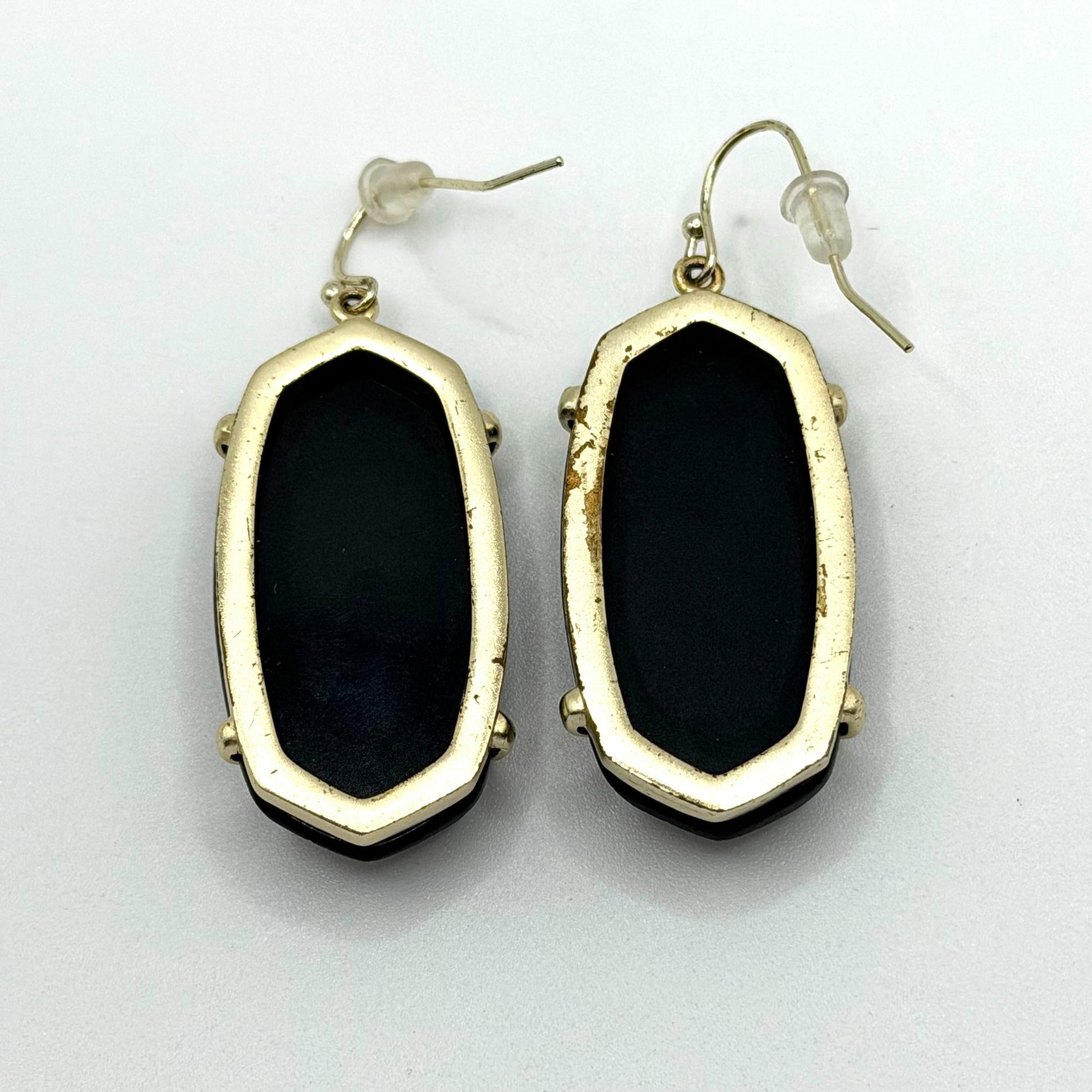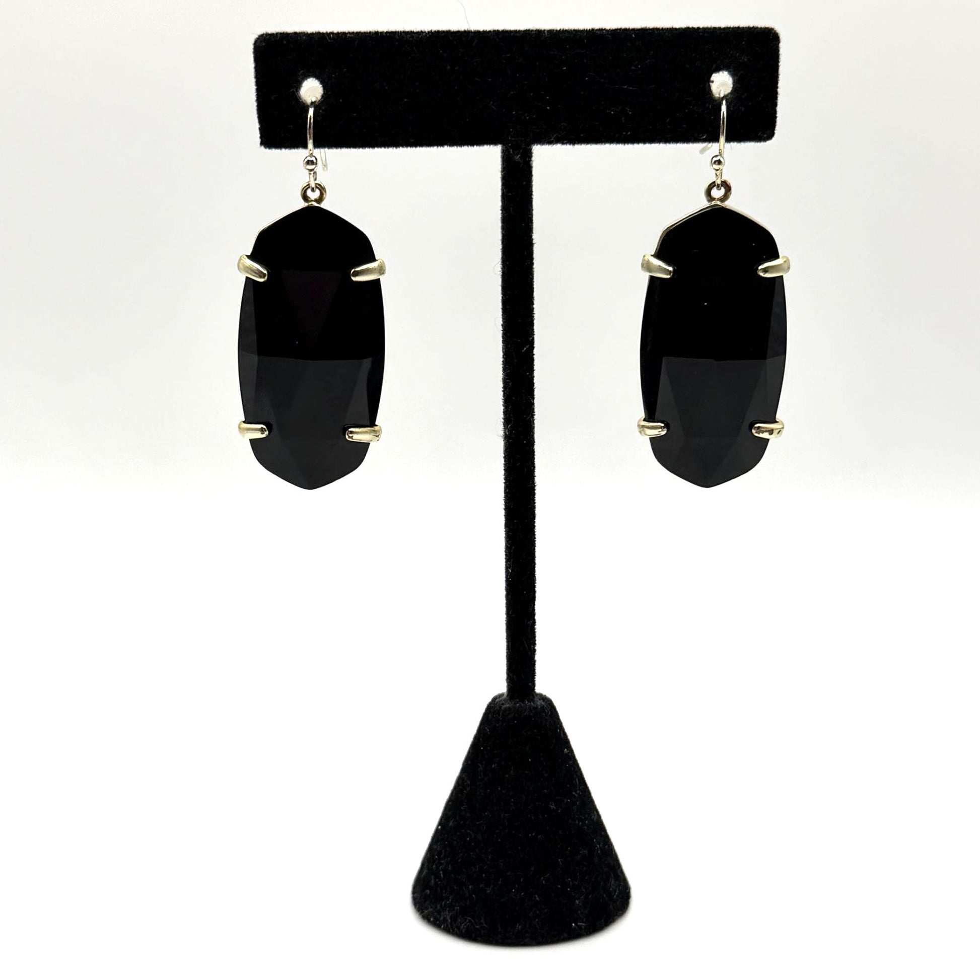 These Kendra Scott earrings feature faceted black stones in a gold-tone frame. Designed with secure French wire hooks, adding a refined elegance to your look.