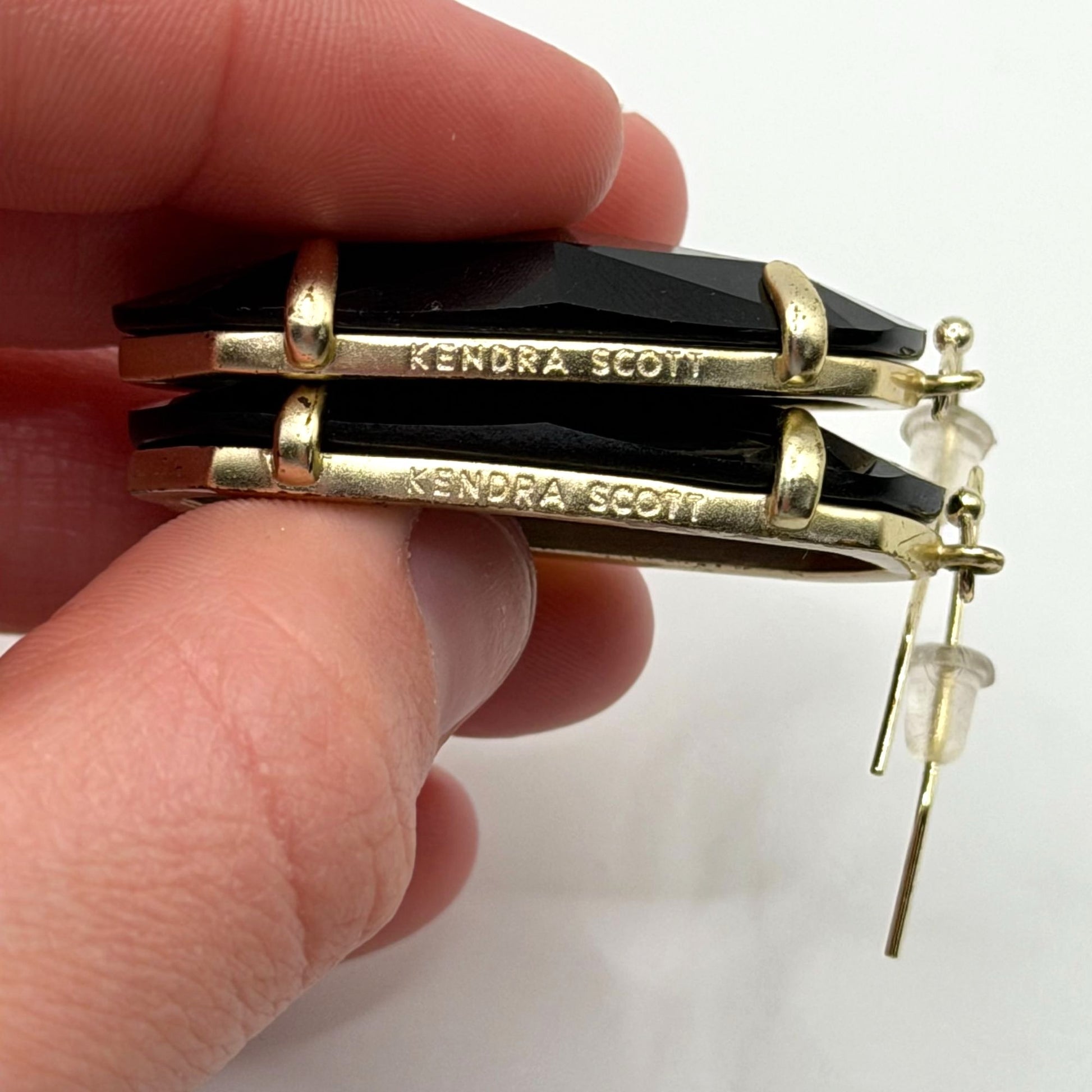 Kendra Scott Black Faceted Drop Earrings Gold-Tone Frame
