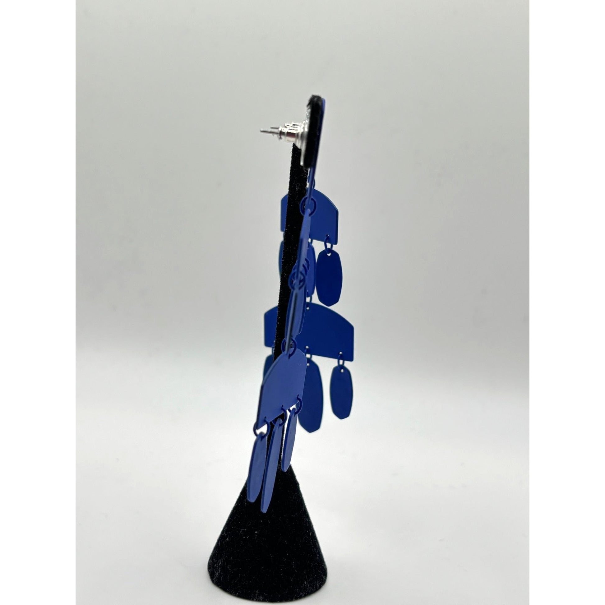 Elegant architectural earrings crafted with precision, featuring a sophisticated layered design in rich cobalt blue. Structured geometric elements cascade in a modern chandelier silhouette, creating visual movement and contemporary sophistication for the discerning professional.