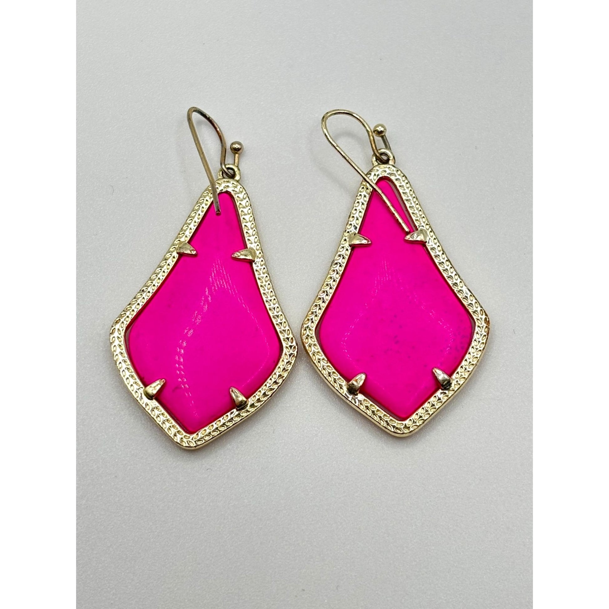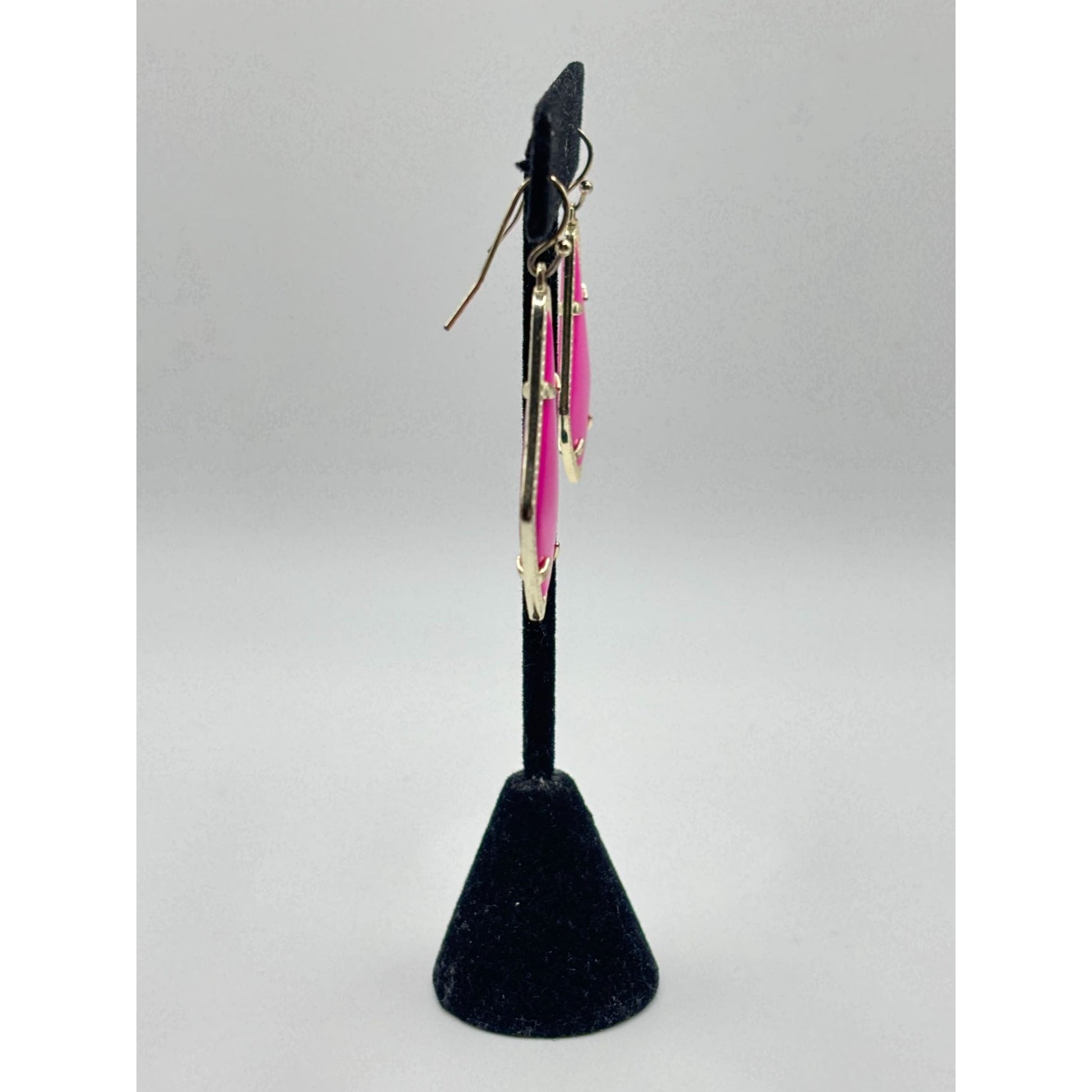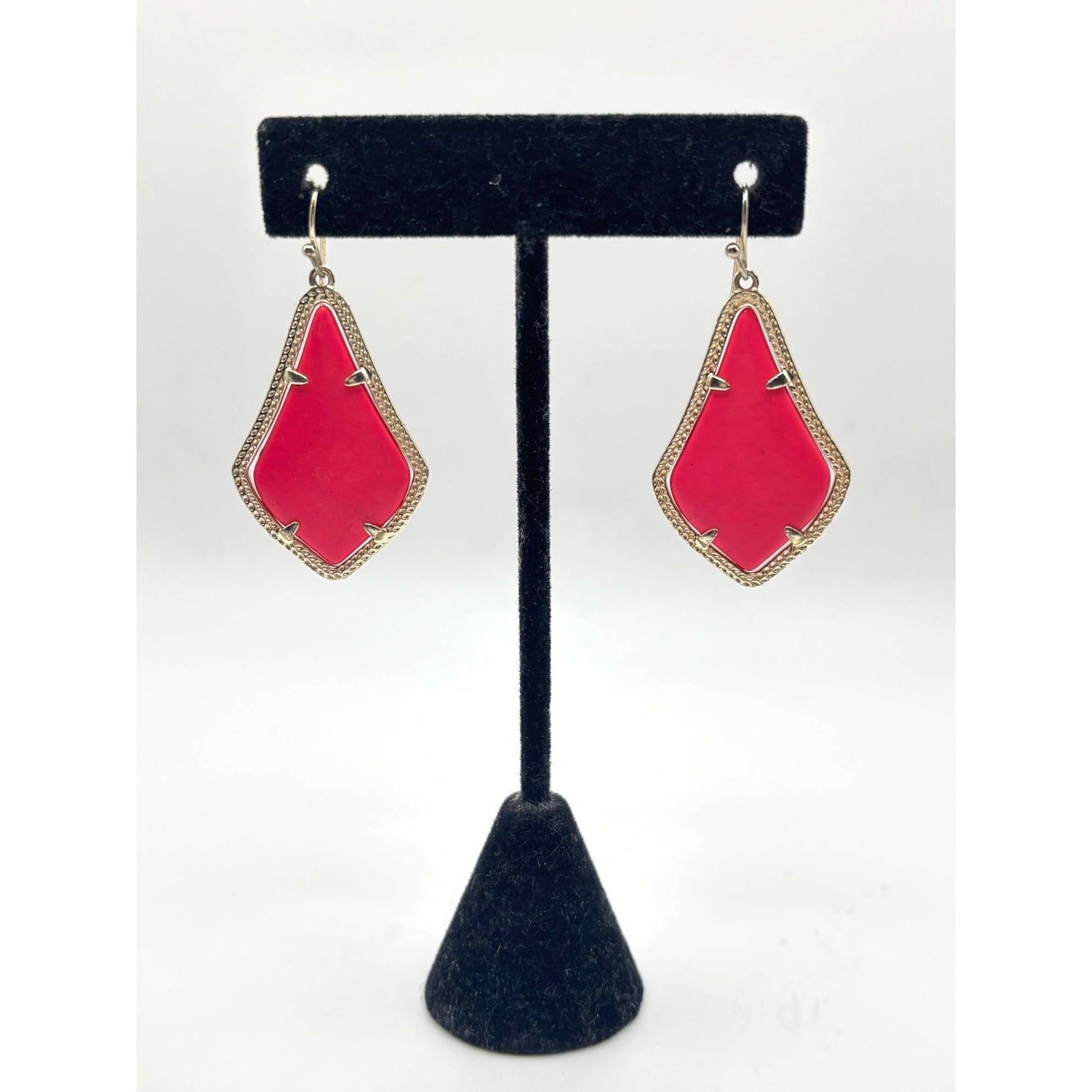 These Kendra Scott Elle drop earrings feature a bold pink stone encased in gold-plated metal. Versatile and lightweight, ideal for adding elegance to any ensemble.