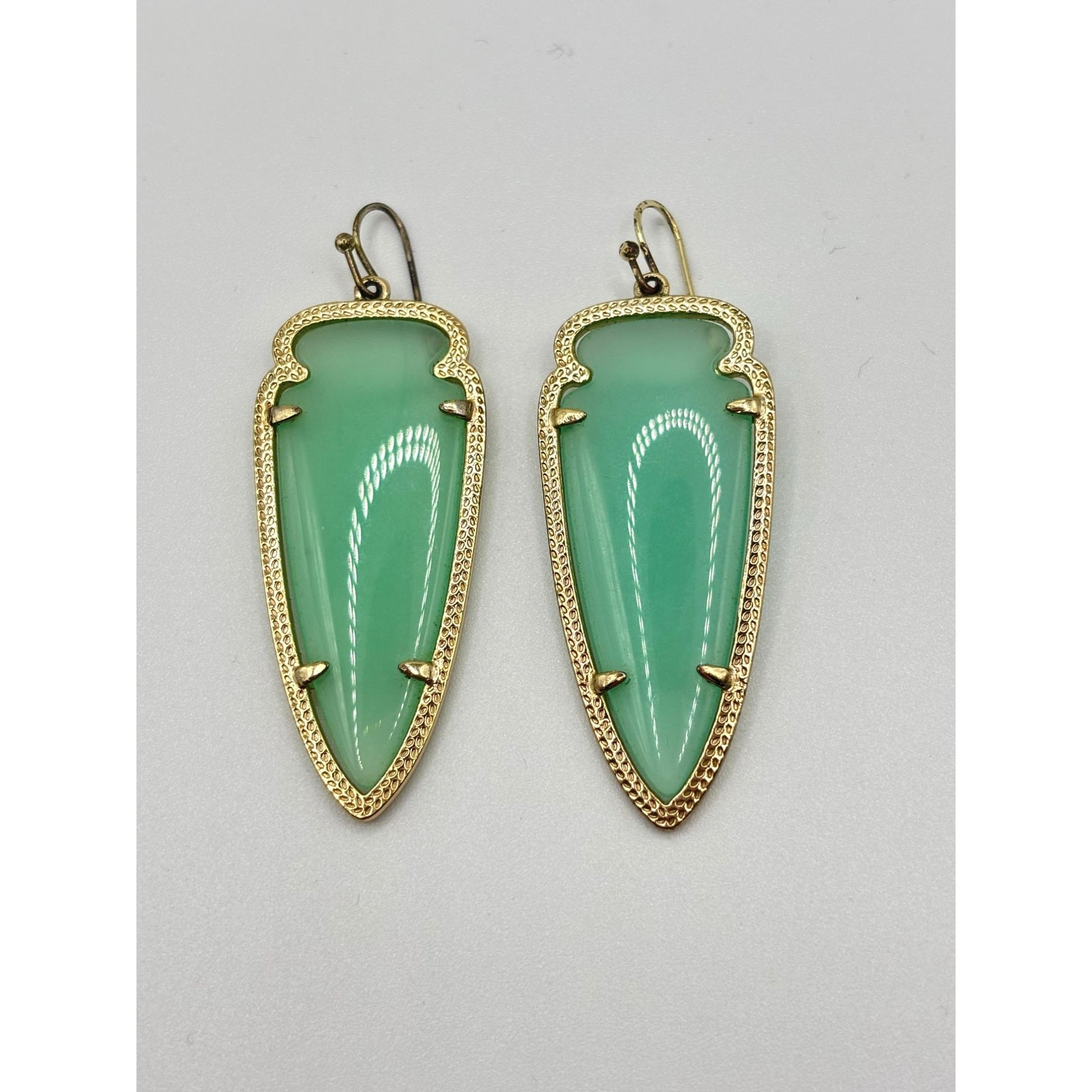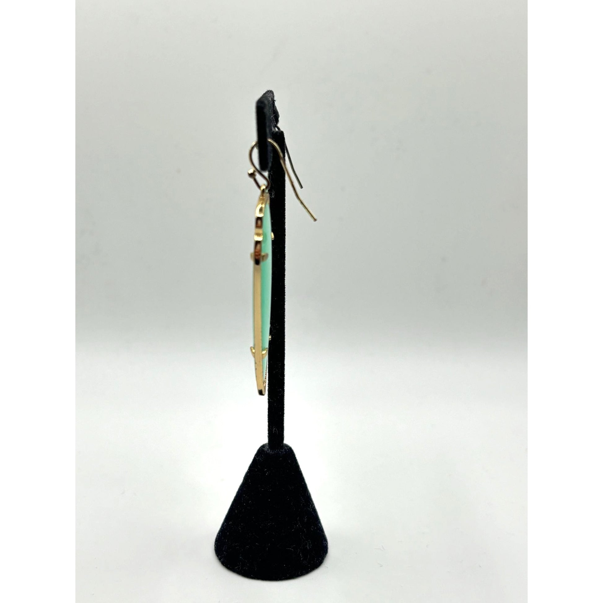 Elegant drop earrings featuring a gold-plated frame and green stone inset, offering a sophisticated addition to formal or business attire.
