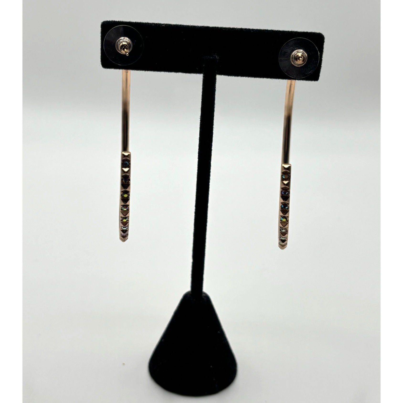Elegant statement hoops featuring precise geometric detailing and strategic stone placement, designed to elevate professional and evening ensembles with understated sophistication. Versatile accessory that transitions seamlessly between workplace and social settings.