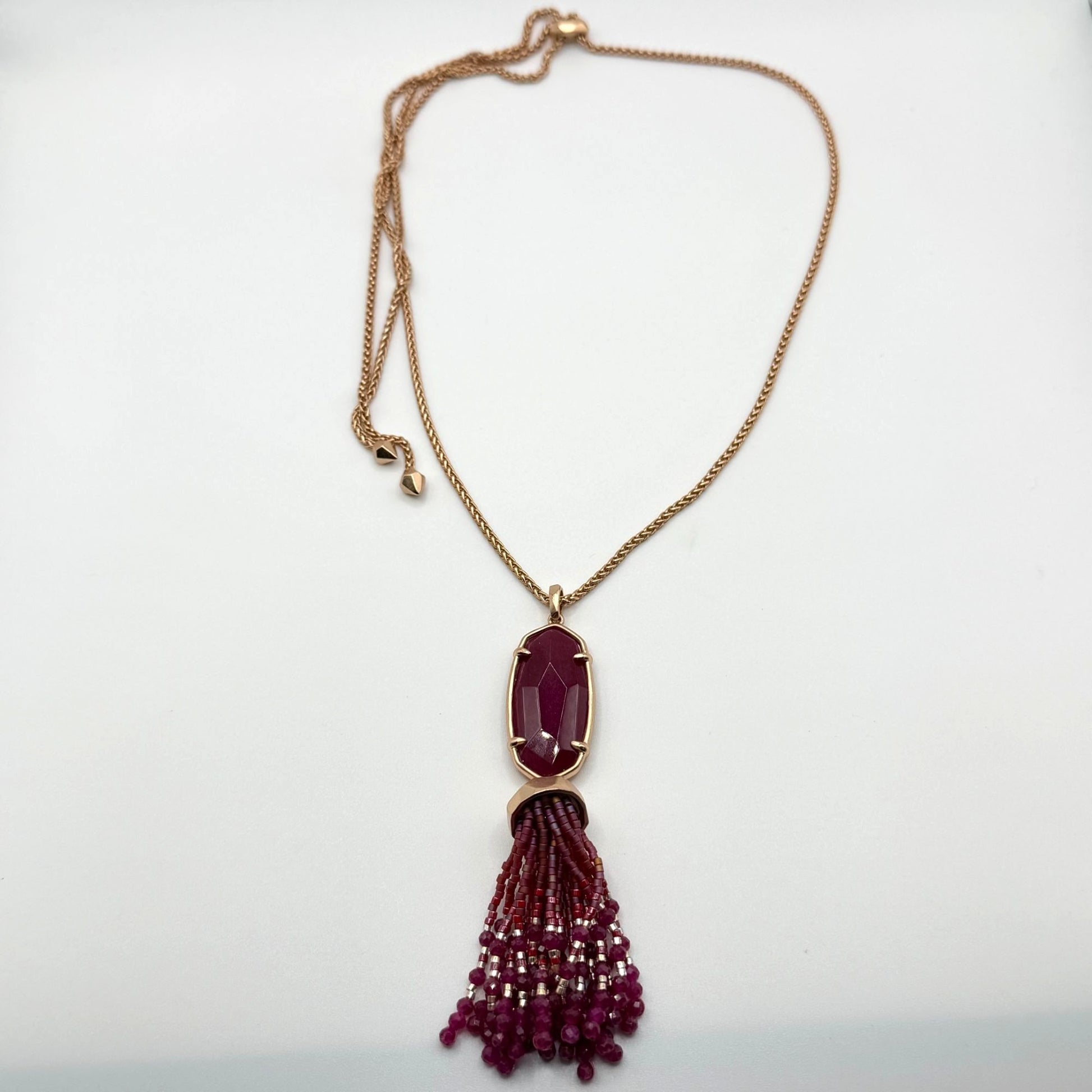 Kendra Scott Gold Tone Tassel Necklace Burgundy Beaded Pendant