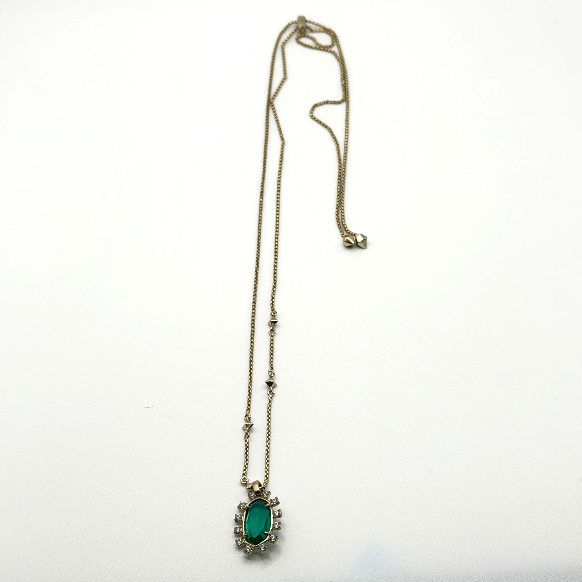Kendra Scott Green Pendant Gold Adjustable Necklace Oval Shape