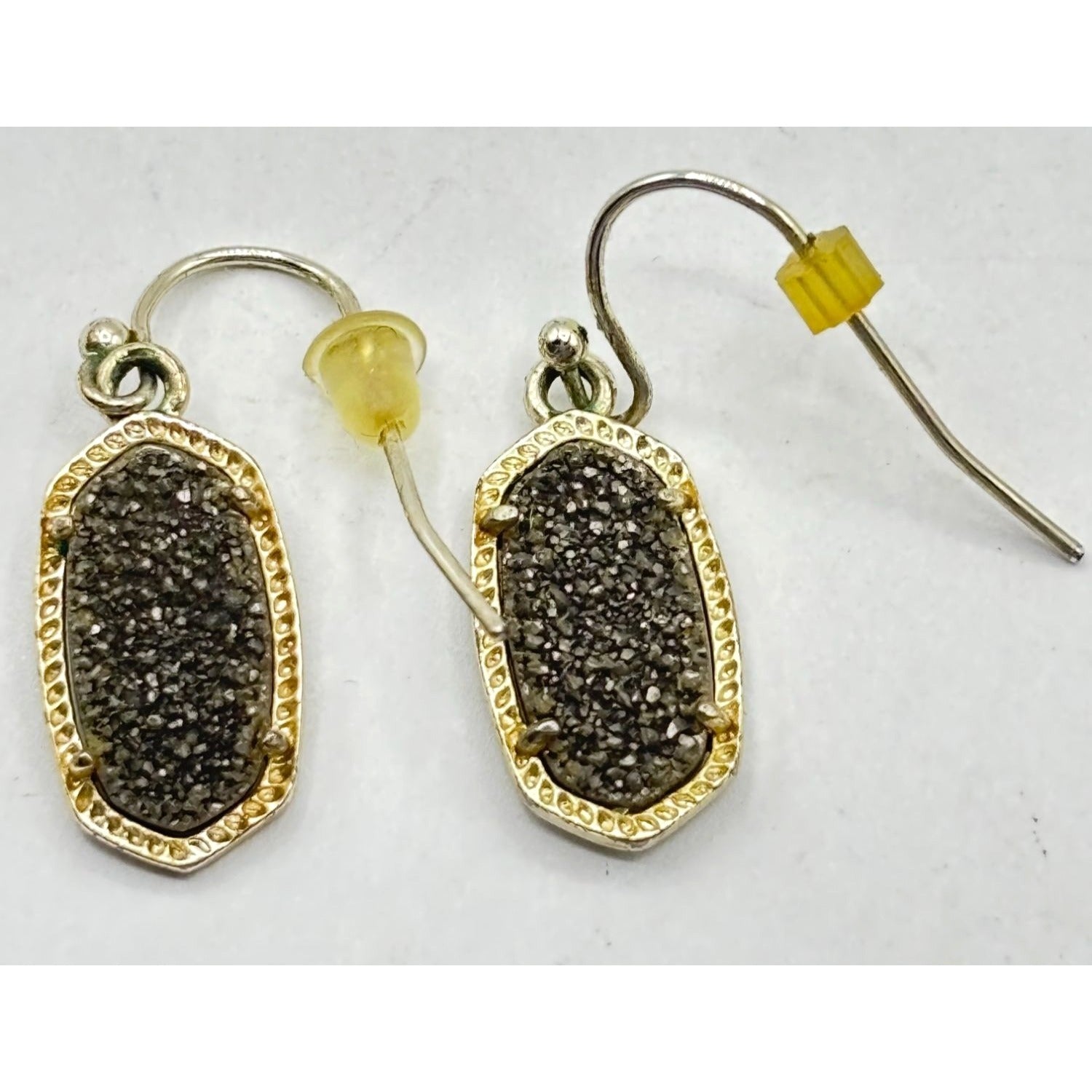 These Kendra Scott earrings showcase a refined elegance with their oval drusy stone design encased in a gold-tone border. Ideal for adding a touch of sophistication to professional attire, their understated beauty effortlessly complements a wide array of styles.