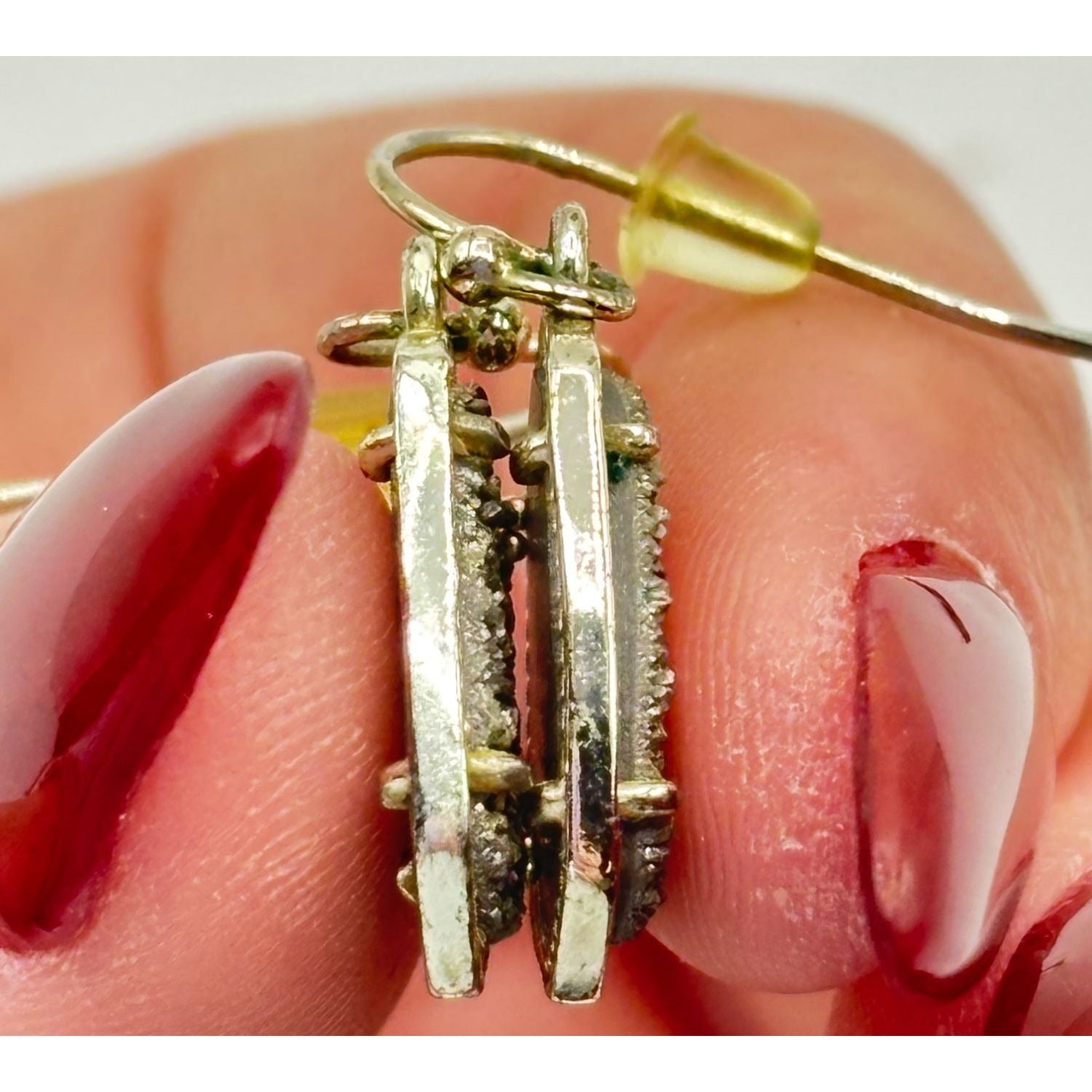 Earrings measure approximately 1 inch in length