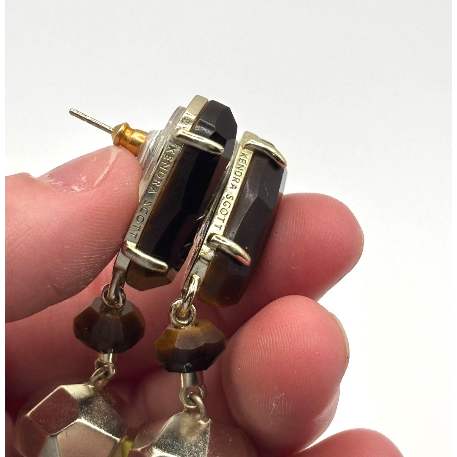 These sophisticated Kendra Scott earrings feature an elegant tiger's eye stone complemented by intricate beaded tassels. The blend of natural elements and refined craftsmanship offers a distinctive accessory for enhancing any ensemble. Ideal for those seeking a touch of elegance and uniqueness in their jewelry collection.