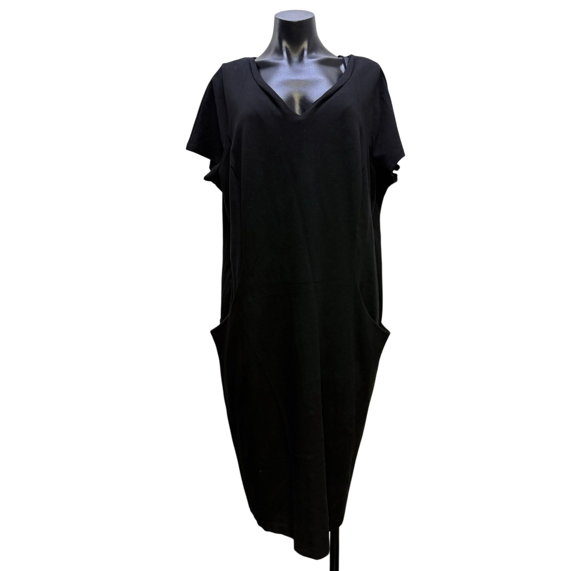 Lafayette 148 Black V-Neck Midi Dress With Pockets Size 20