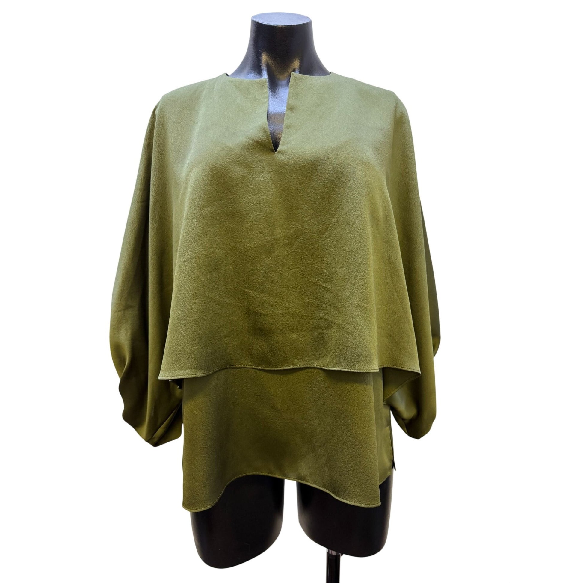 Lafayette 148 Layered Green Blouse With Keyhole Neckline M