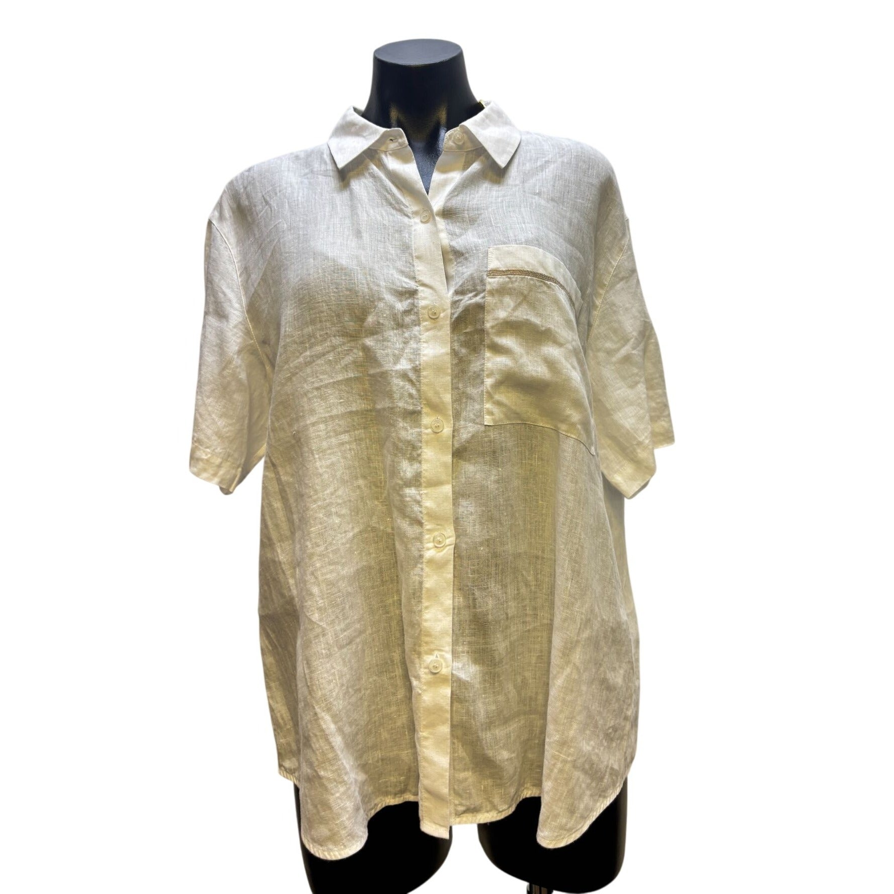 Lafayette 148 Linen Button Down Short Sleeve Shirt White XL
