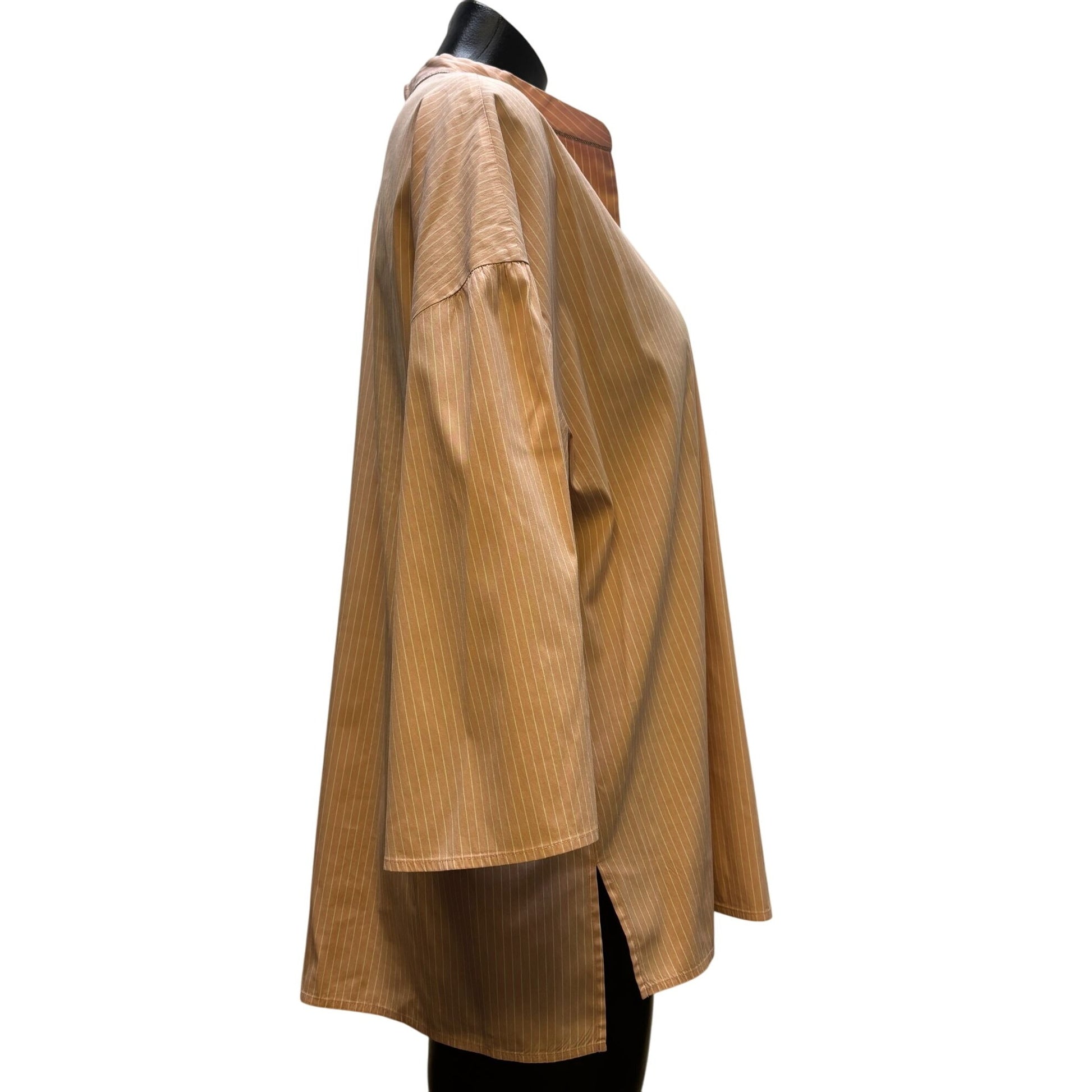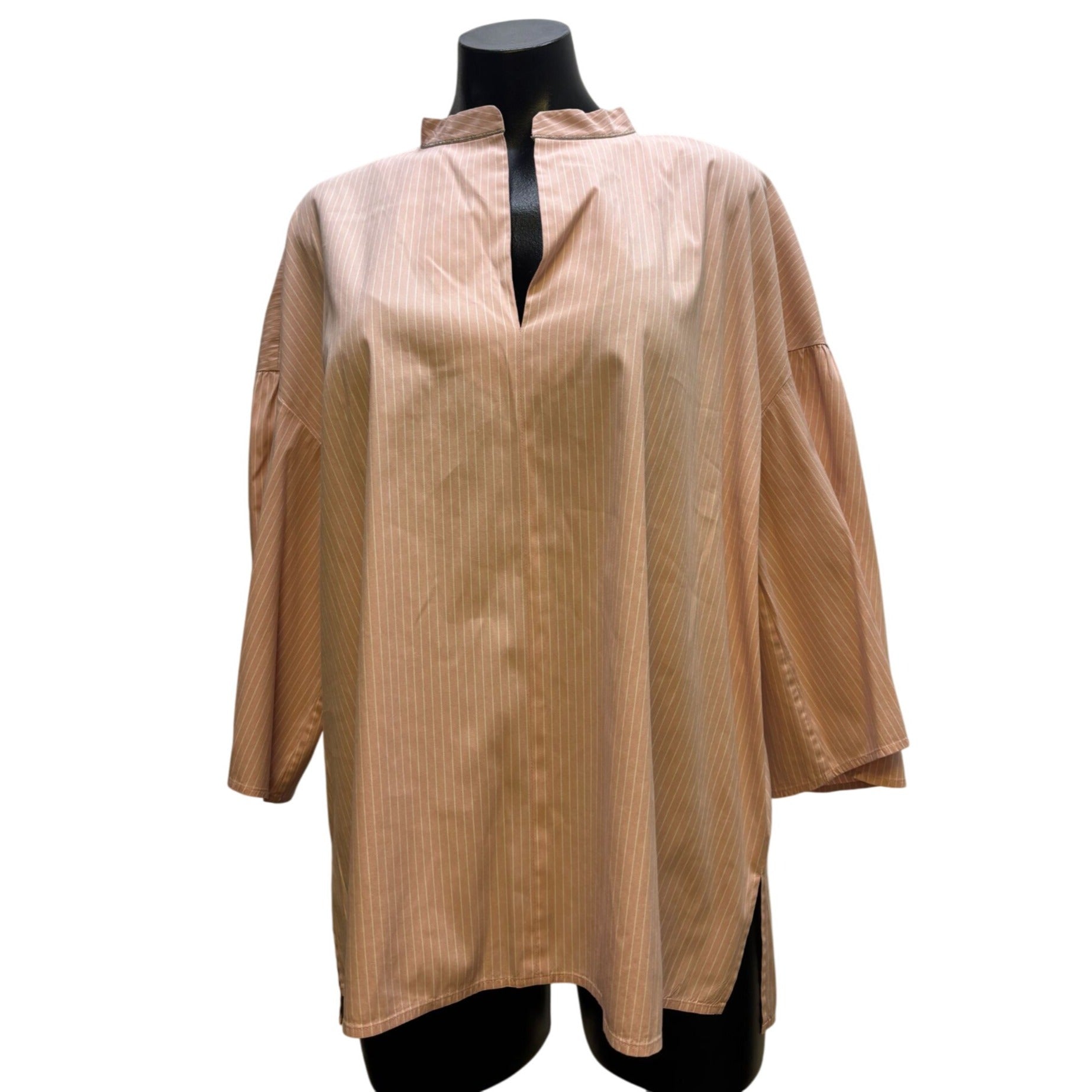 This Lafayette 148 blouse features a classic design with subtle pinstripes, ideal for a polished professional look. Its relaxed fit and soft fabric ensure comfort and style throughout the day. Suitable for office settings or as a refined casual choice, this versatile blouse is an essential wardrobe addition.