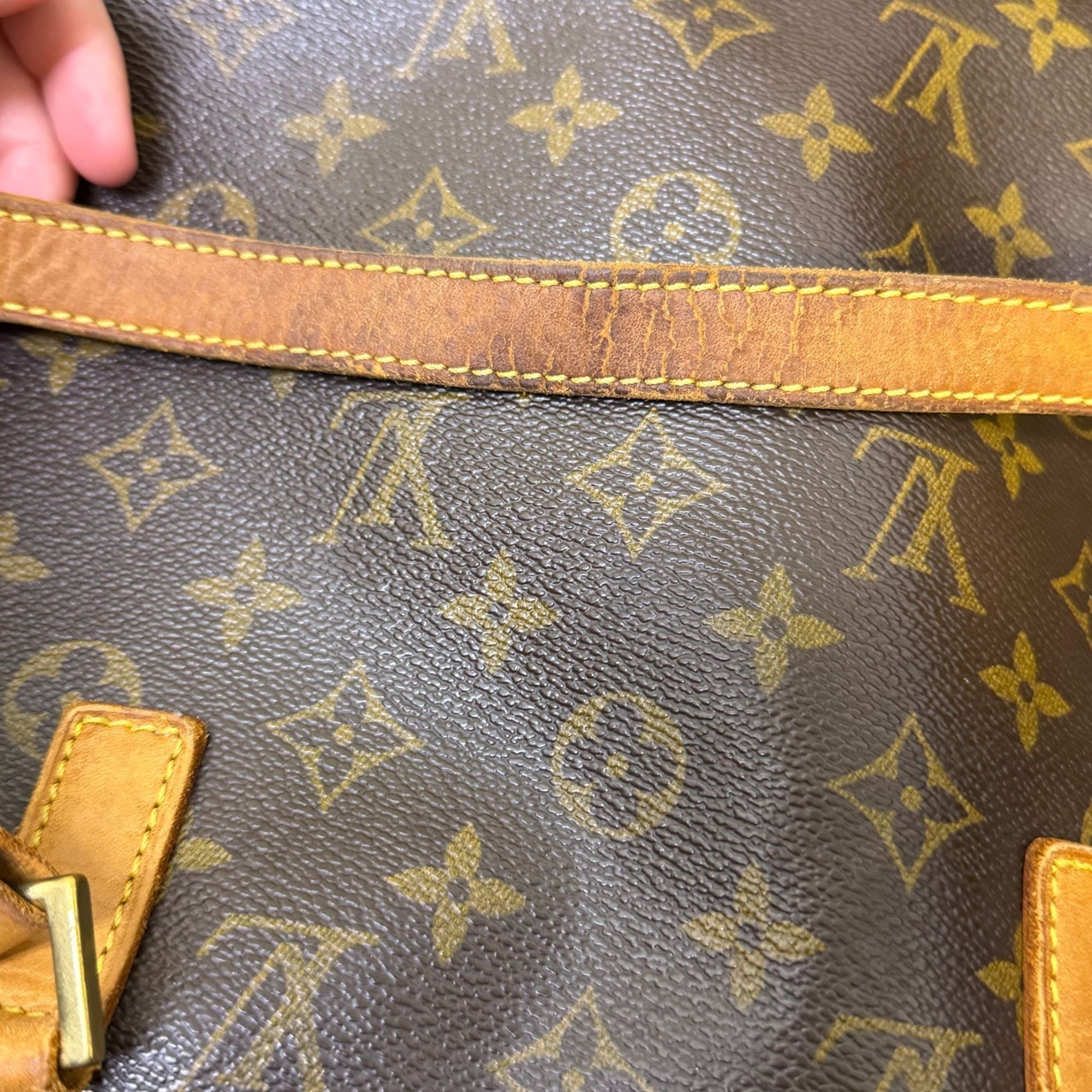 Louis Vuitton Monogram Vintage Tote Purse With Leather Straps Classic Brown & Tan