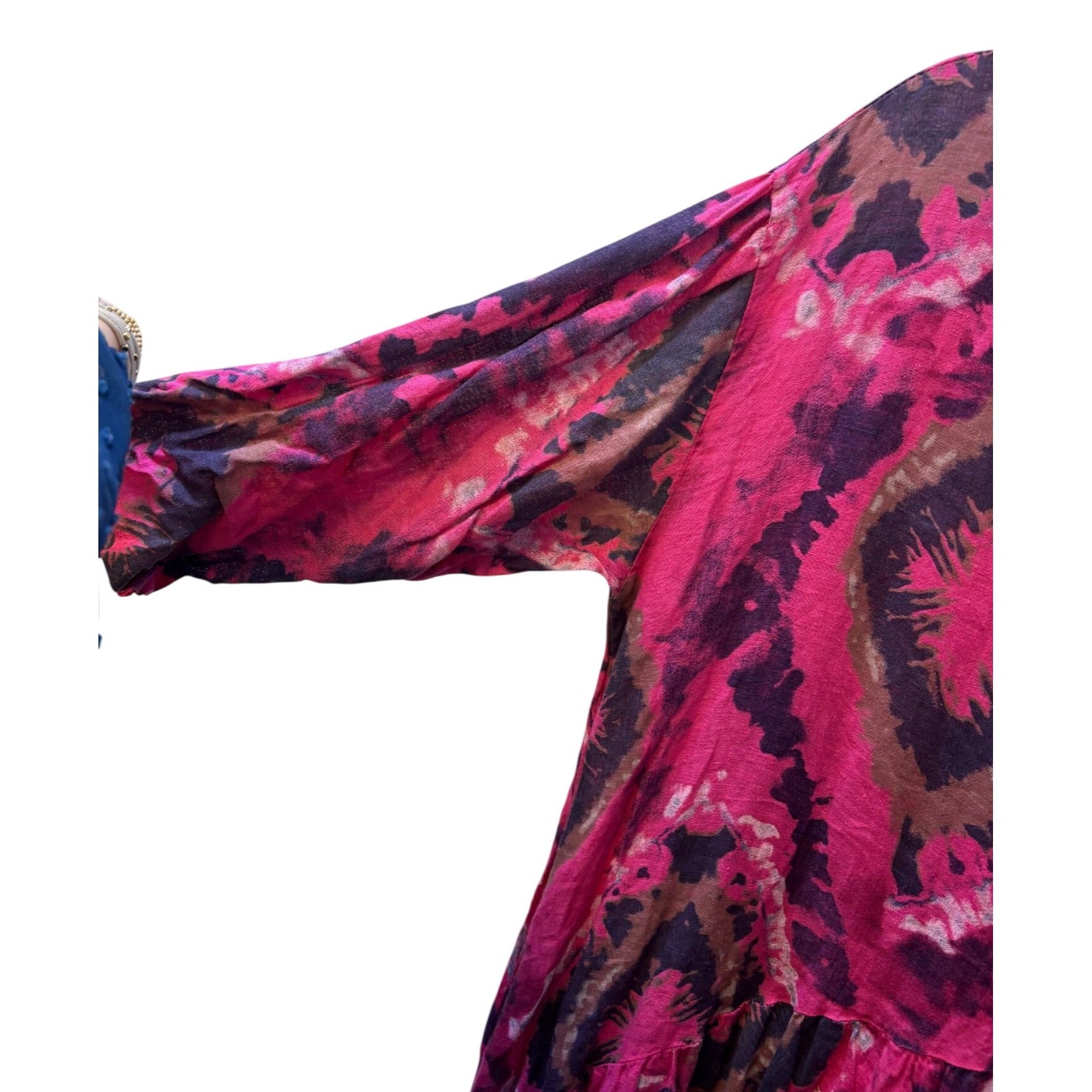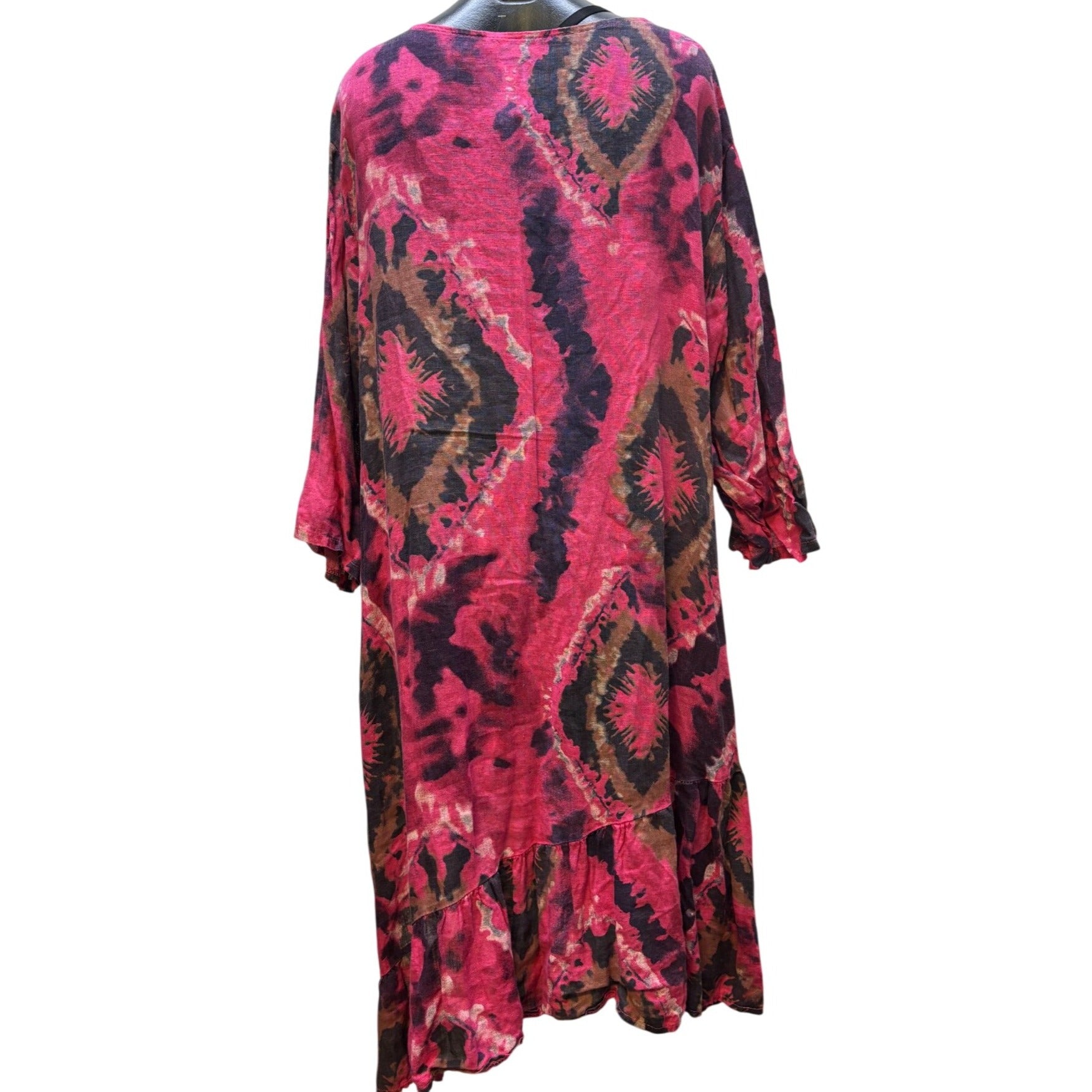Made In Italy Linen Bohemian Midi Dress Pink Purple Brown L