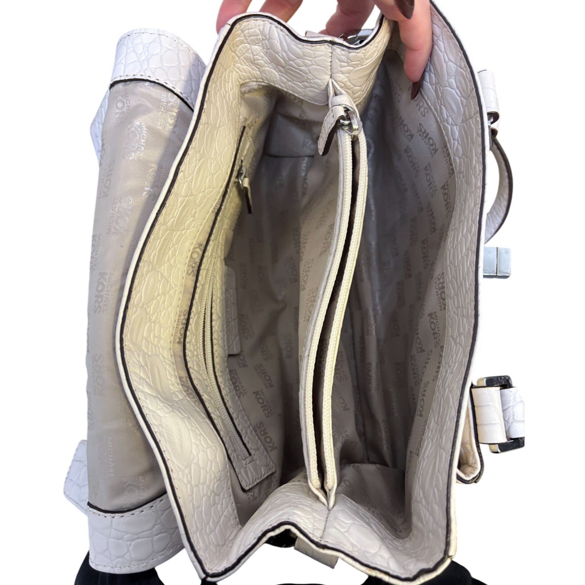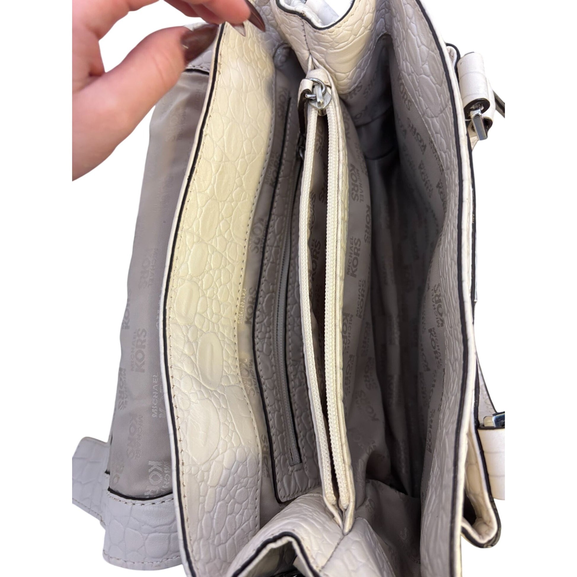 This sophisticated Michael Kors shoulder bag features a luxurious crocodile-embossed leather design in a stylish bone color. Ideal for those who appreciate premium craftsmanship, it offers both fashion and functionality. The adjustable shoulder strap ensures versatile wear, making it a practical choice for daily use or professional settings.
