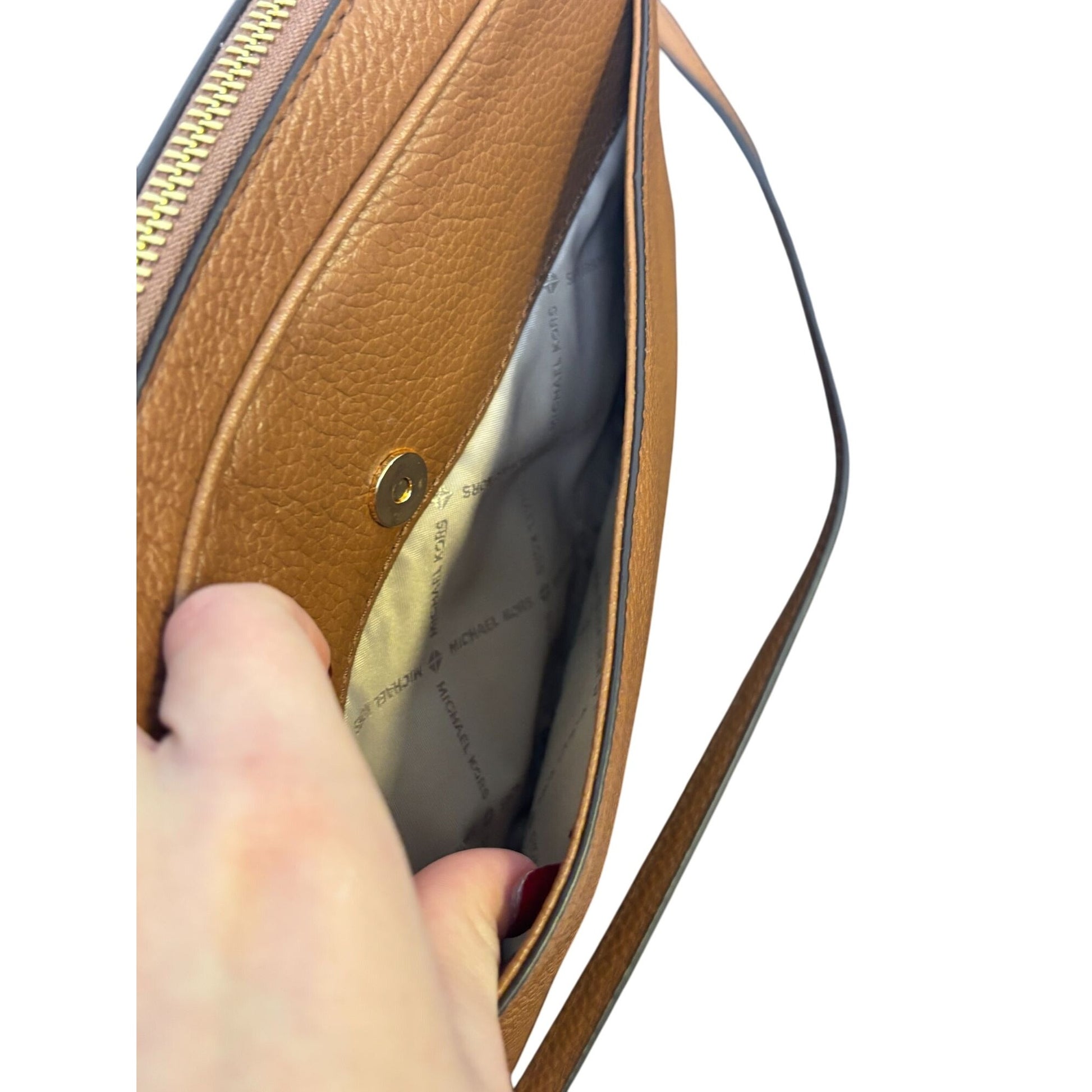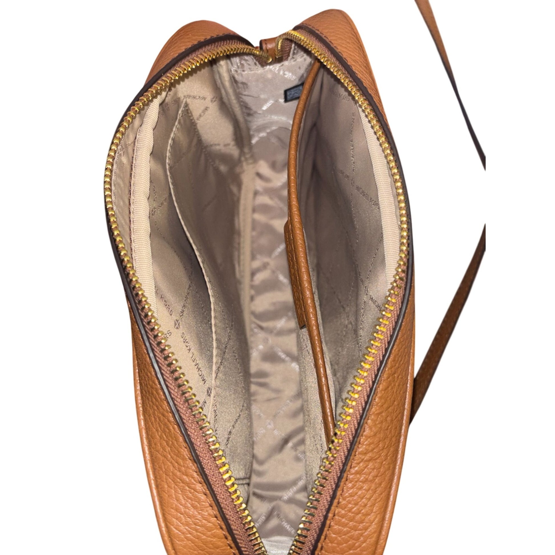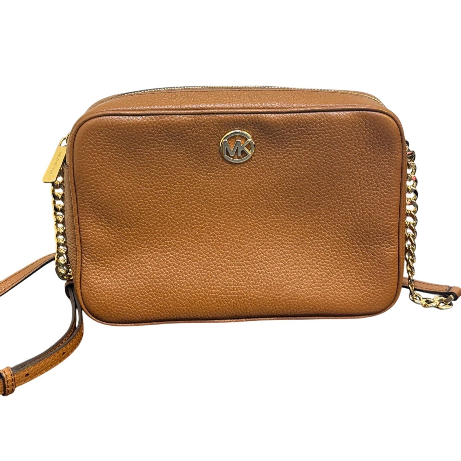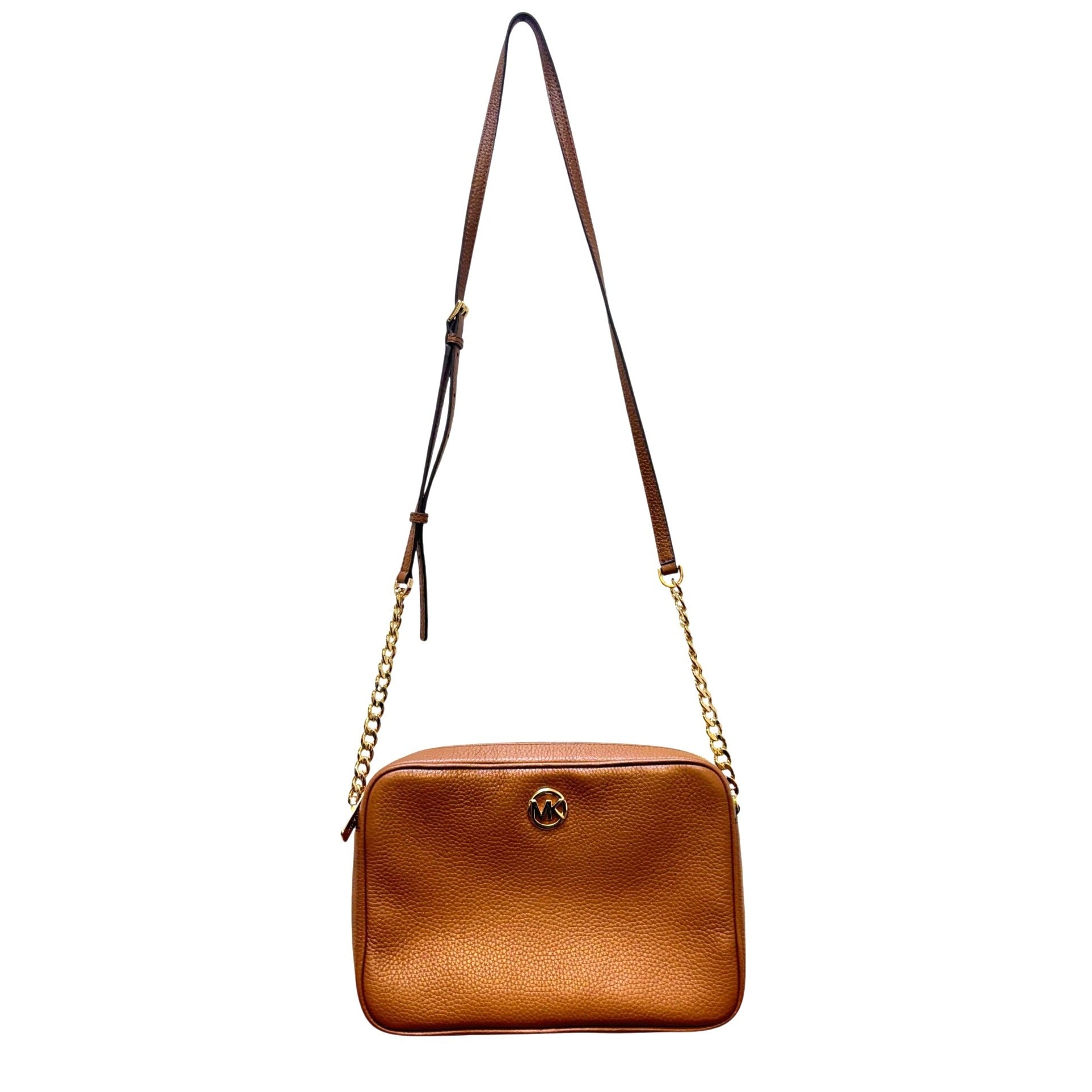 Michael Kors Brown Pebbled Leather Crossbody Bag With Gold Chain Straps